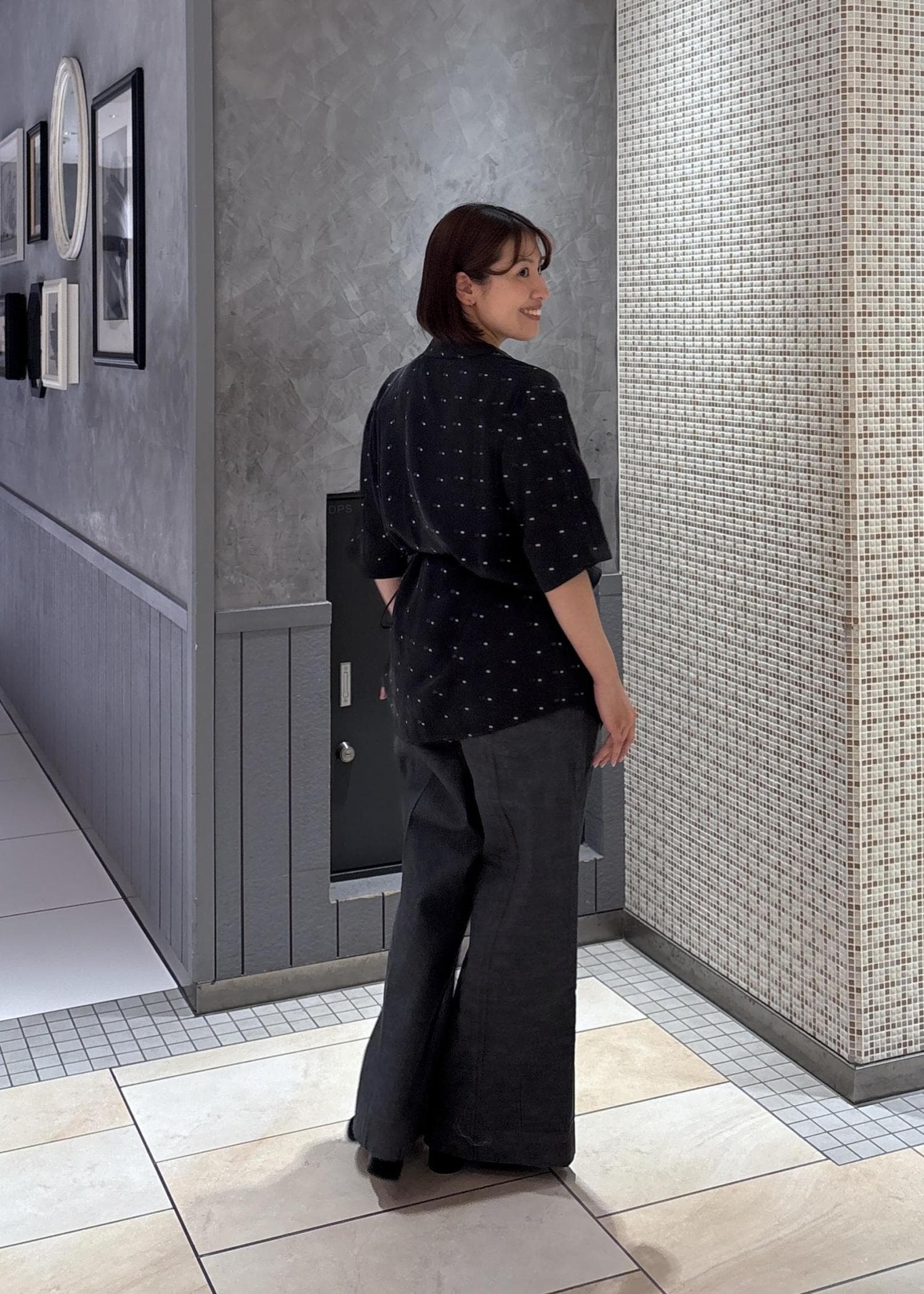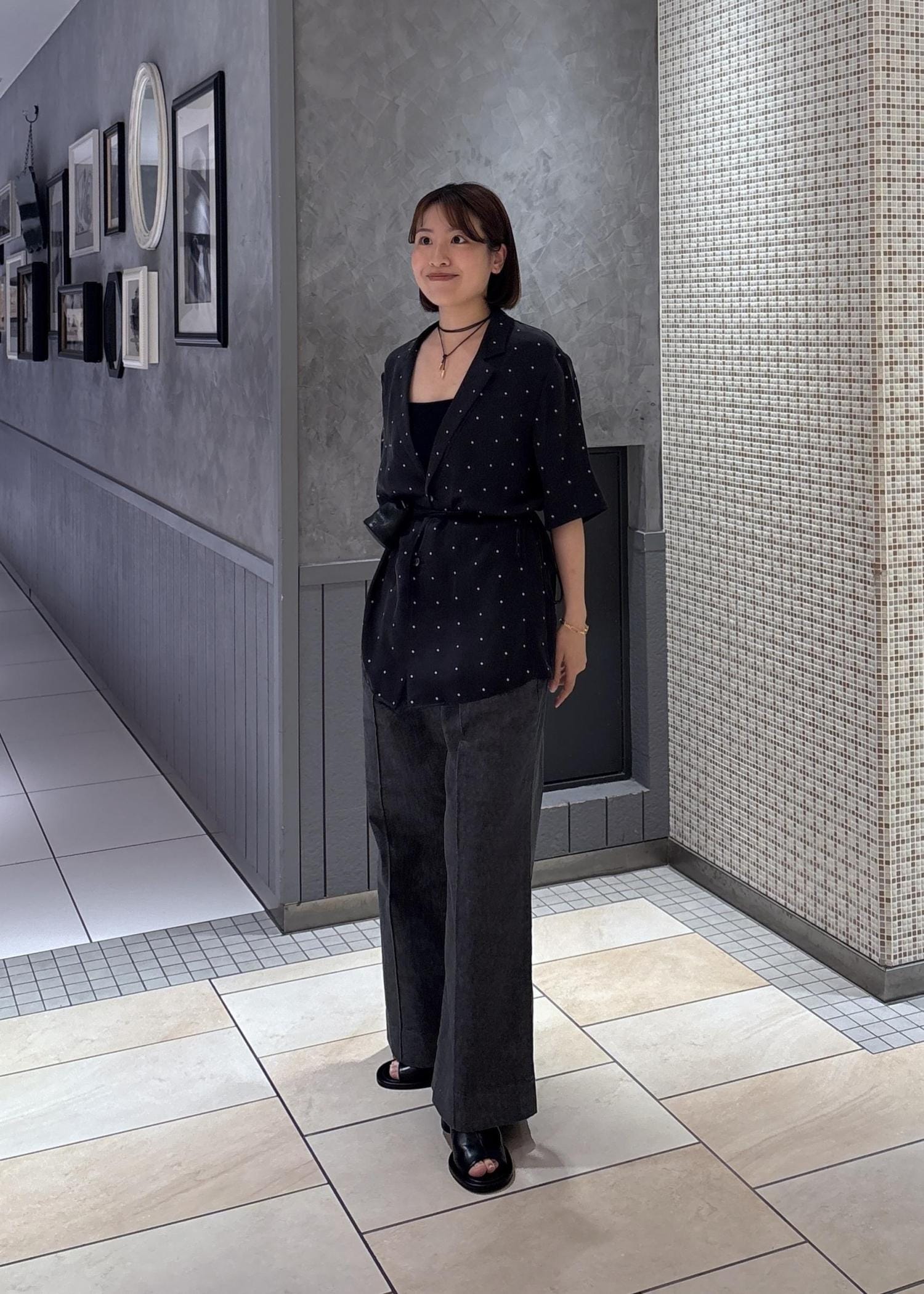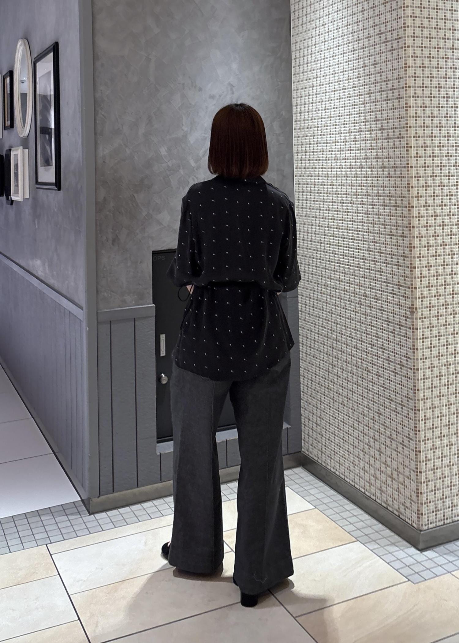 NEW!EMOELLE【EMOELLE】テーラーカラーシャツブラック系 / F¥26,950レビューとろみのある素材でとっても着心地が良く、体にそってシルエットを綺麗に見せてくれます!ドットが小ぶりなので、様々なスタイリングが楽しめておすすめです♡
