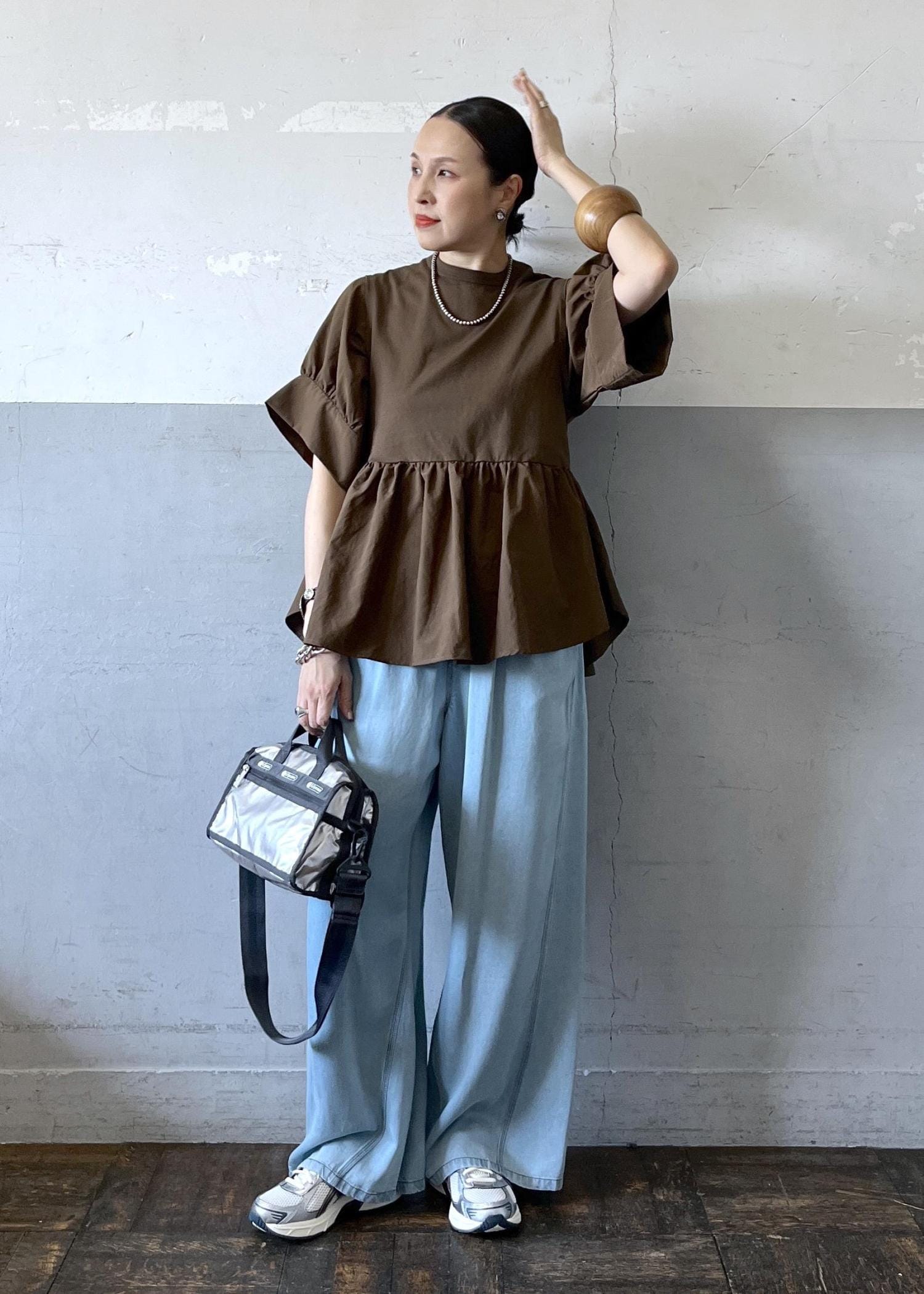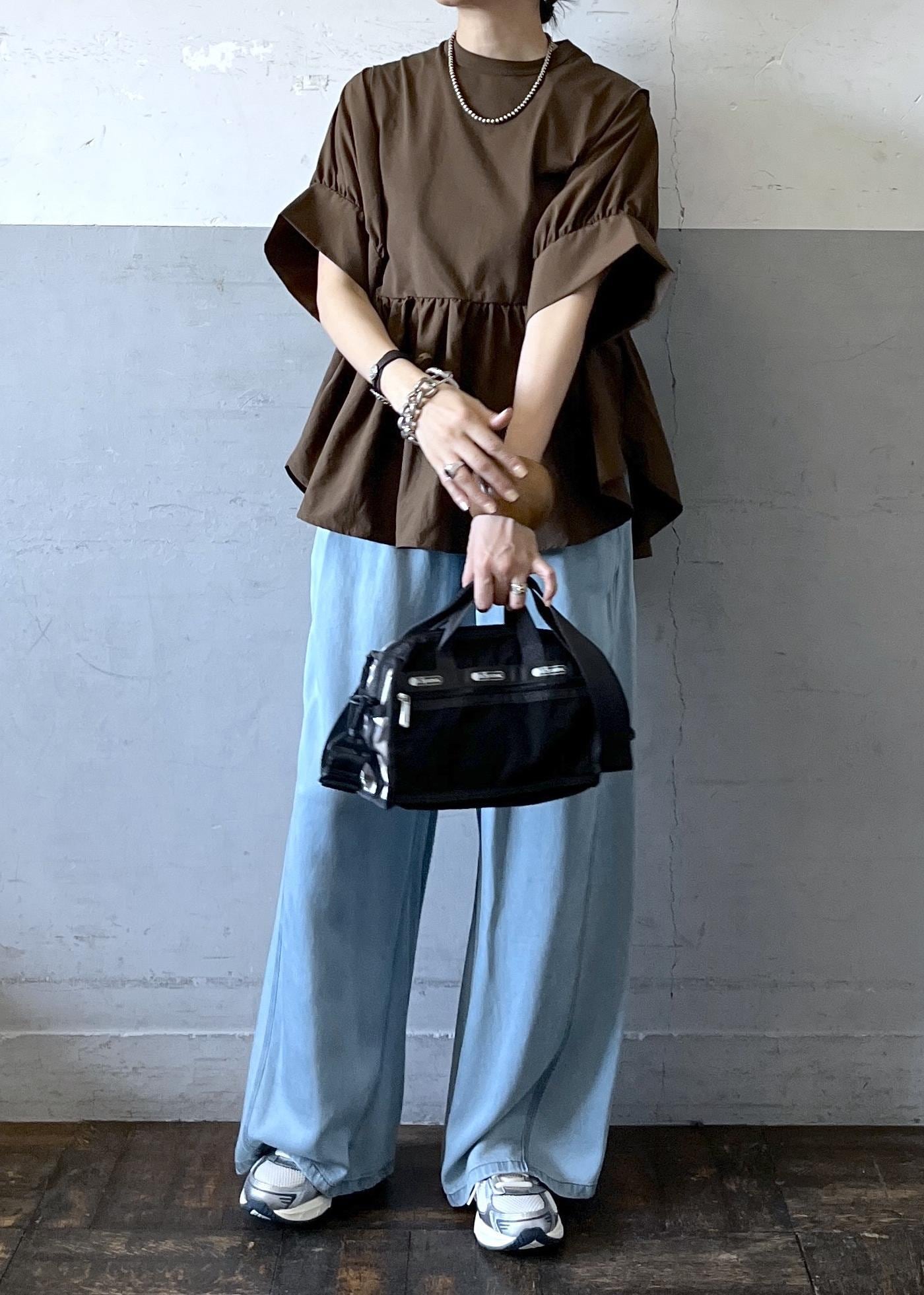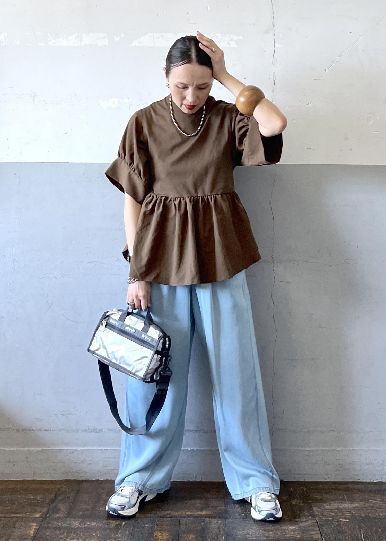 ワイドデニムでラフに仕上げたカジュアルスタイリング。