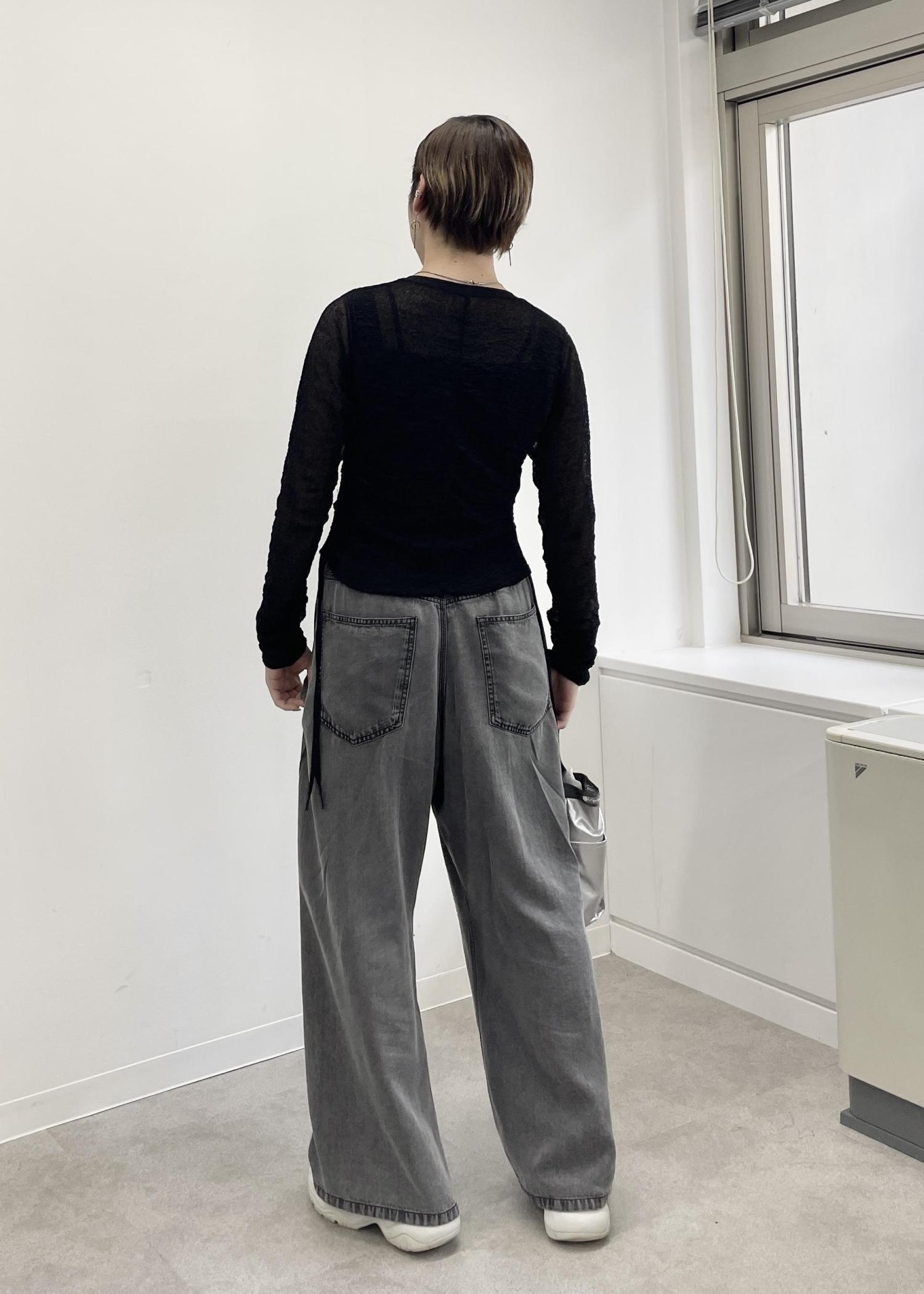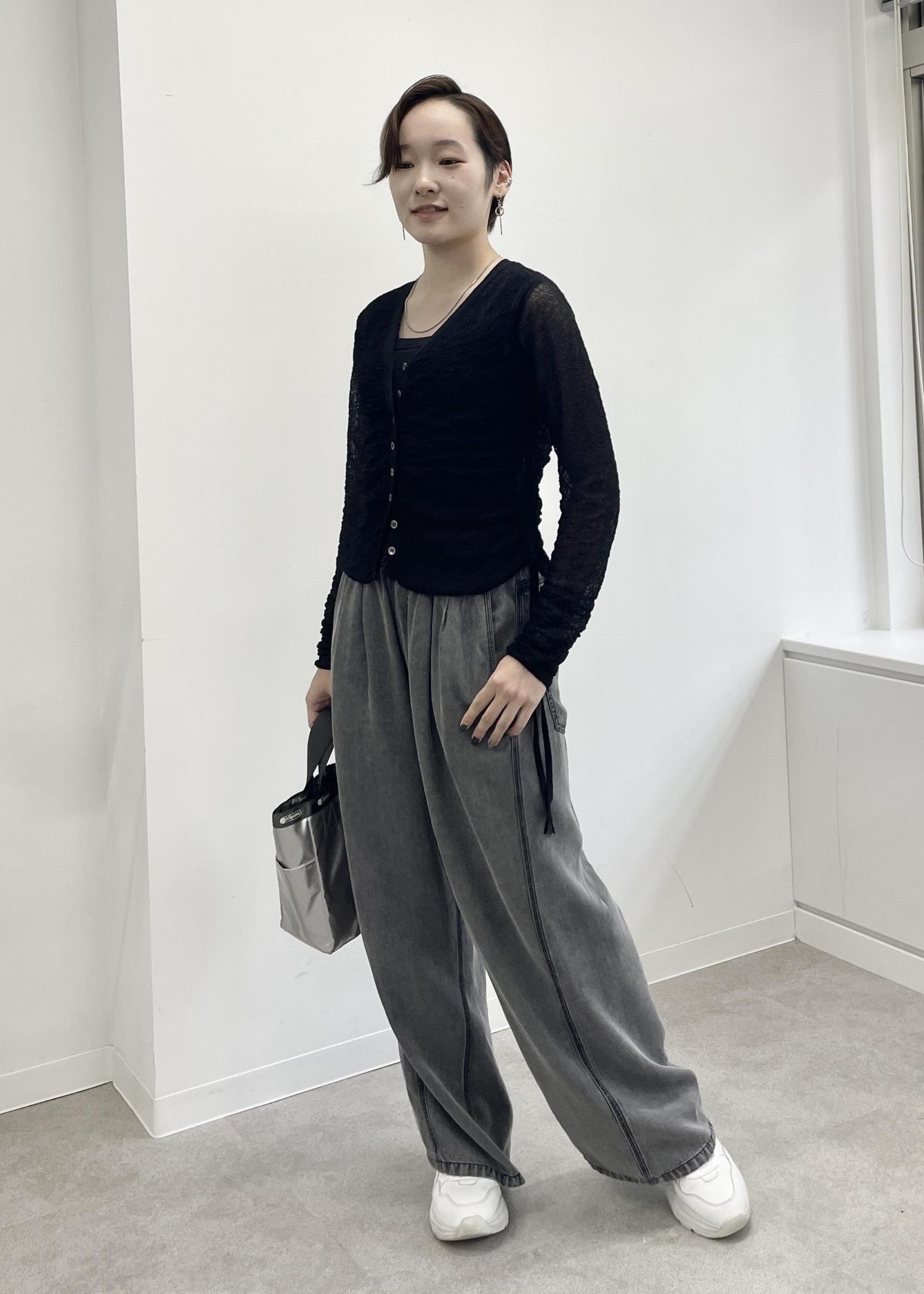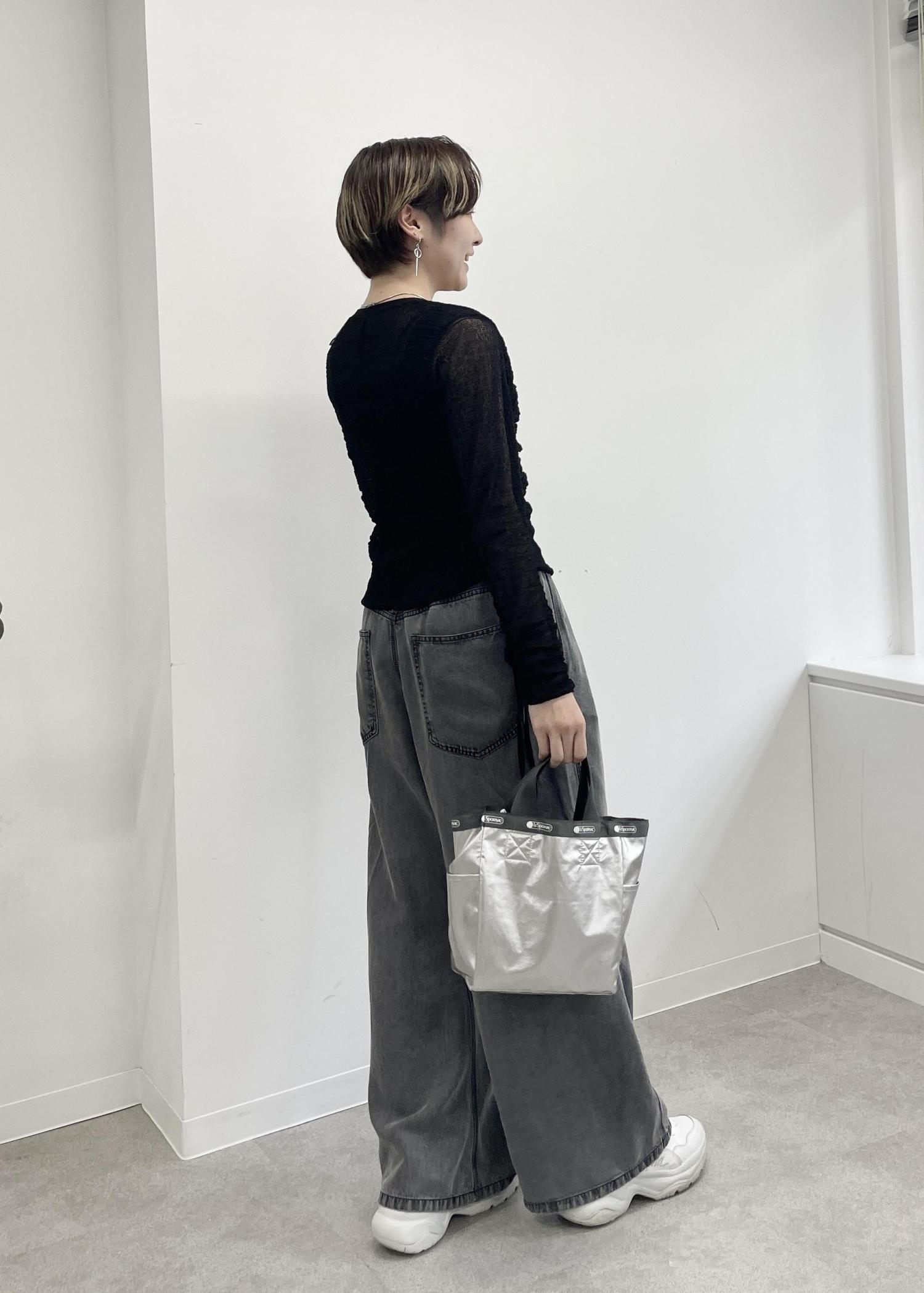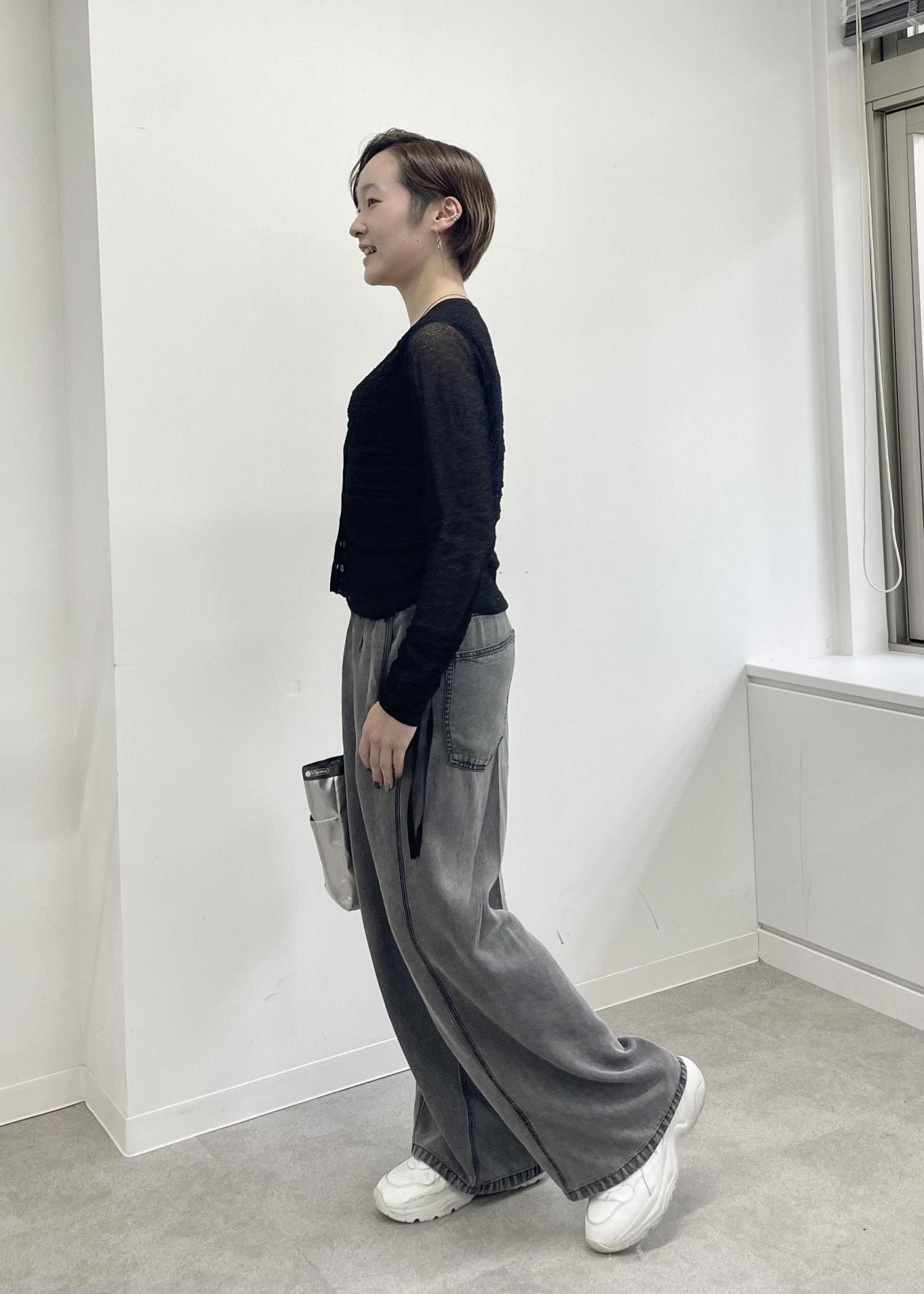 ブラックのデニムを合わせることで全体的にモードカジュアルな雰囲気に致しました!