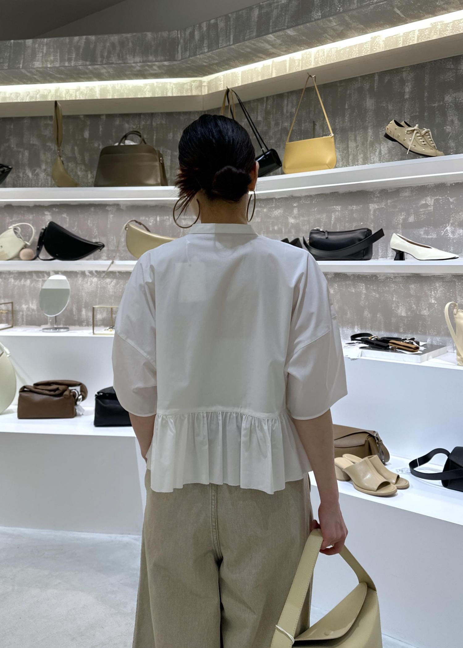 予約ADAM ET ROPÉ FEMME【サステナブル】・【定番】フリルブラウスホワイト / F¥15,950レビュー丈間短めなのでバランスよく合わせて頂けます。
