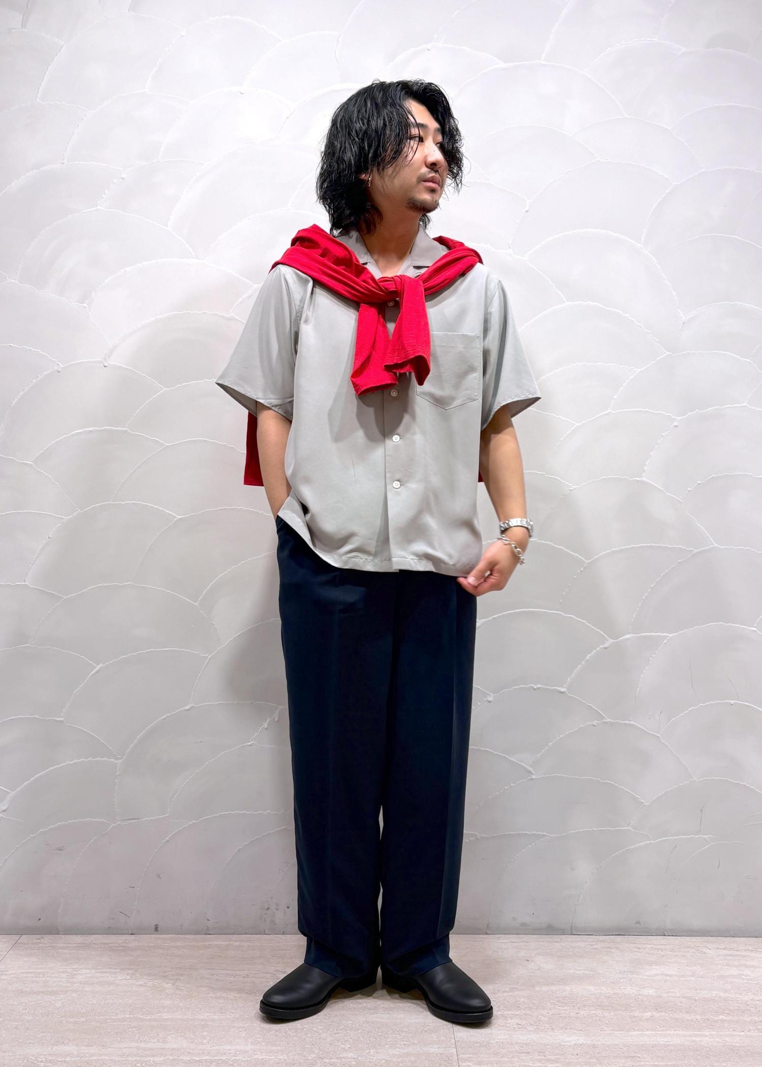 ADAM ET ROPÉ HOMMEスエードタッチレーヨン オープンカラー ハーフスリーブ シャツライトグレー / M¥13,200レビュー肌離れの良い柔らかい生地です。