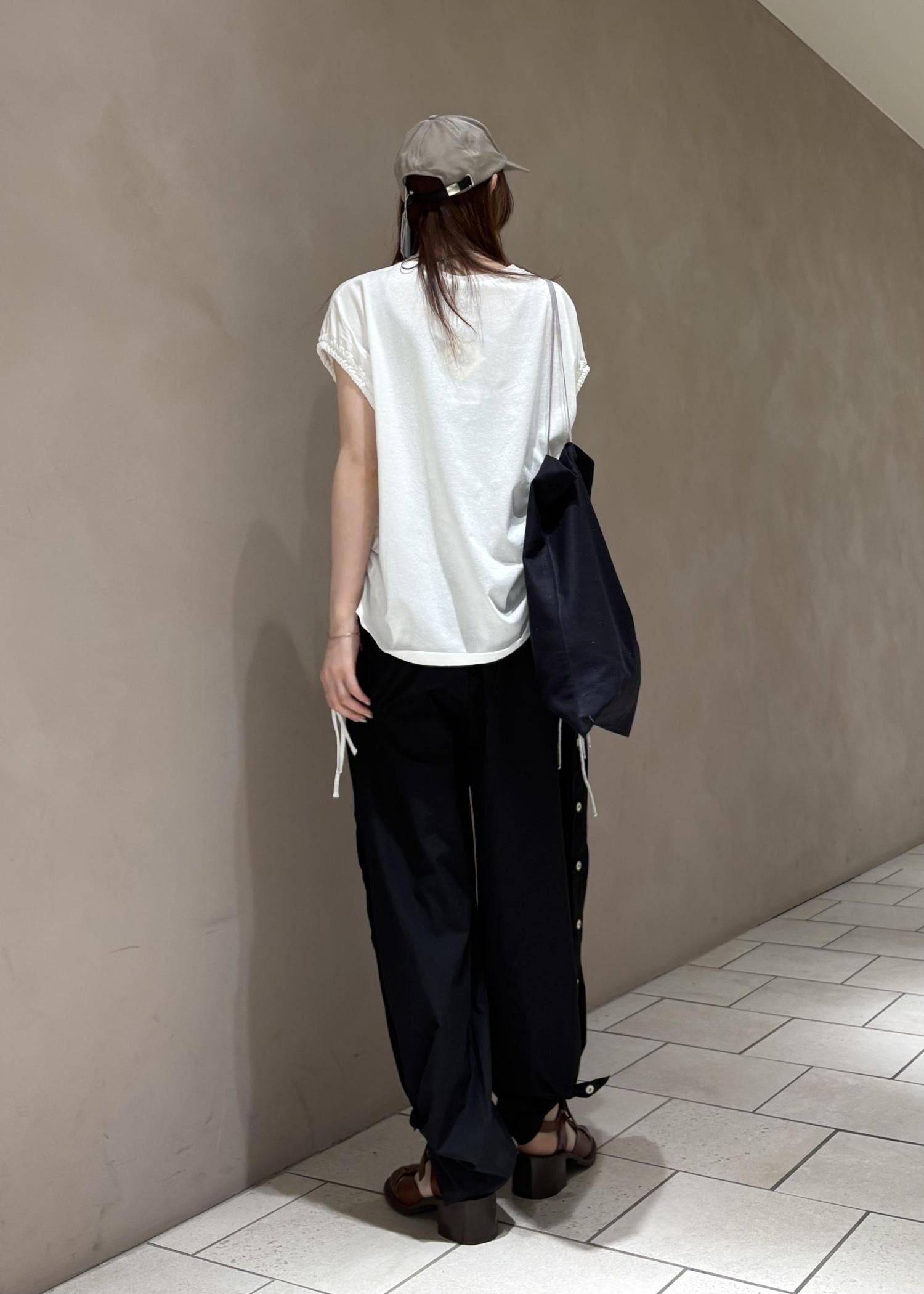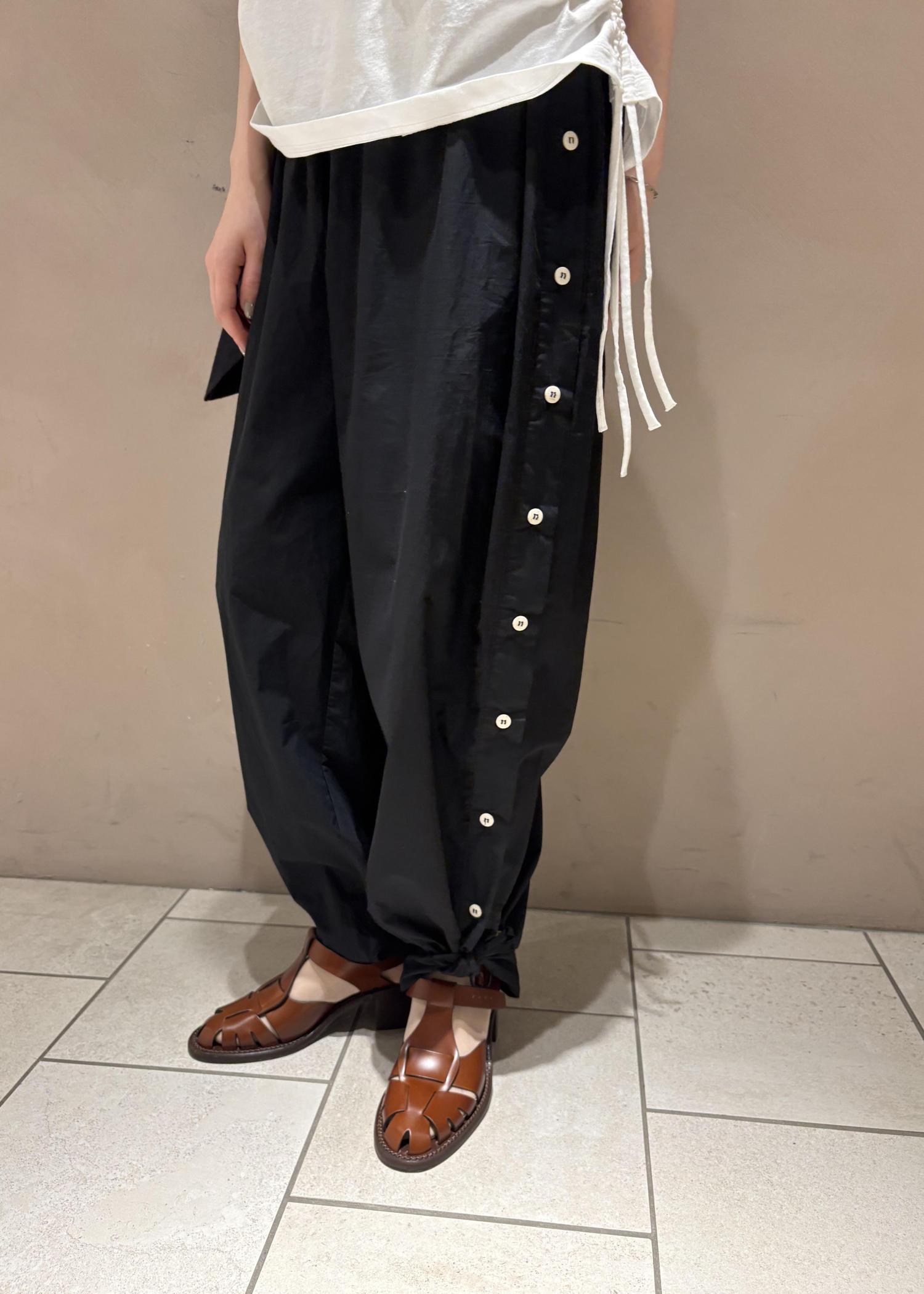 シンプルですがトップスのギャザーやパンツのボタンのデザインがアクセントになっていて可愛い!!