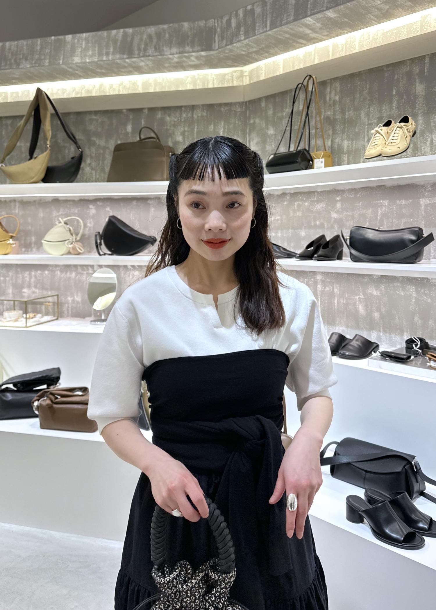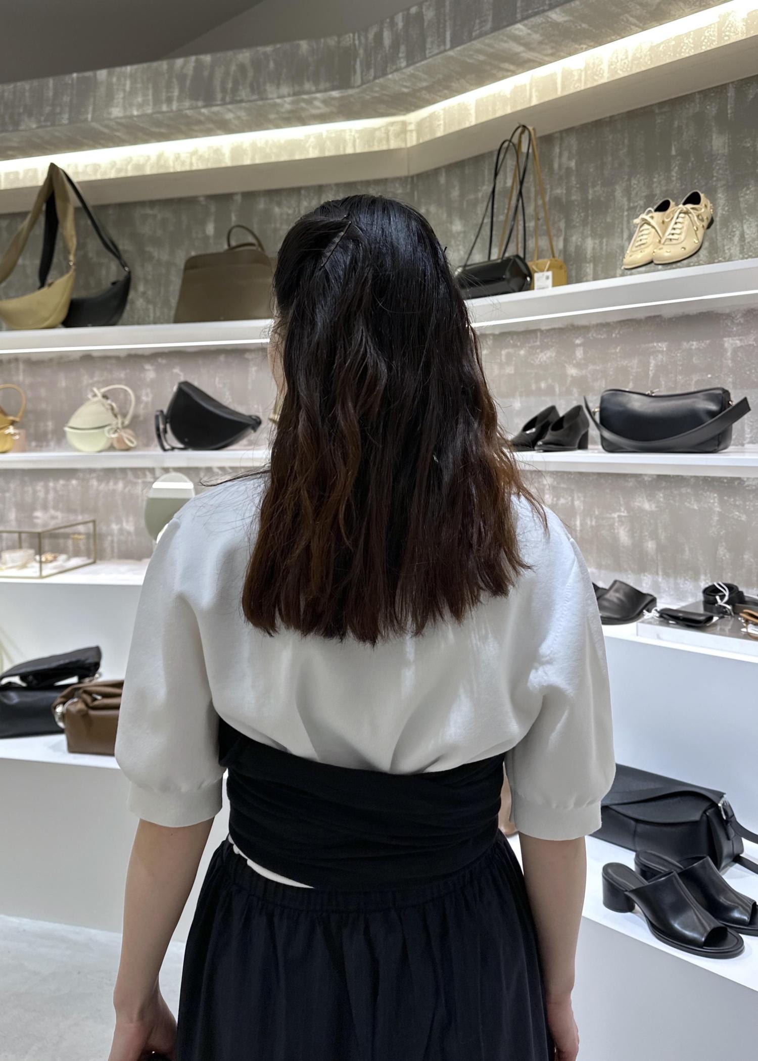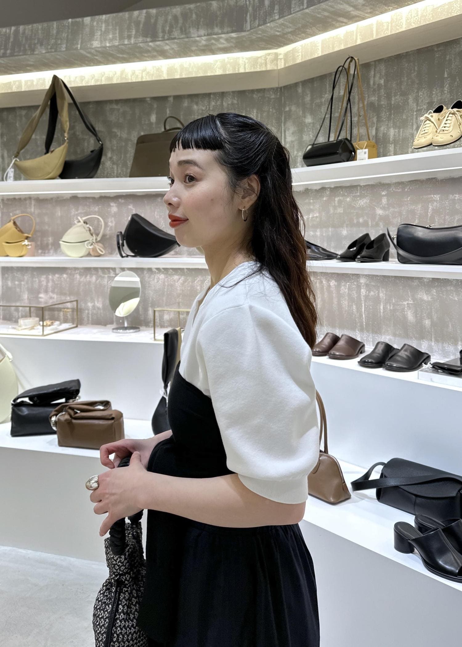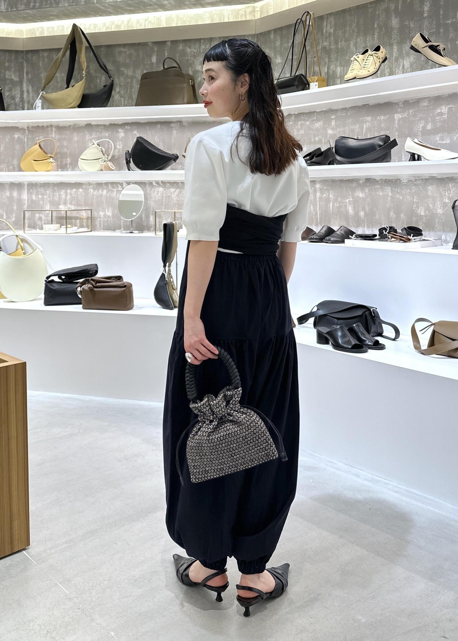 ADAM ET ROPÉ FEMMEブレイドハンドル巾着バッグホワイト / F¥9,900レビュー折りたたみ財布、スマートフォン、コスメ、手鏡は入れて頂ける大きさです。