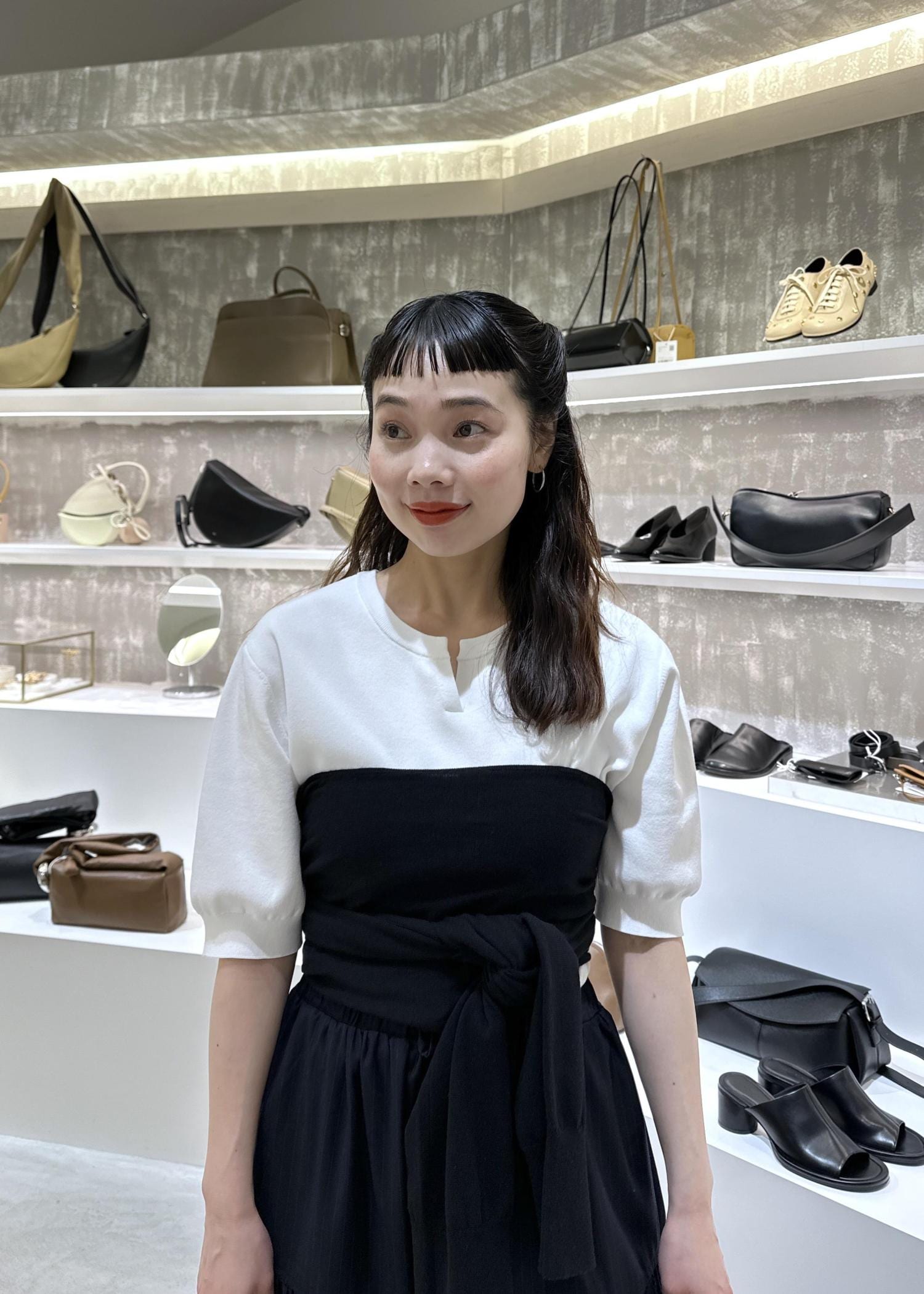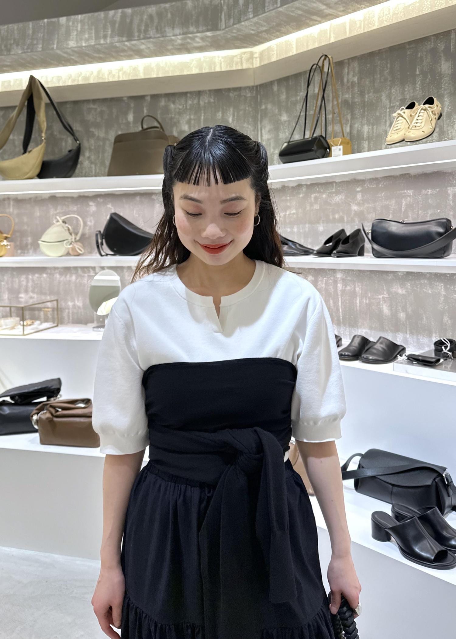 ADAM ET ROPÉ FEMME2WAYキーネックハーフスリーブニット/接触冷感ホワイト /¥14,300レビューチクチクせず、着心地抜群です。