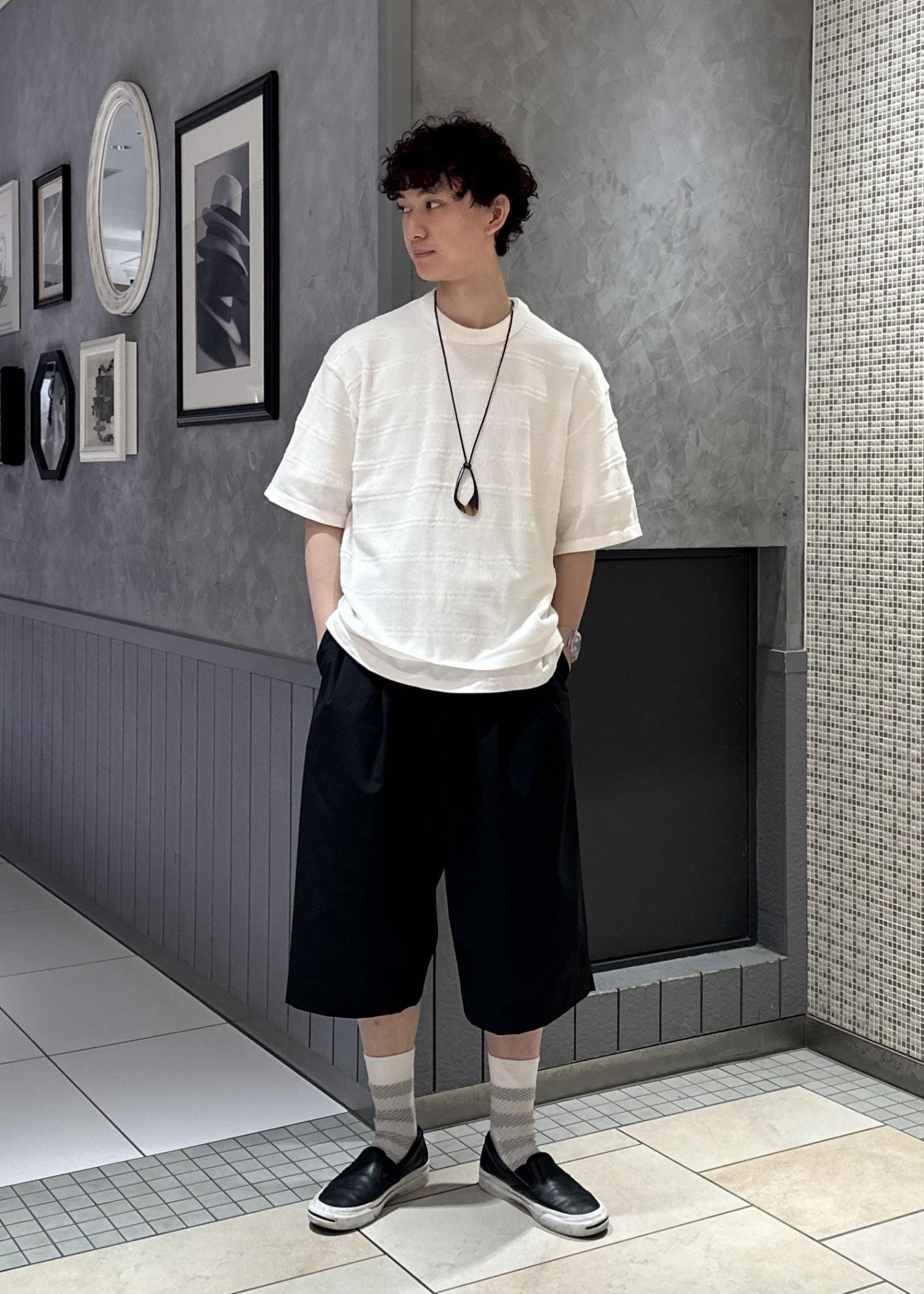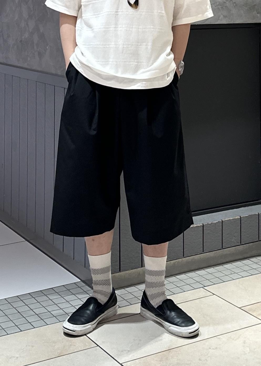 丈長めのショーツ。少年感が出ず大人っぽい雰囲気。薄い生地で涼しいです。薄いけど、トロトロとはしていなく、立体感のあるシルエットです。夏はもちろん、春と秋にも長袖やスウェット、ジャケットなどと合わせてお召しいただけます。 -