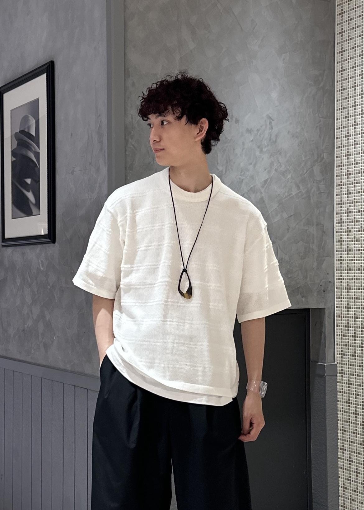 透け感のあるTシャツ。透けすぎず程よく大人っぽい。通気性があり涼しく、インナーから1枚でも存在感を発揮してくれます。 -