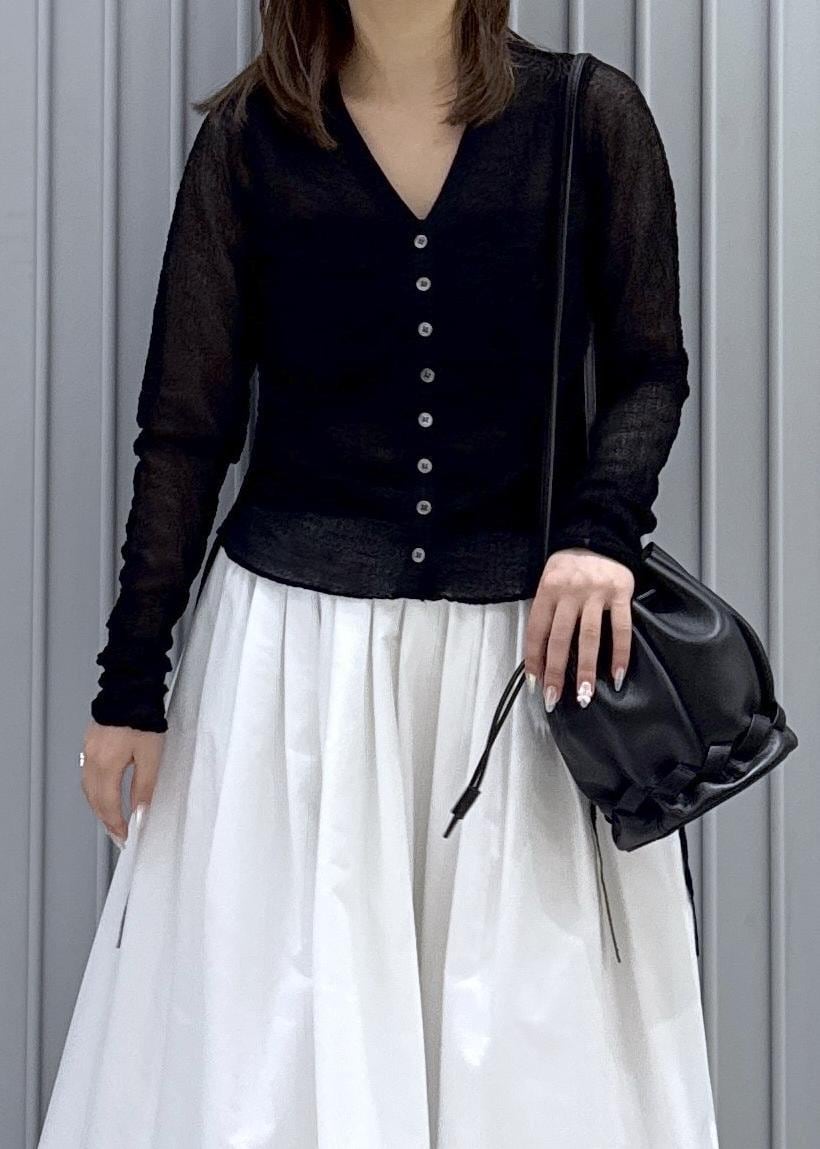 ADAM ET ROPÉ FEMMEクレープリンクスギャザーシアーカーディガンブラック / F¥17,600レビュー程よい透け感がサラッと着ていただけます。