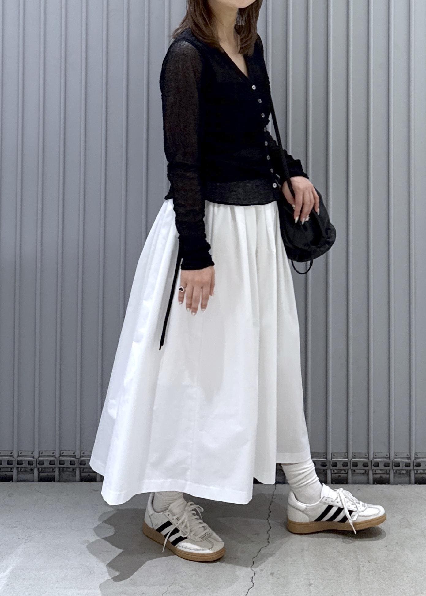 ギャザーが一癖ありスタイリングのポイントに -