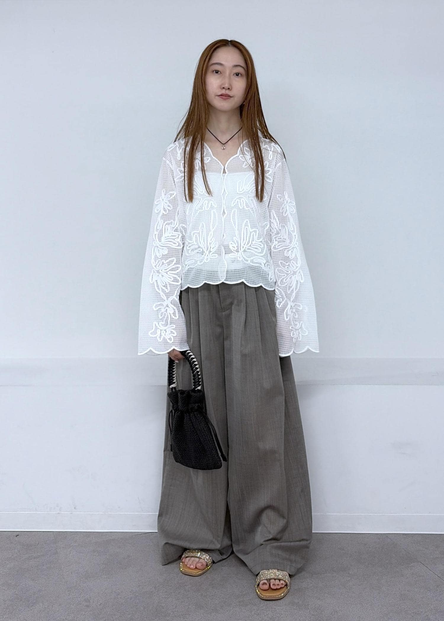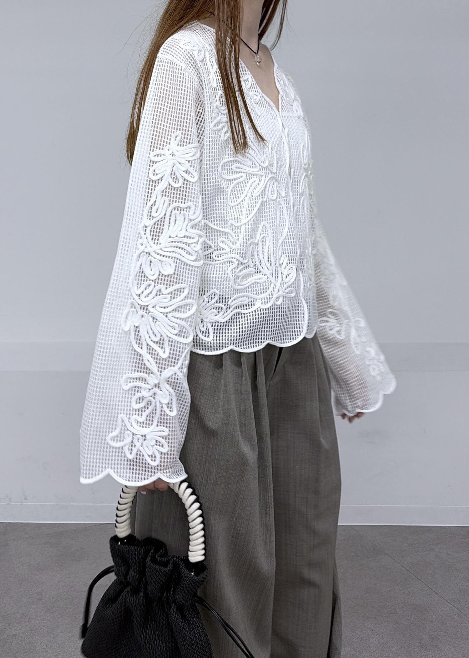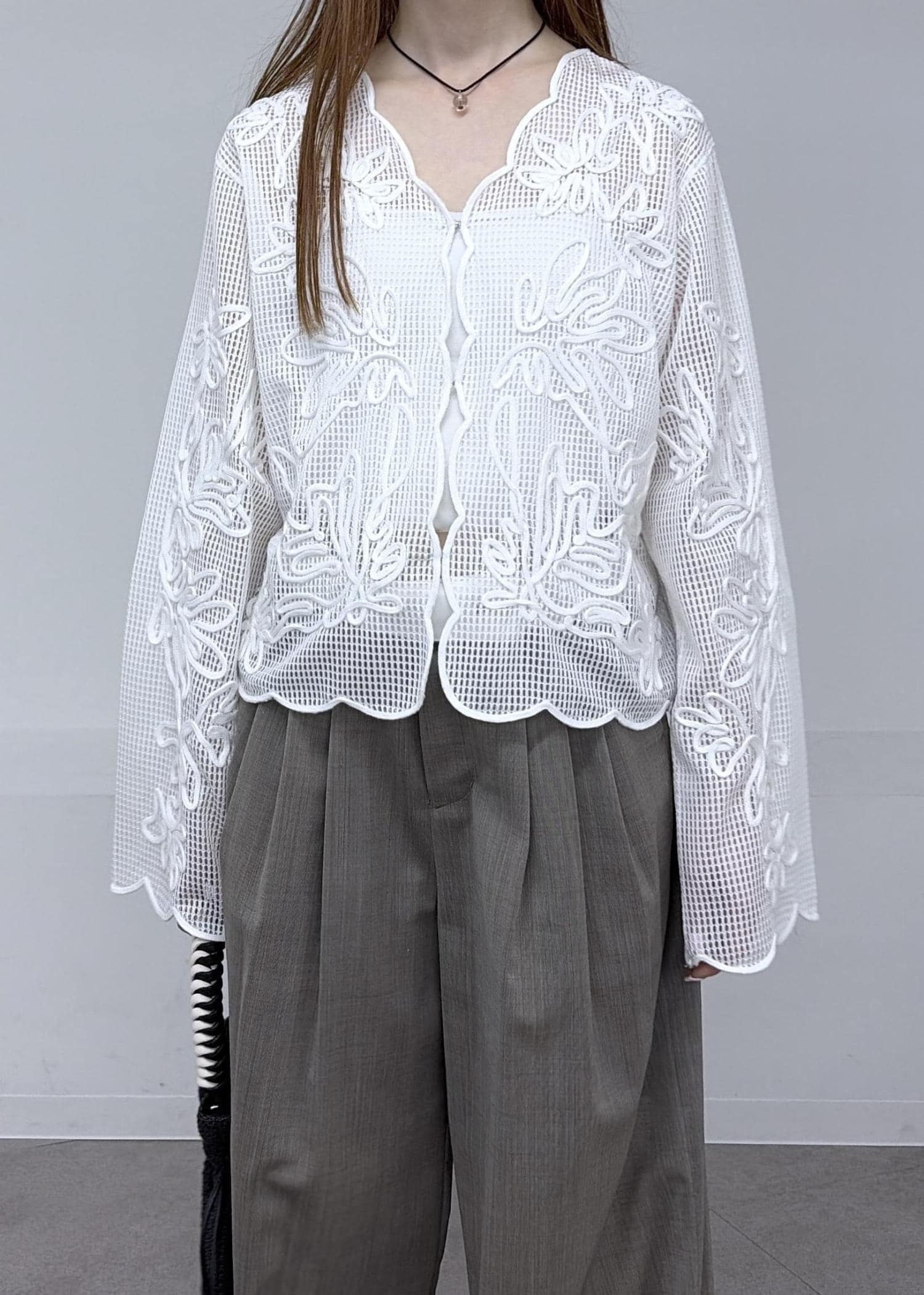 メッシュエンブロイダリーカーディガン