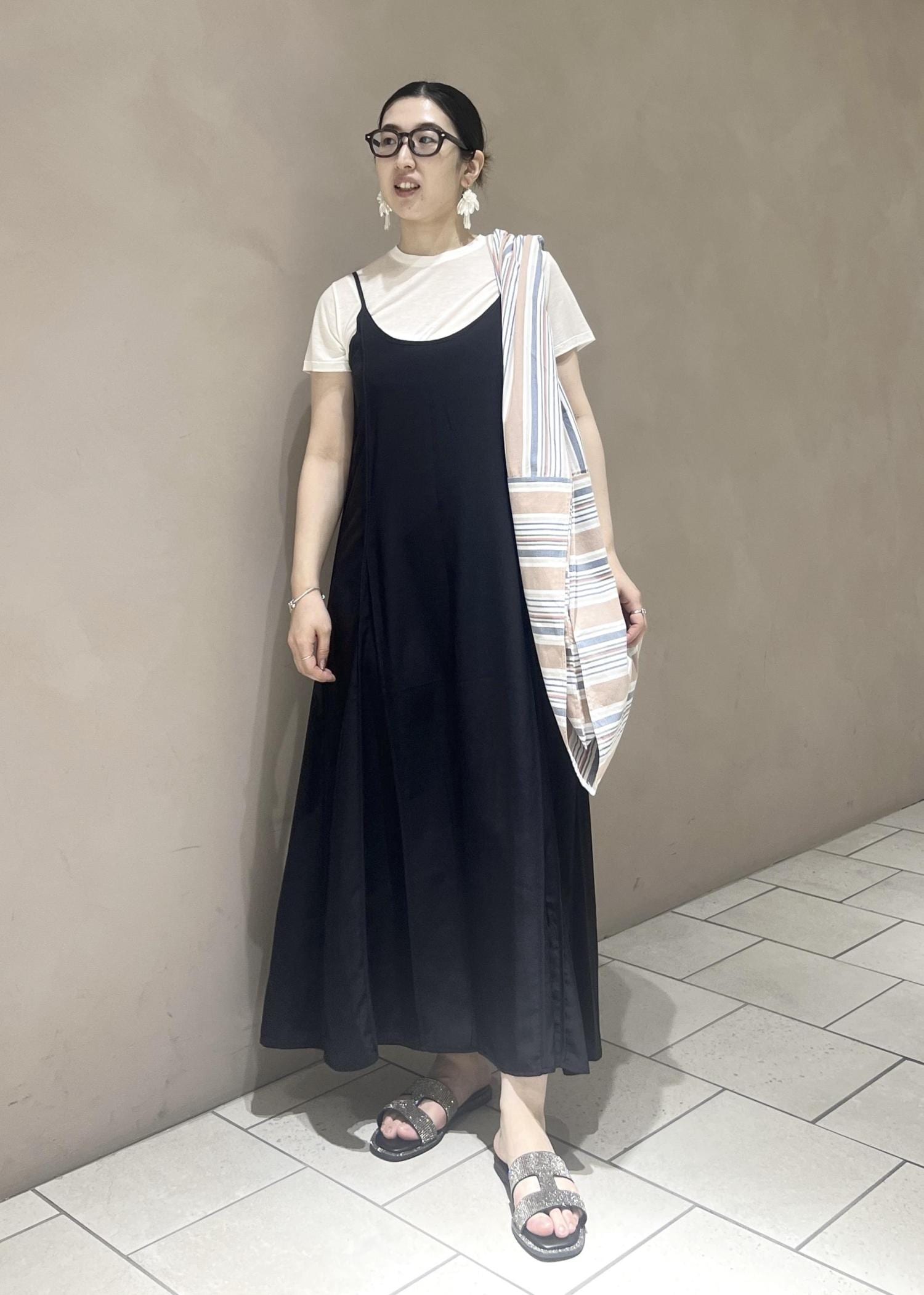 ADAM ET ROPÉ FEMME【Baserange(ベースレンジ)】ADE DRESSブラック / S¥58,080レビューSサイズ表記ですが、割とゆったり目のサイズ感です!トロンとした生地感で薄めで着心地最高です♡着丈も162cmで足首までしっかり隠れる丈感です!夏にぴったりな1着です♪