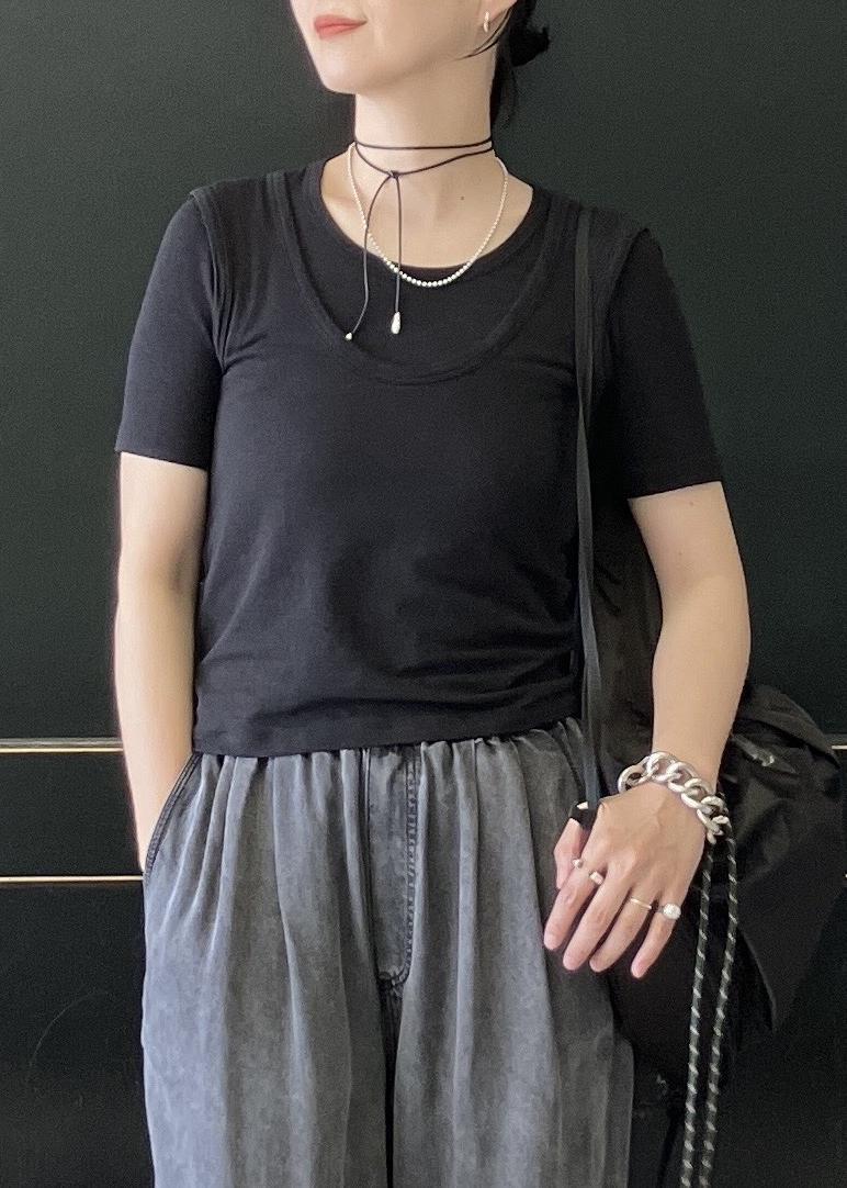 Tシャツを2枚重ねて着ても、ノースリーブを上からレイヤードしても素敵ですよ!