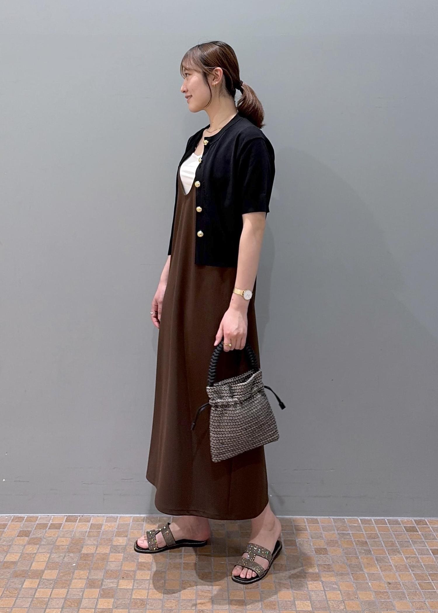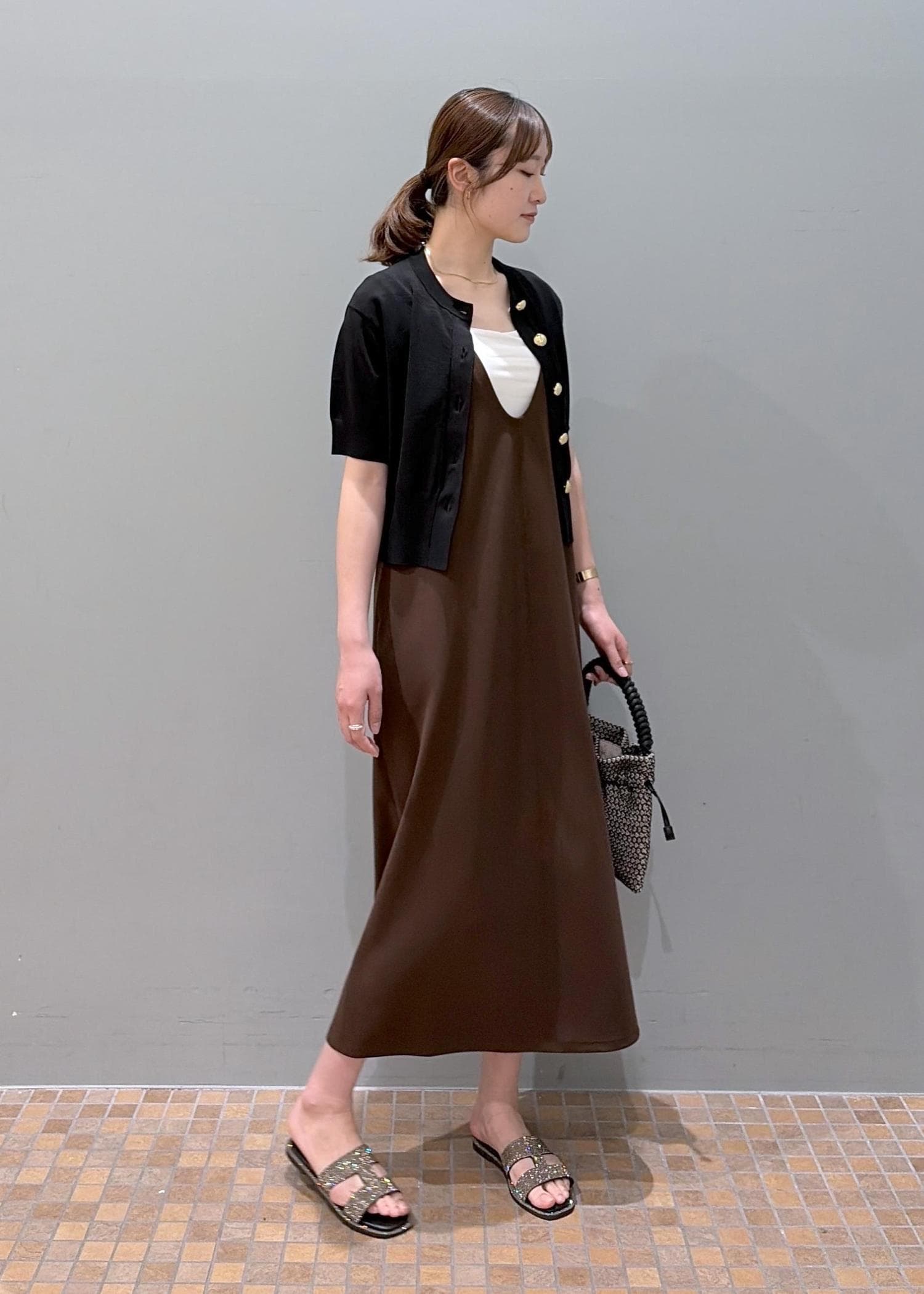 ディープネックワンピース✖️カーディガンコーデ
