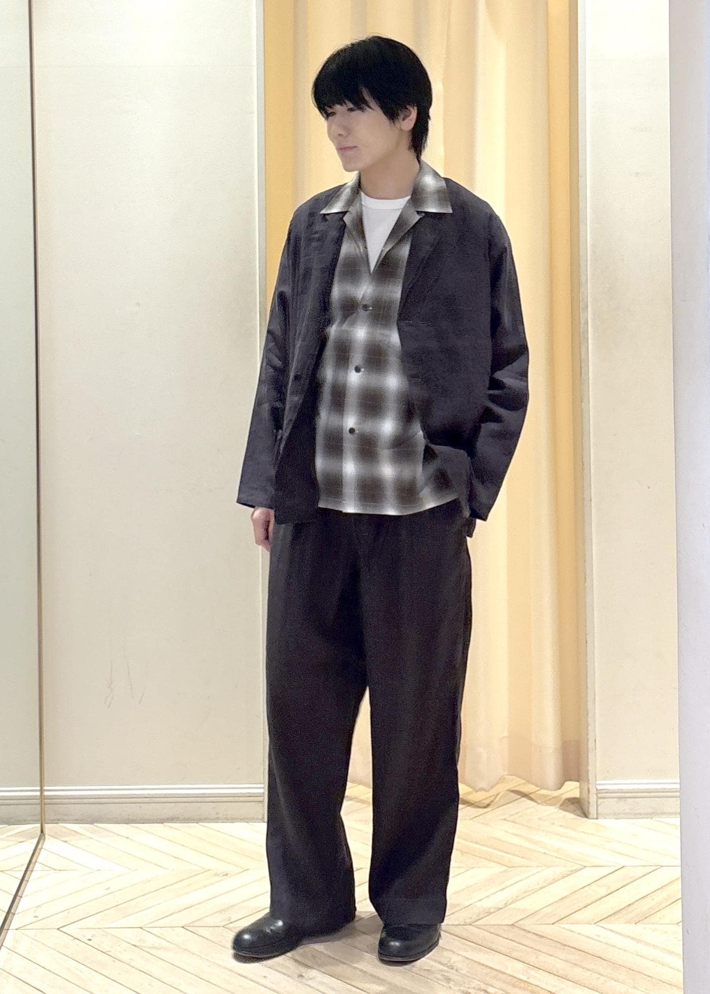 ADAM ET ROPÉ HOMMEオンブレチェック オープンカラーシャツブラウン系 / M¥17,600レビュー素材がポリエステルとレーヨンなので、シワになりにくく、オンブレなのもひとつアクセントになって使いやすいです!