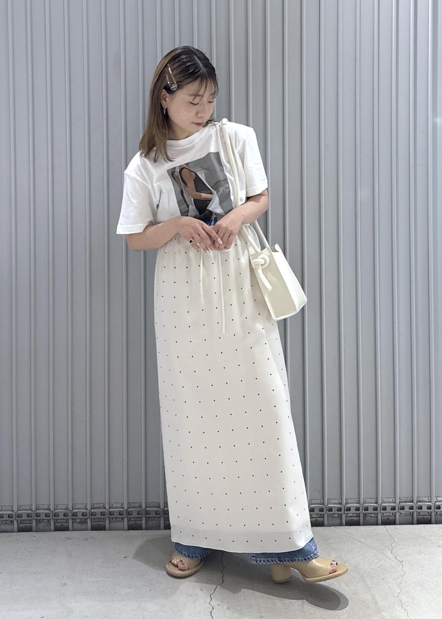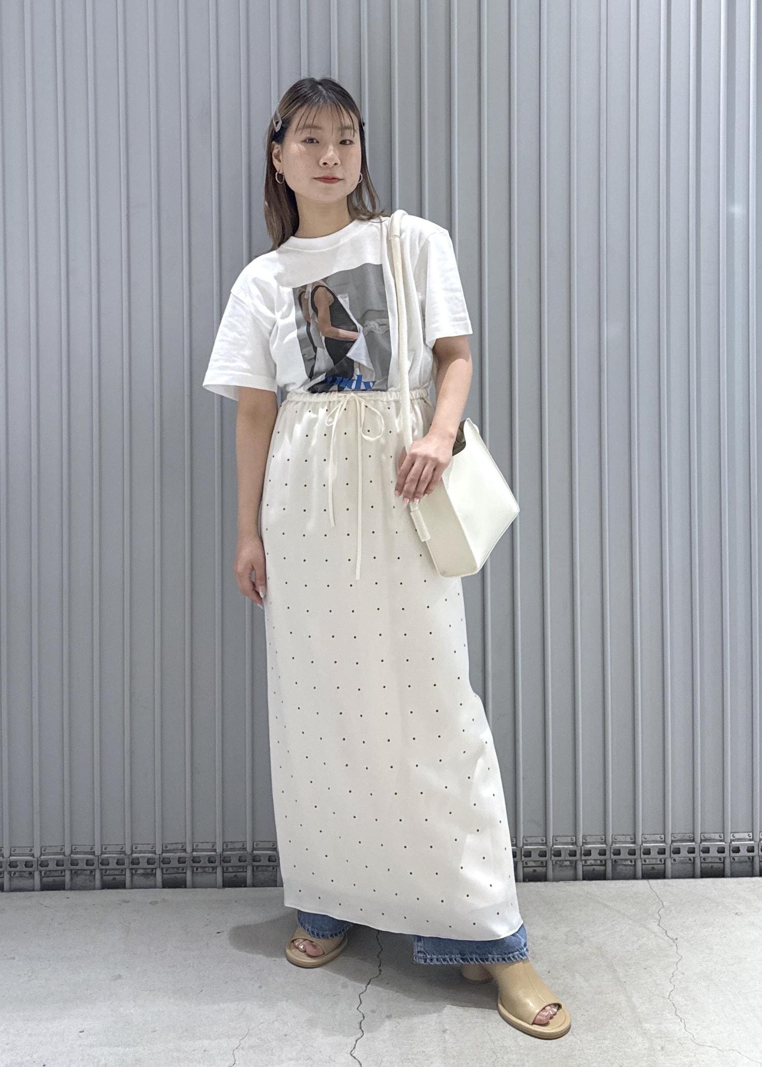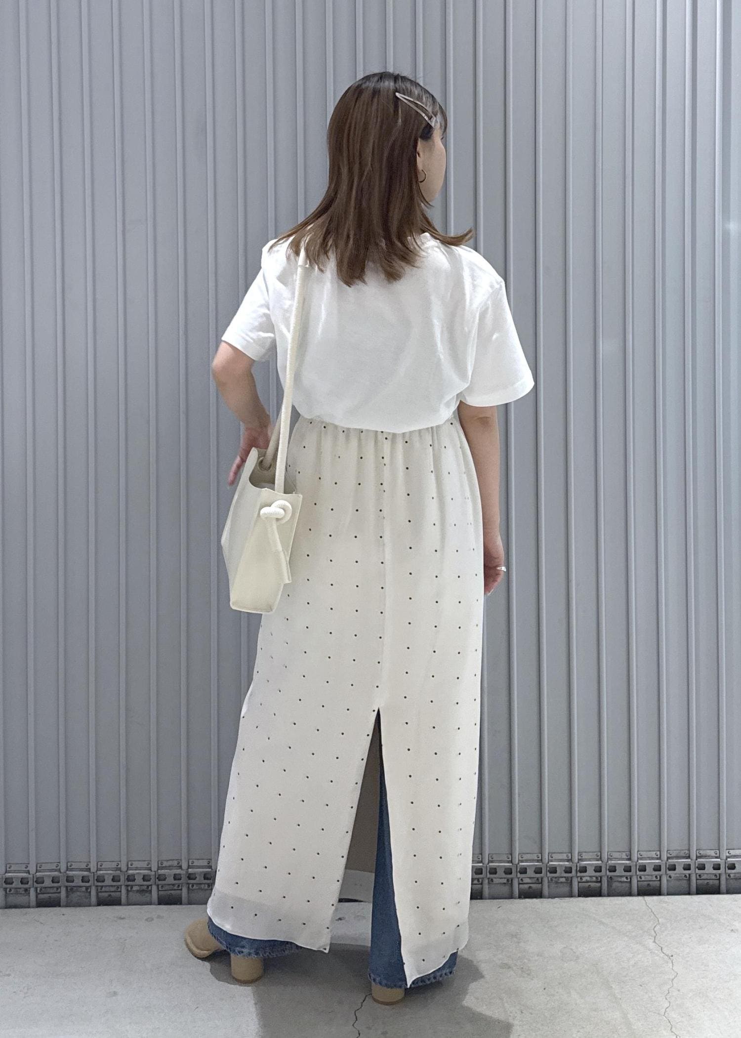 今回はデニムにスカートをレイヤードして