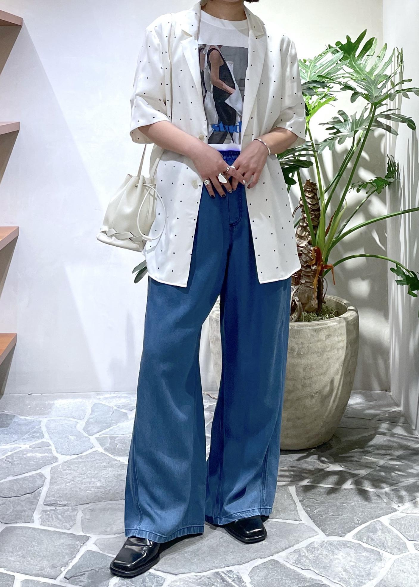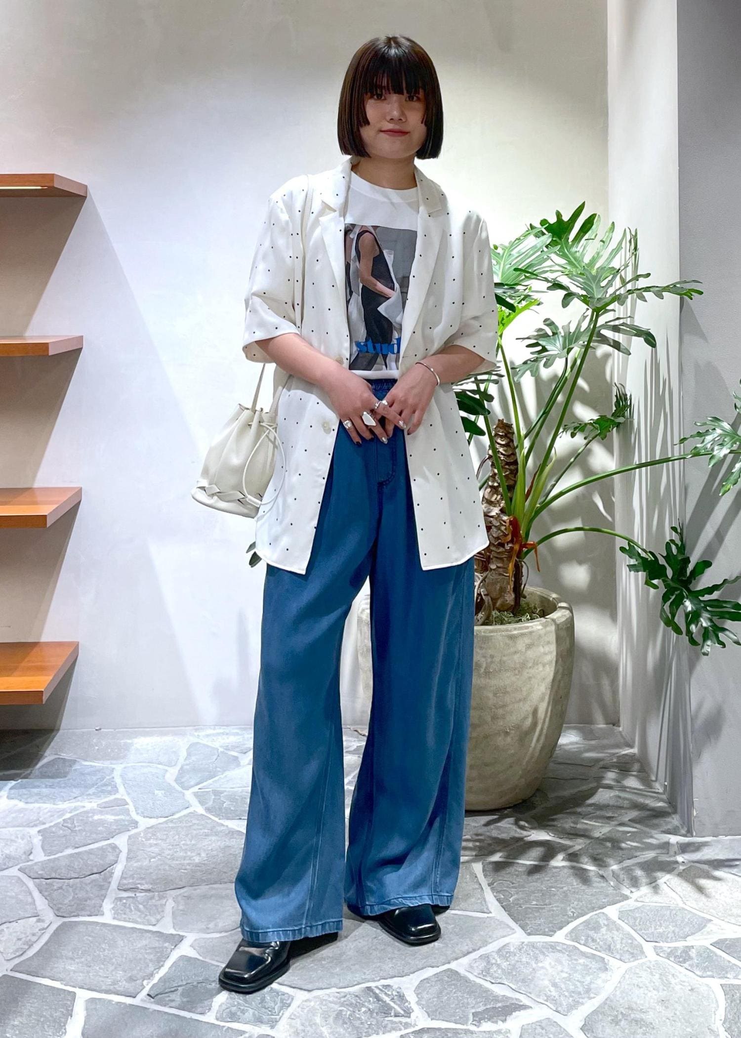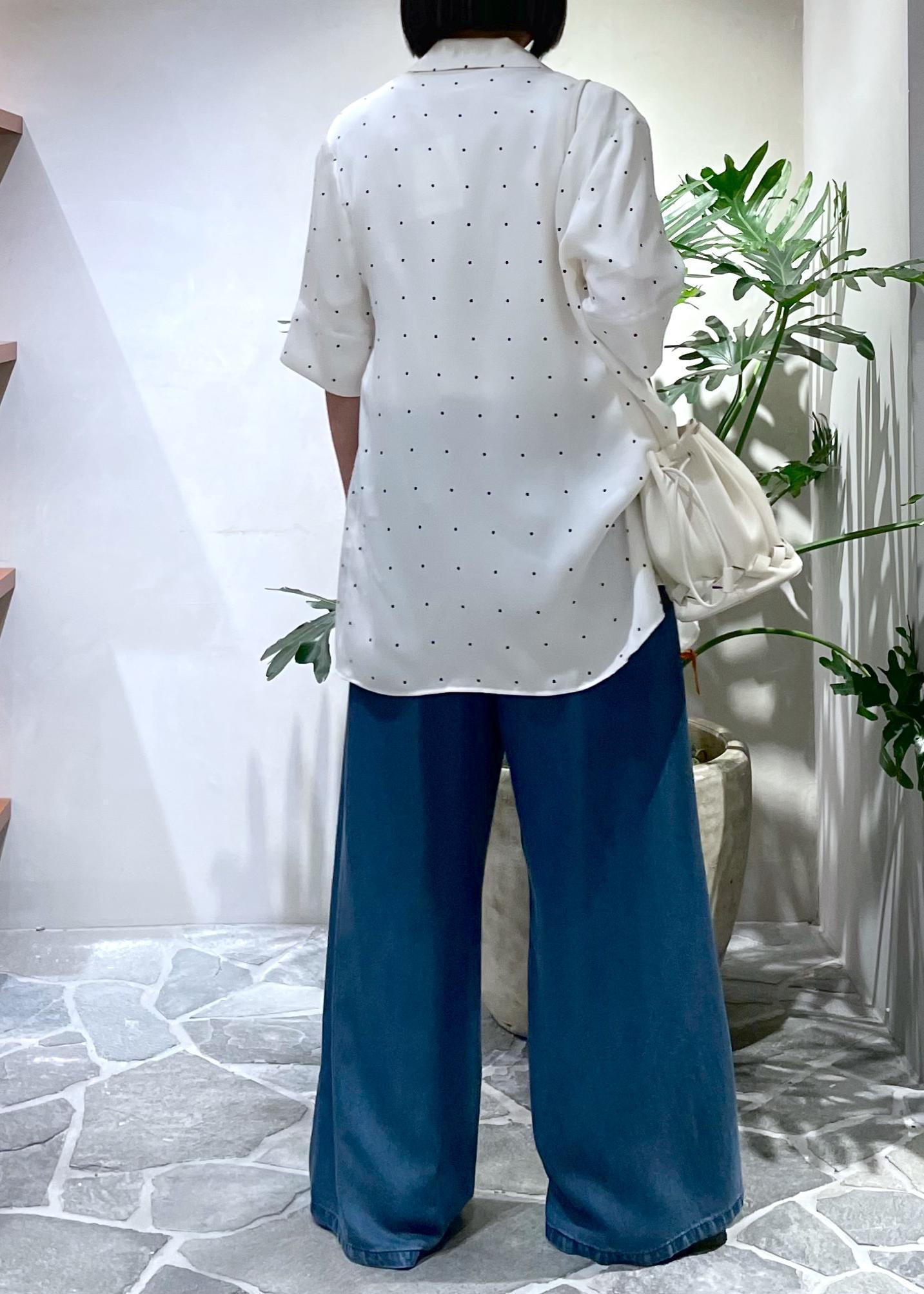 セルロースのとろみがある素材なのでワイドシルエットでも女性らしく着れます。