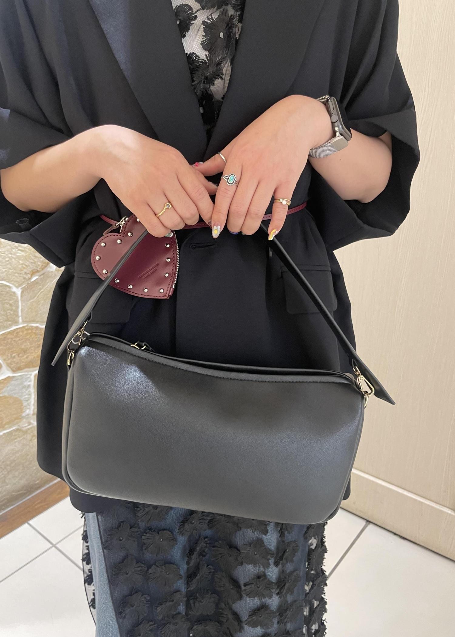 ADAM ET ROPÉ FEMMEスプリットレザートップハンドルバッグブラック / F¥22,000レビュー手持ち部分が変わってるデザインになっていて、特別感満載です◎