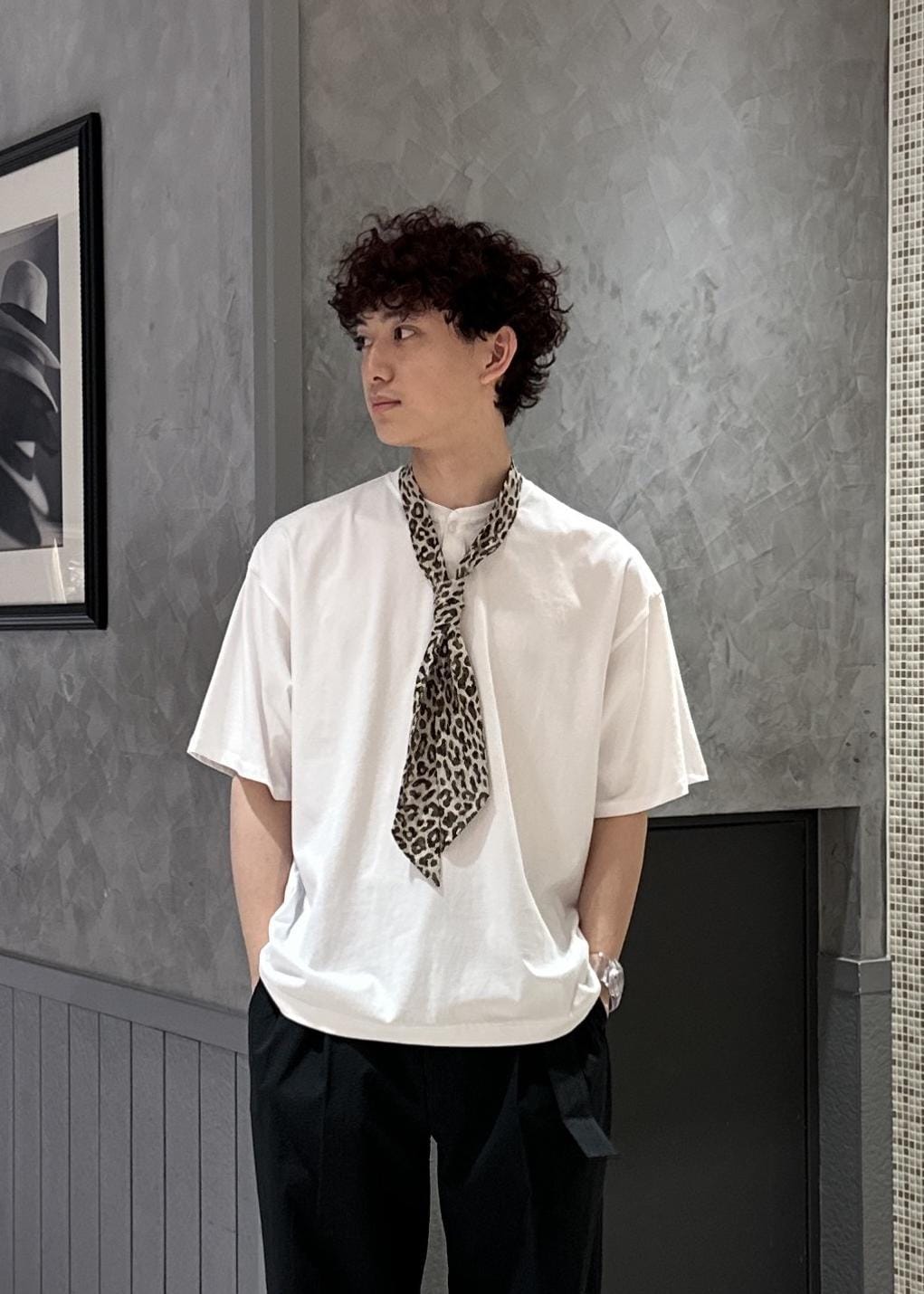 ヘンリーネックのTシャツ。サラッとしていて着心地が良いです。インナー使いやレイヤードスタイルにも活躍します。 -