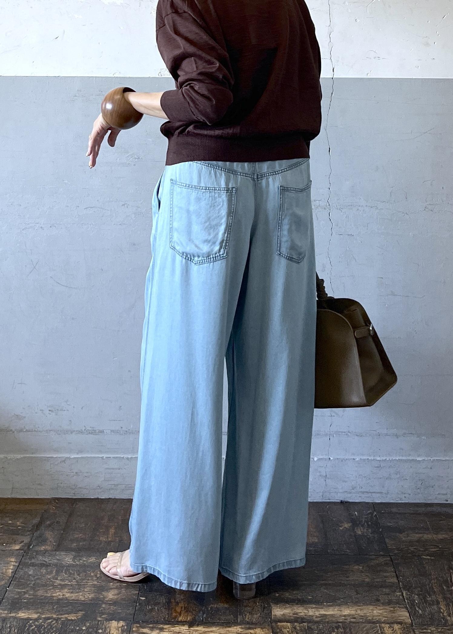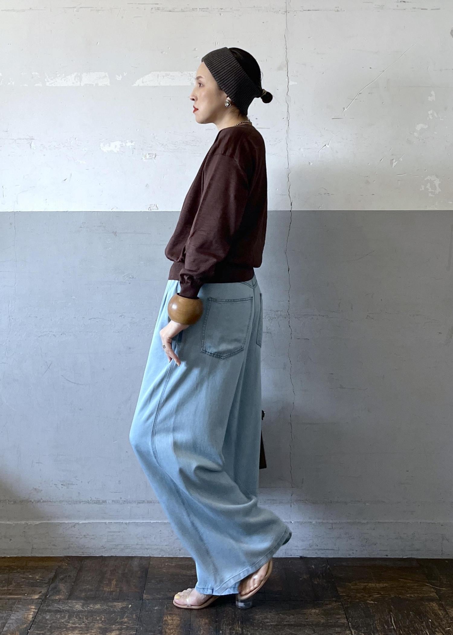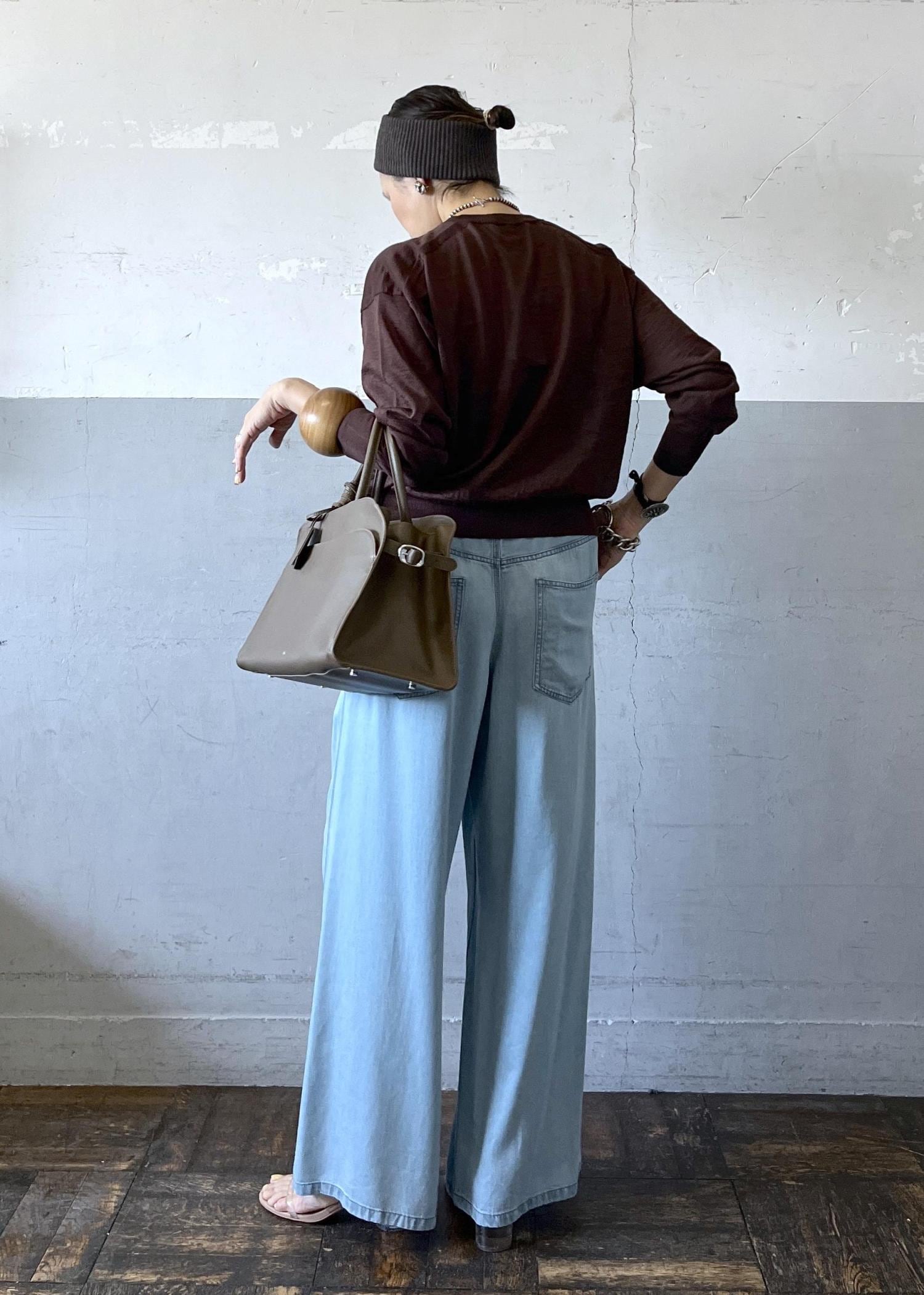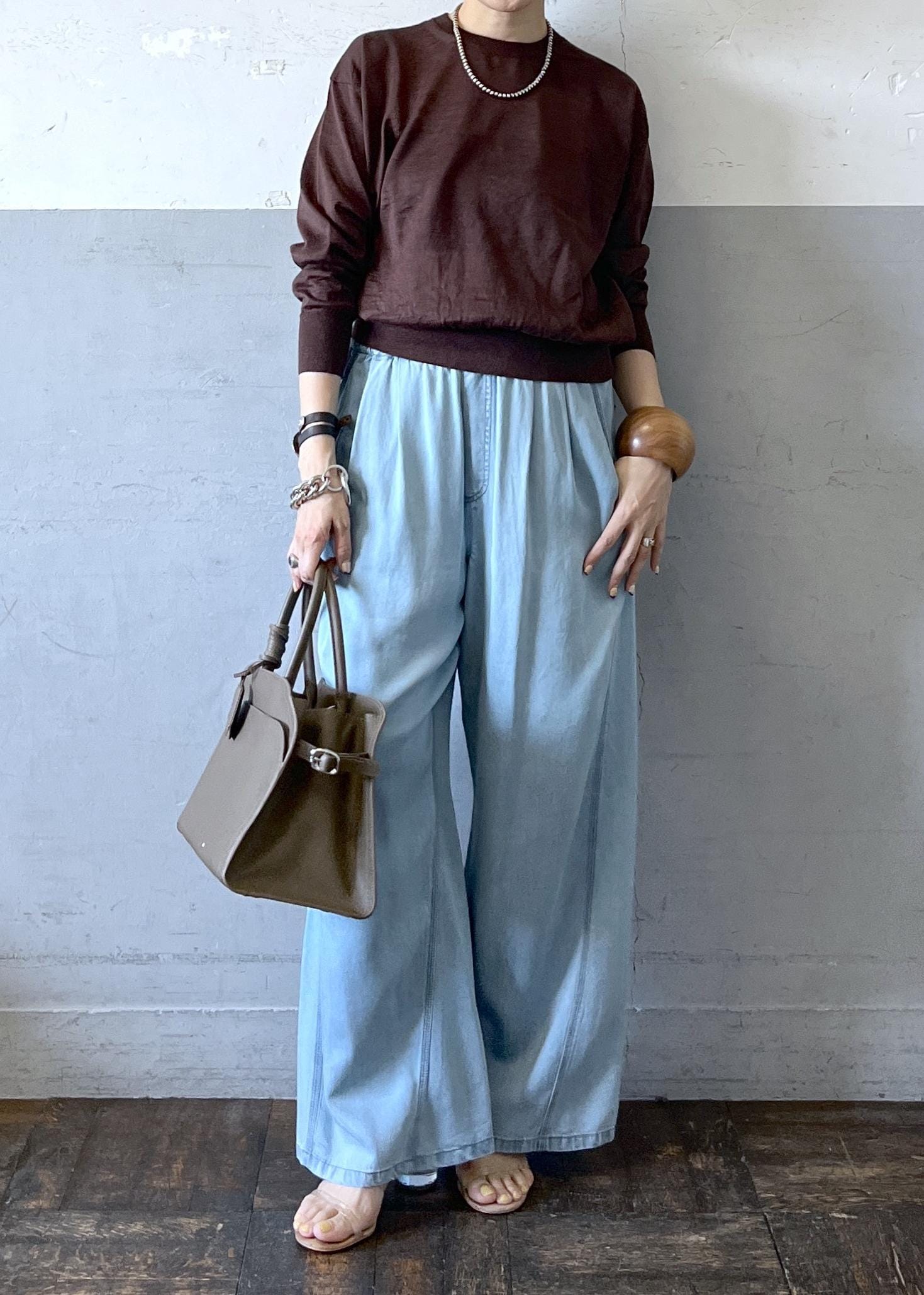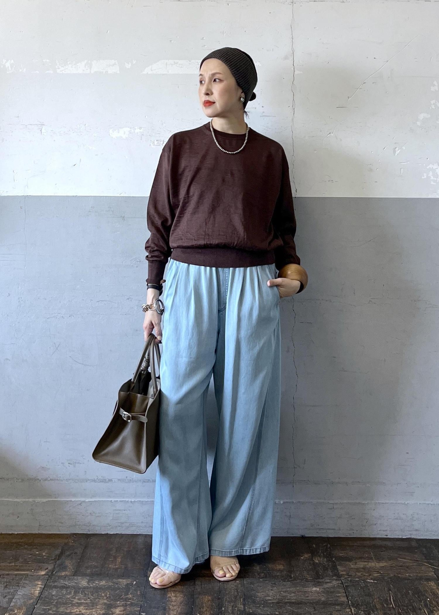 軽やかなイージーパンツを合わせた大人のリラックススタイル。
