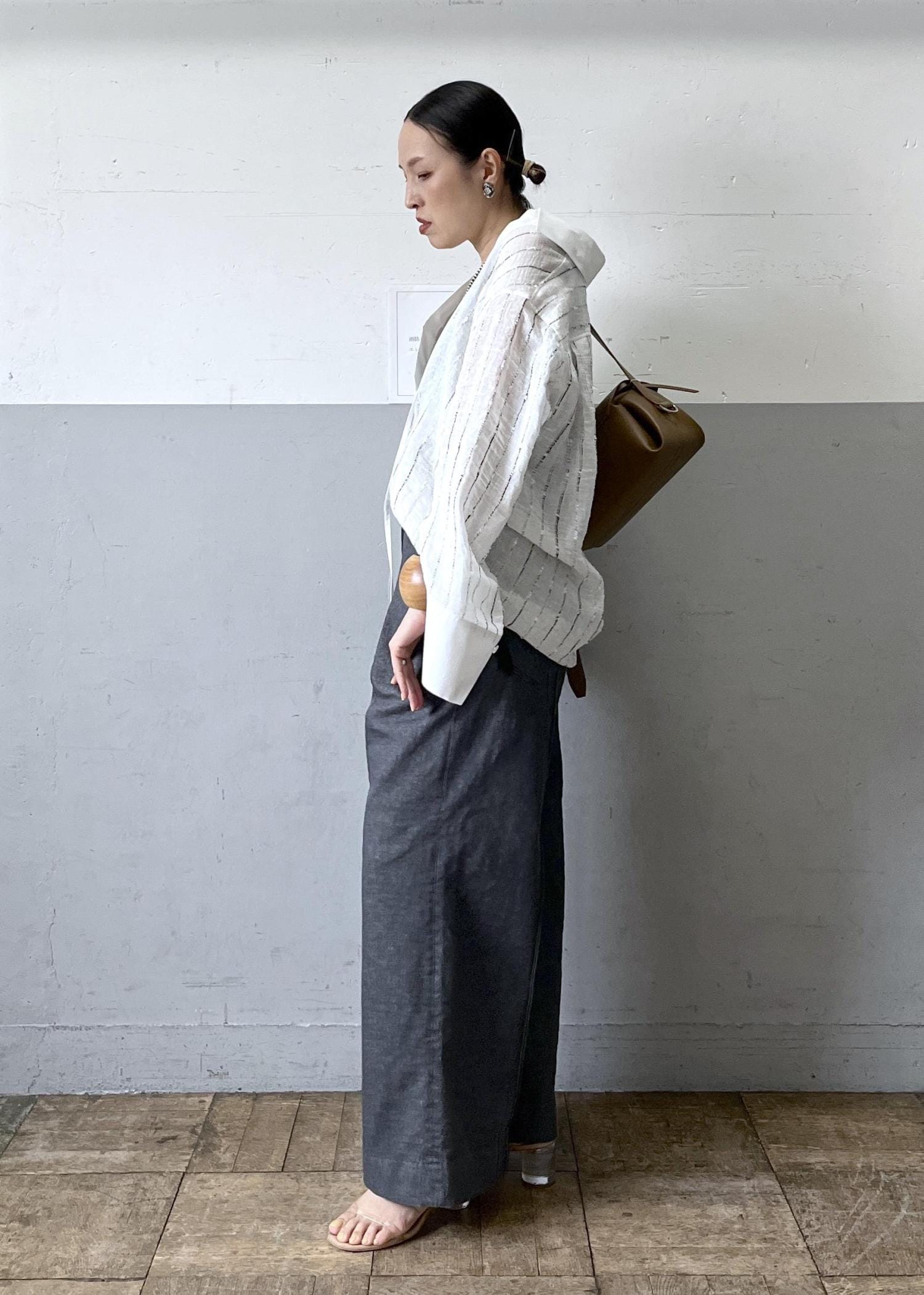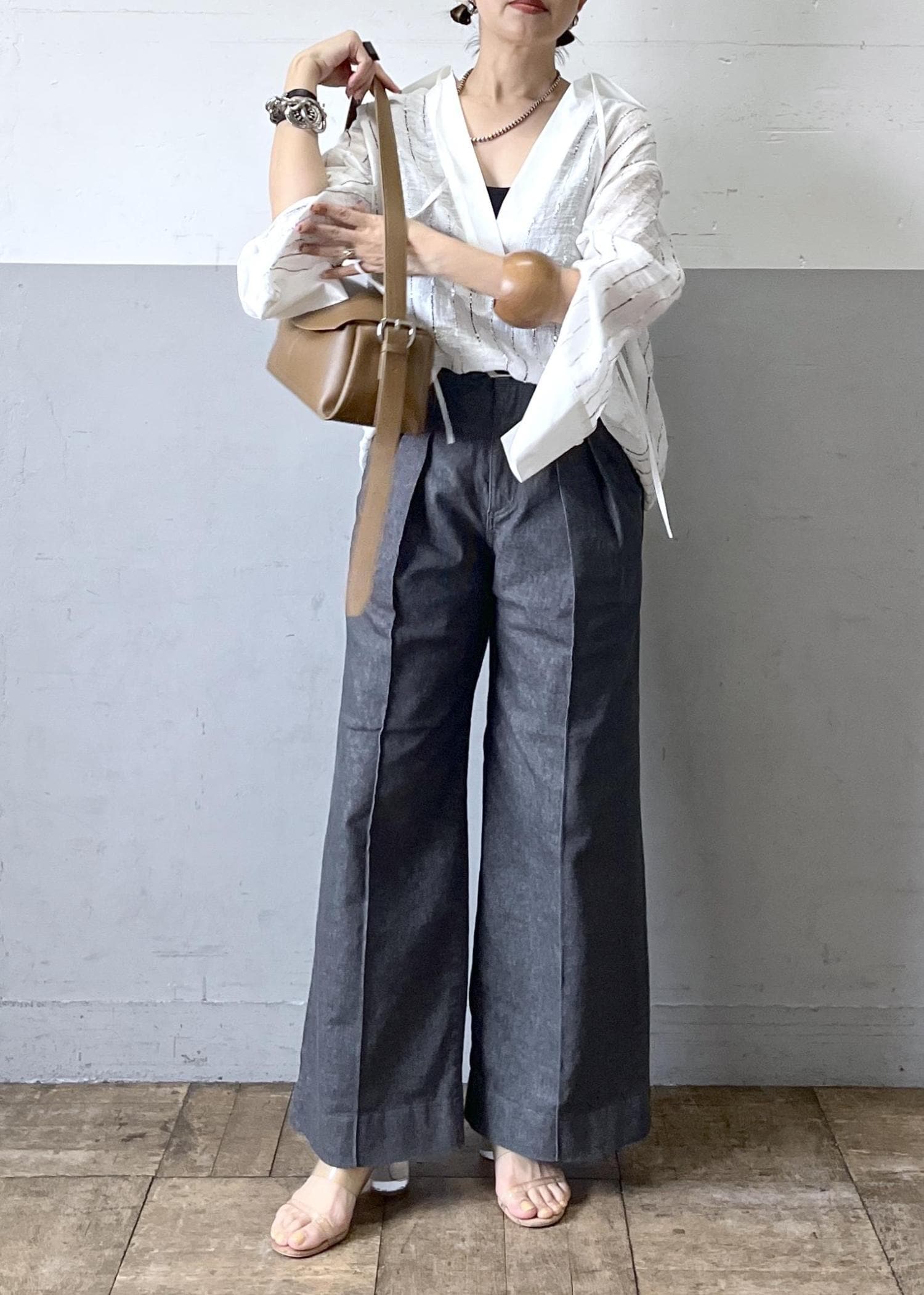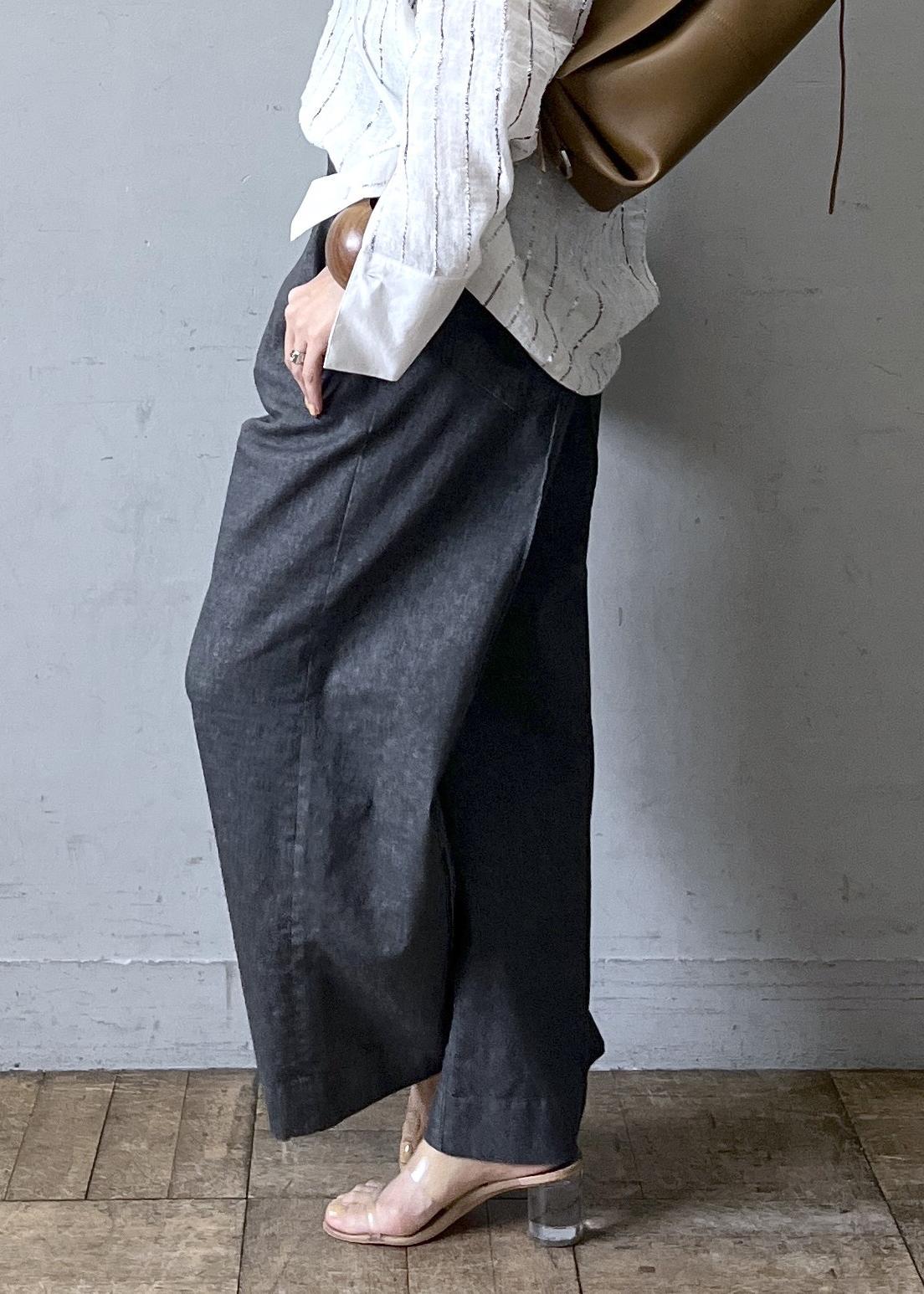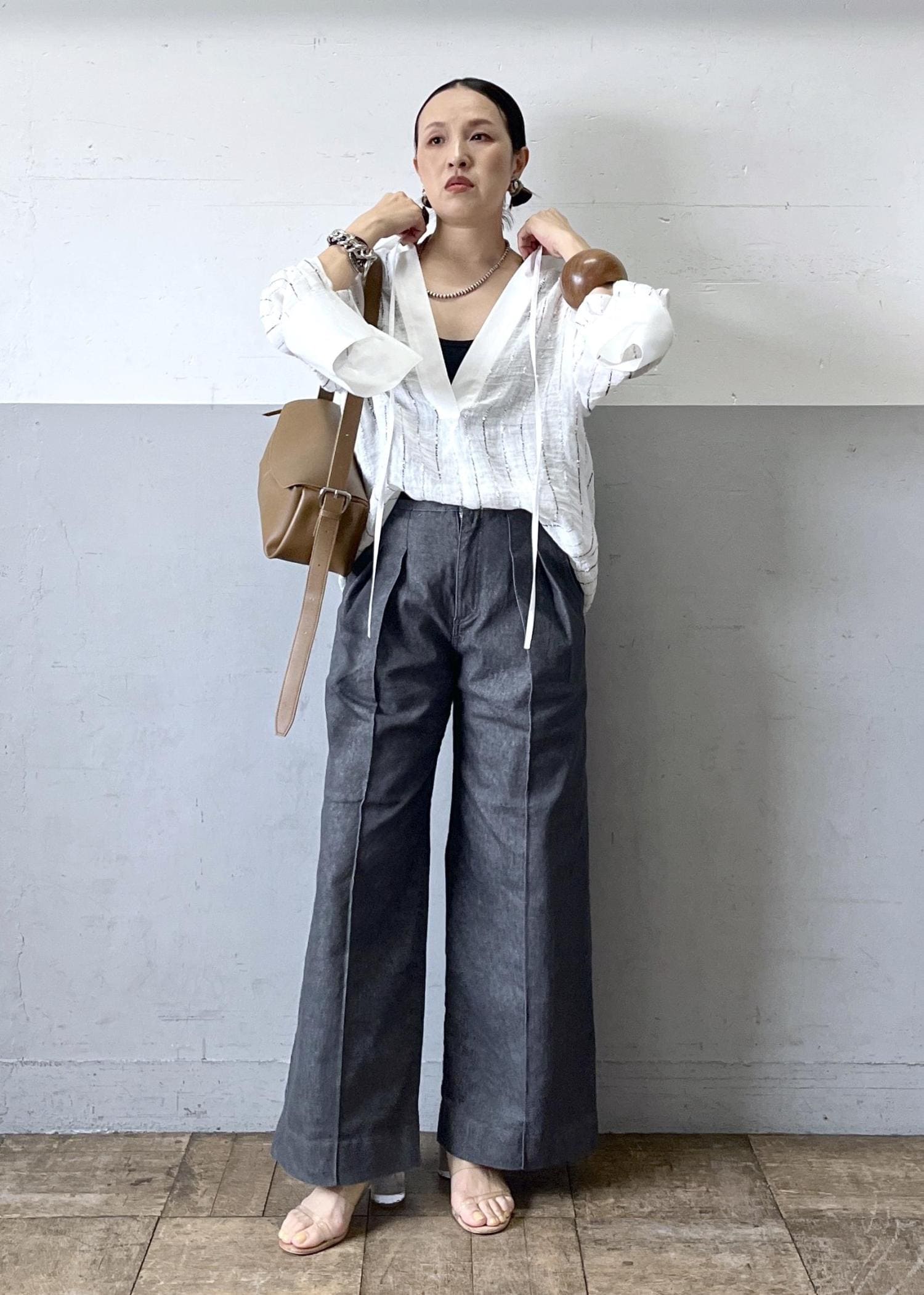 EMOELLE【EMOELLE】2タックデニムパンツチャコール / 38¥26,400レビュー驚くほどの伸縮性のある素材で履き心地もよく、とても動きやすいパンツ。ワイドシルエットなので、コンパクトなトップスと合わせるのも◎