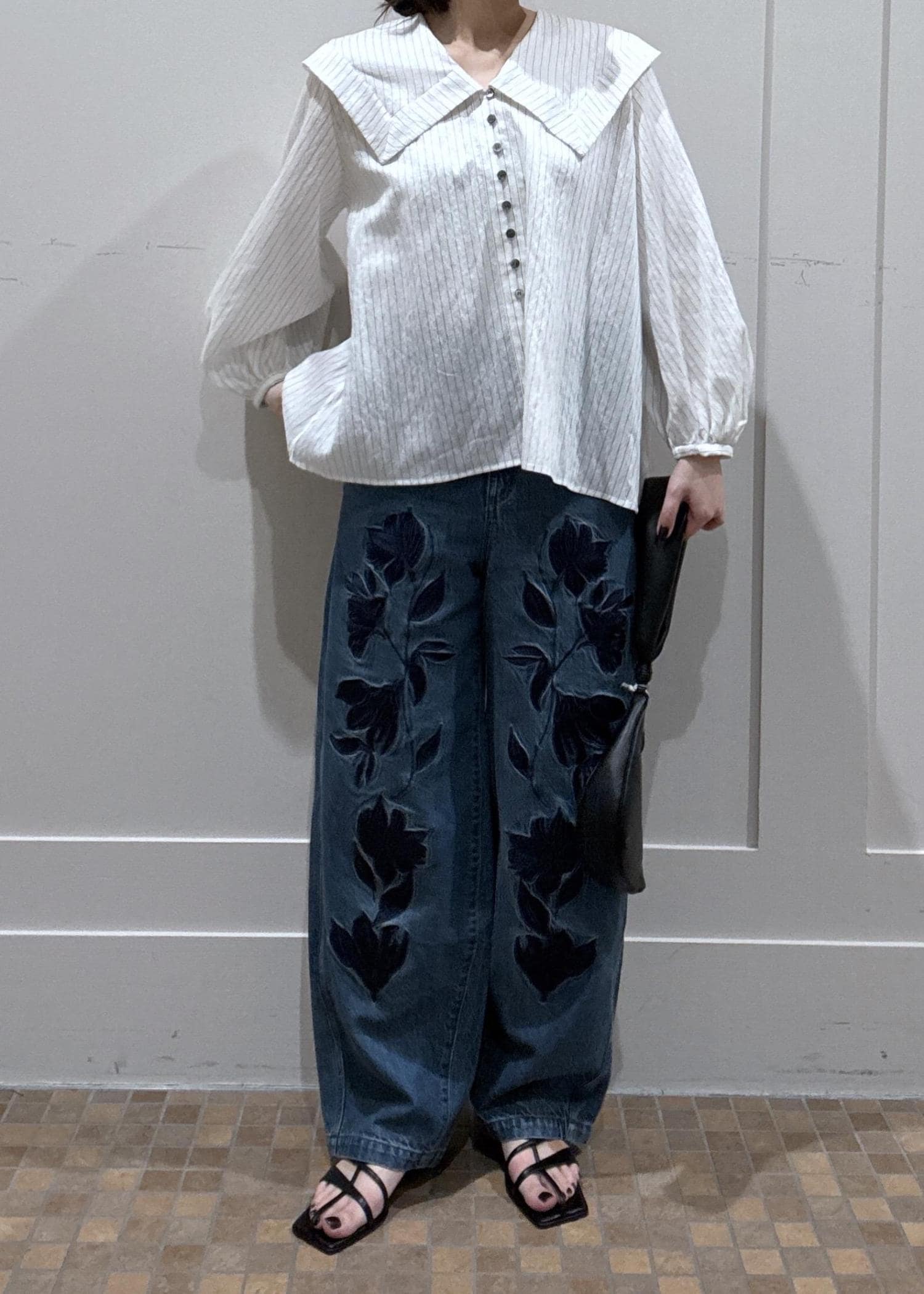 NEW!ADAM ET ROPÉ FEMME【サステナブル】エンブロイダリーハイウエストデニムパンツブルー系 / 38¥22,000レビュー普段Mで38サイズ着用しました。