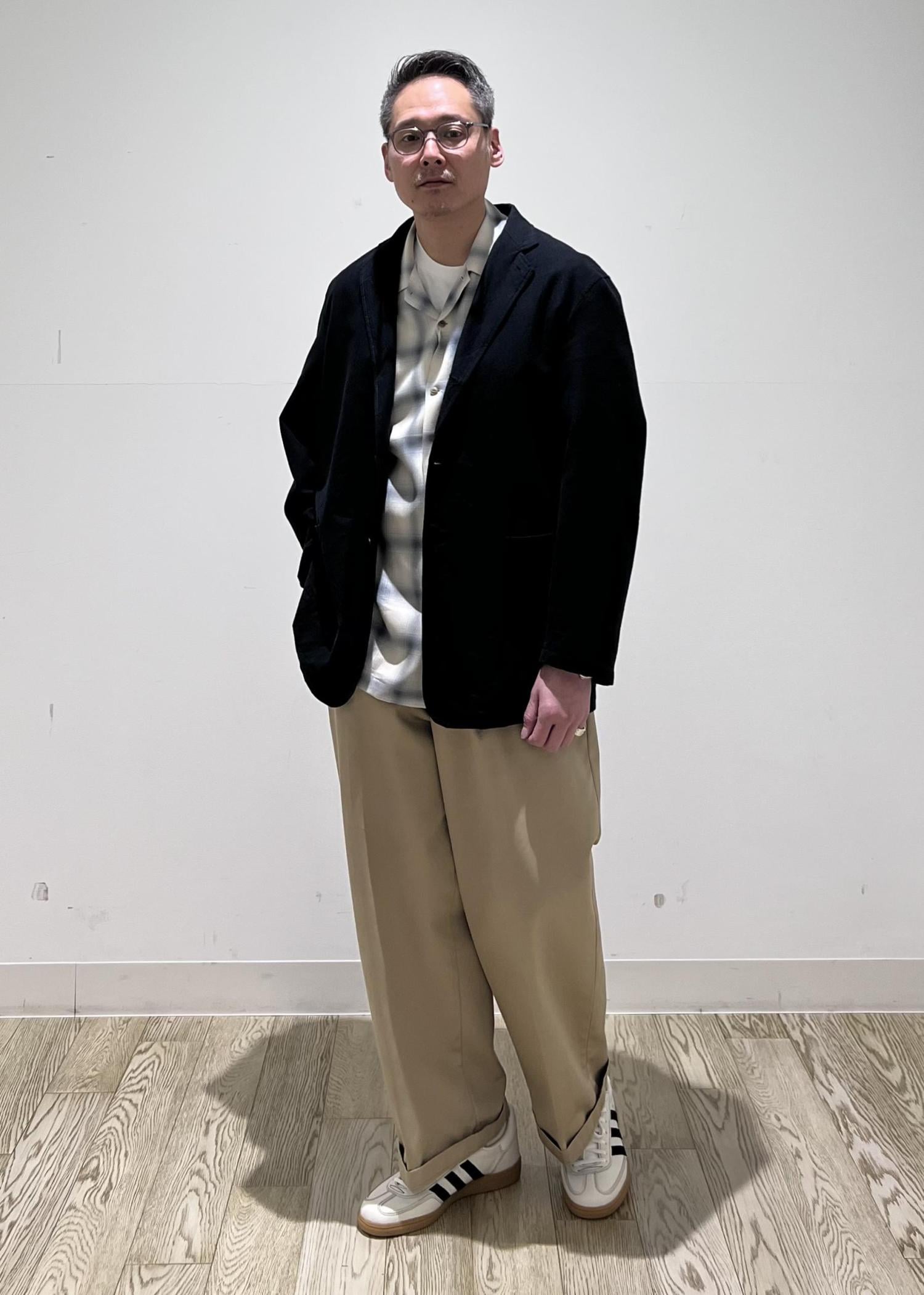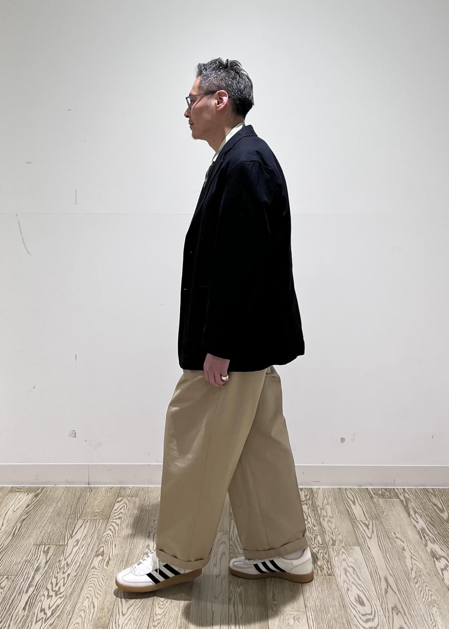 ブラックのブレザーとチノとでオーセンティックなイメージでスタイリングしました!
