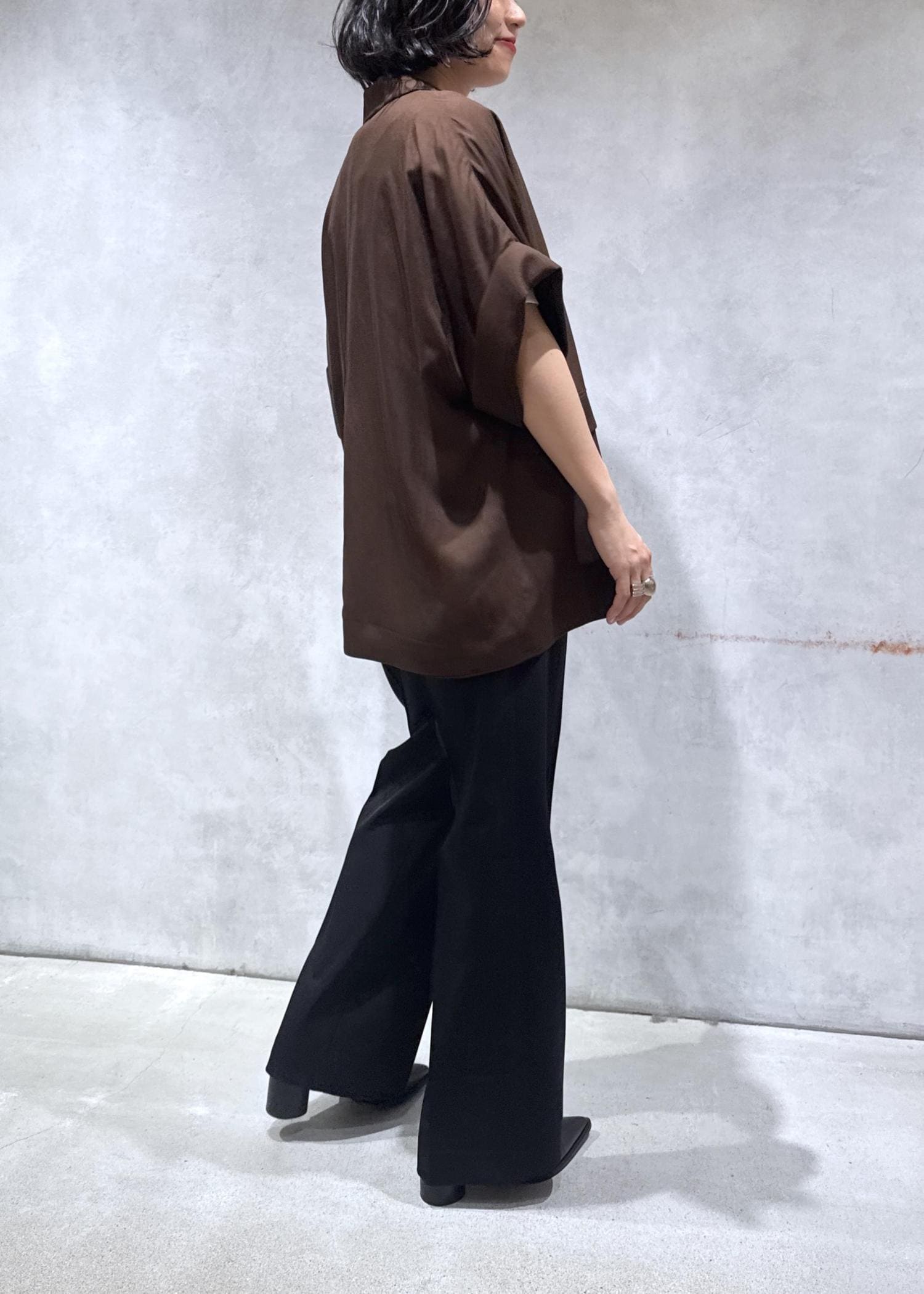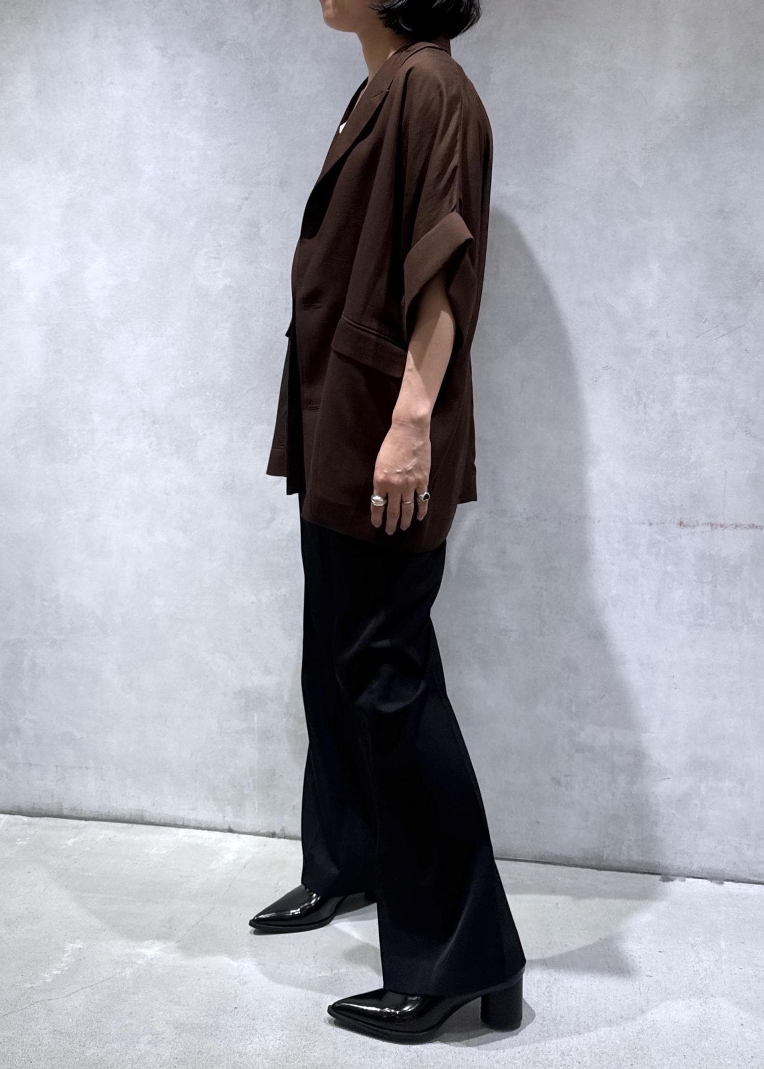 ADAM ET ROPÉ FEMME【サステナブル】ショートスリーブシャツジャケットダークブラウン / F¥19,800レビュードルマンスリーブで肩肘張らずに羽織れるジャケット。