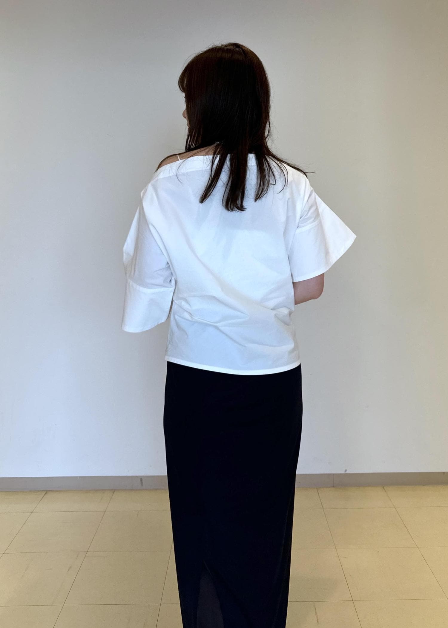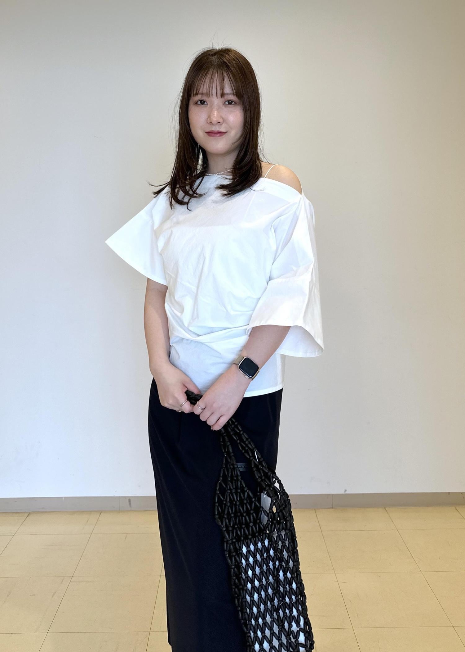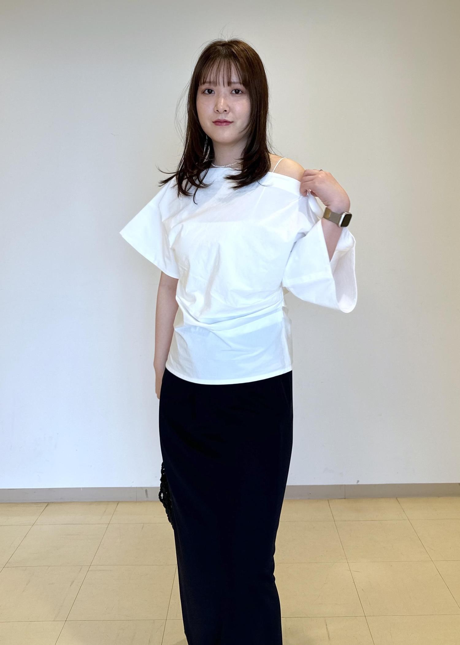 EMOELLE【EMOELLE】アシメスタイルトップスホワイト / F¥24,200レビュー細見え最高トップスでした。ハリ感のある生地と、ナチュラルな肌見せで夏にピッタリな可愛いトップスです