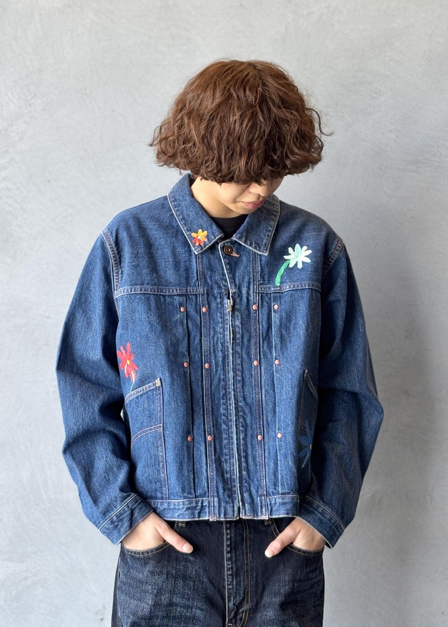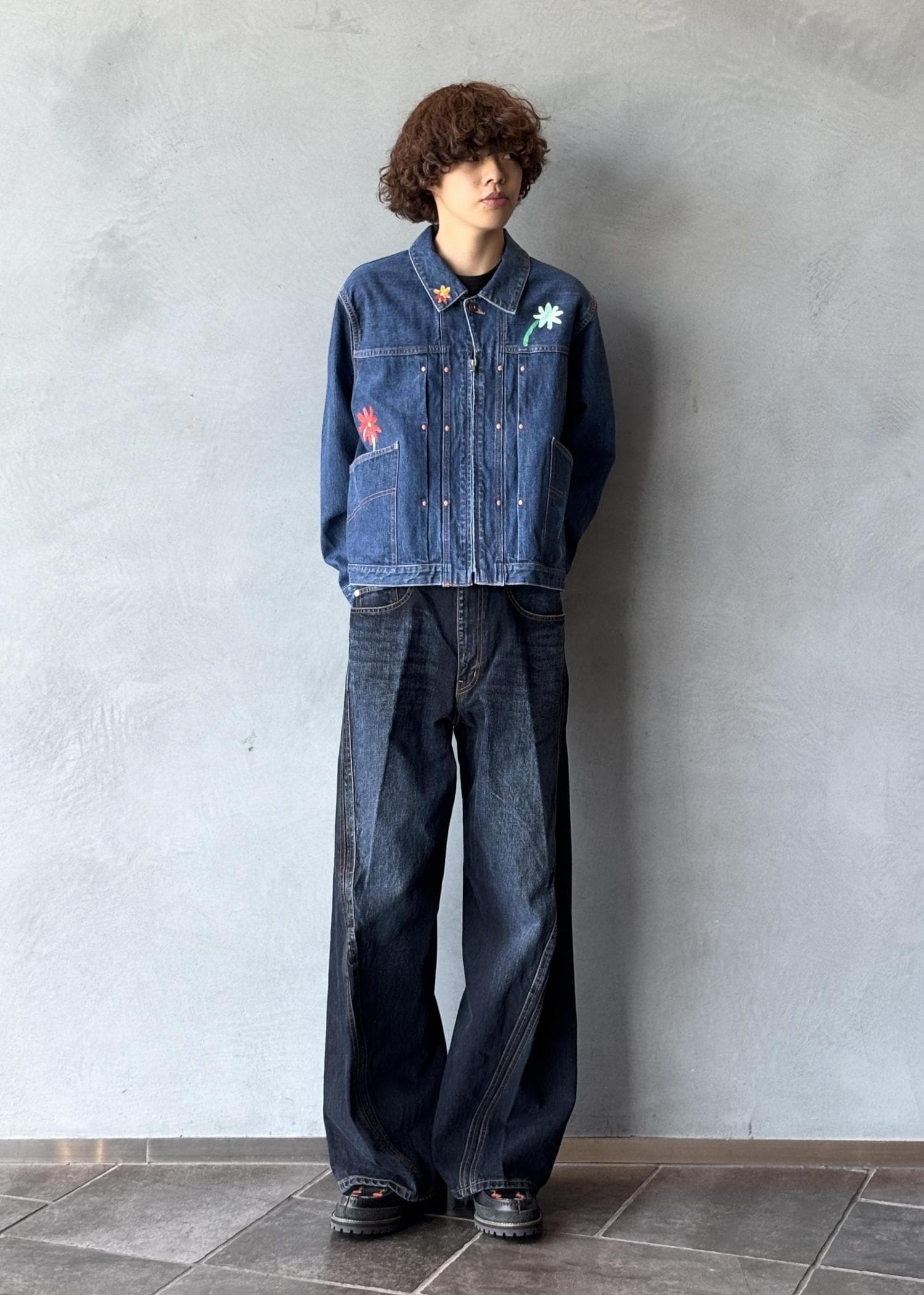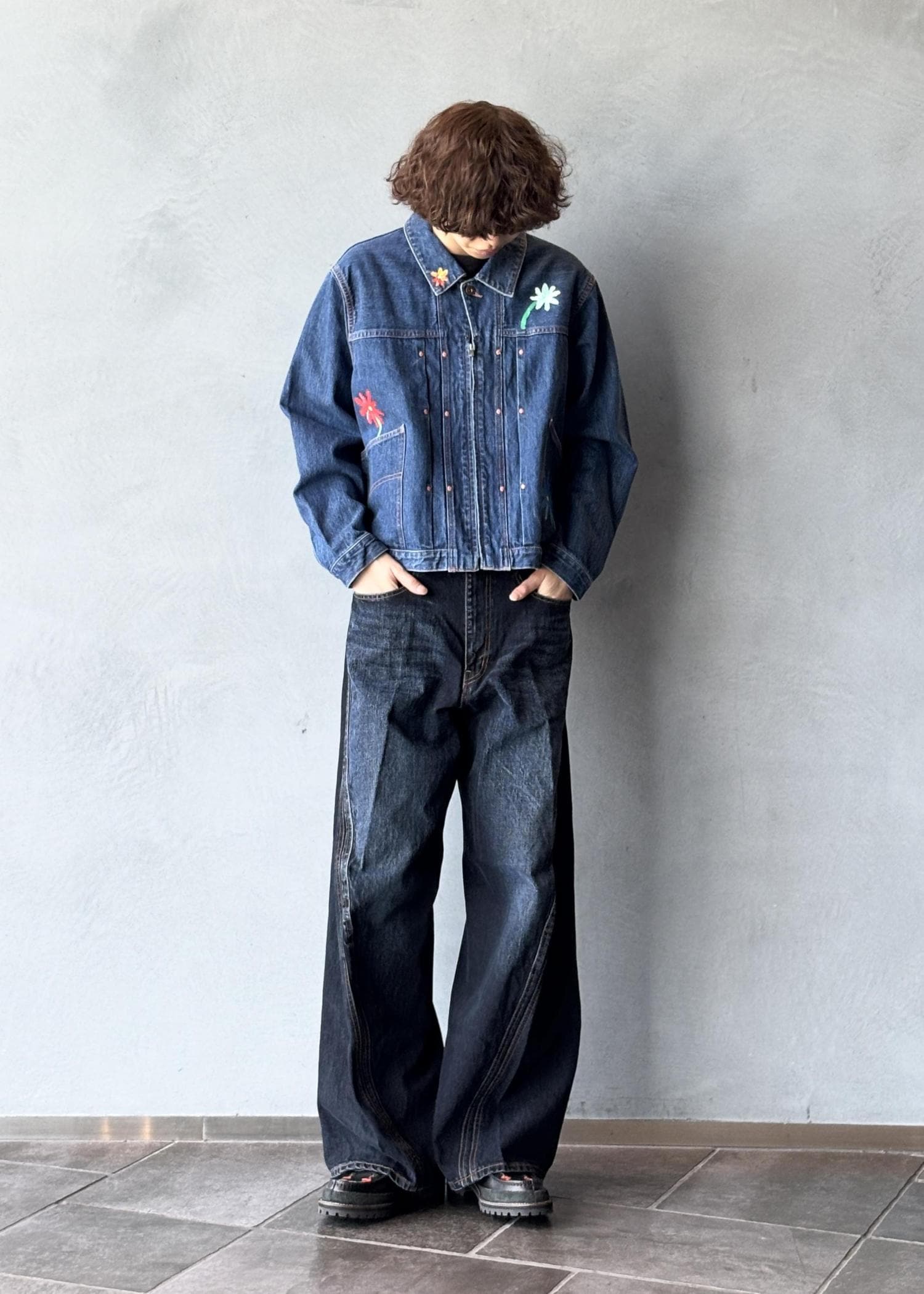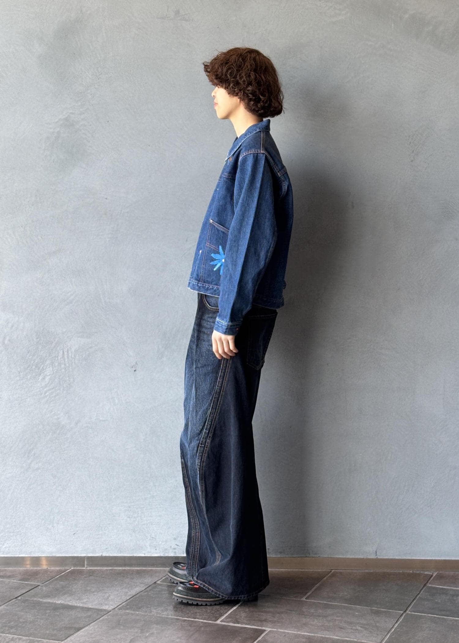 一点物のデニムジャケットを主役にしたデニムオンデニム。