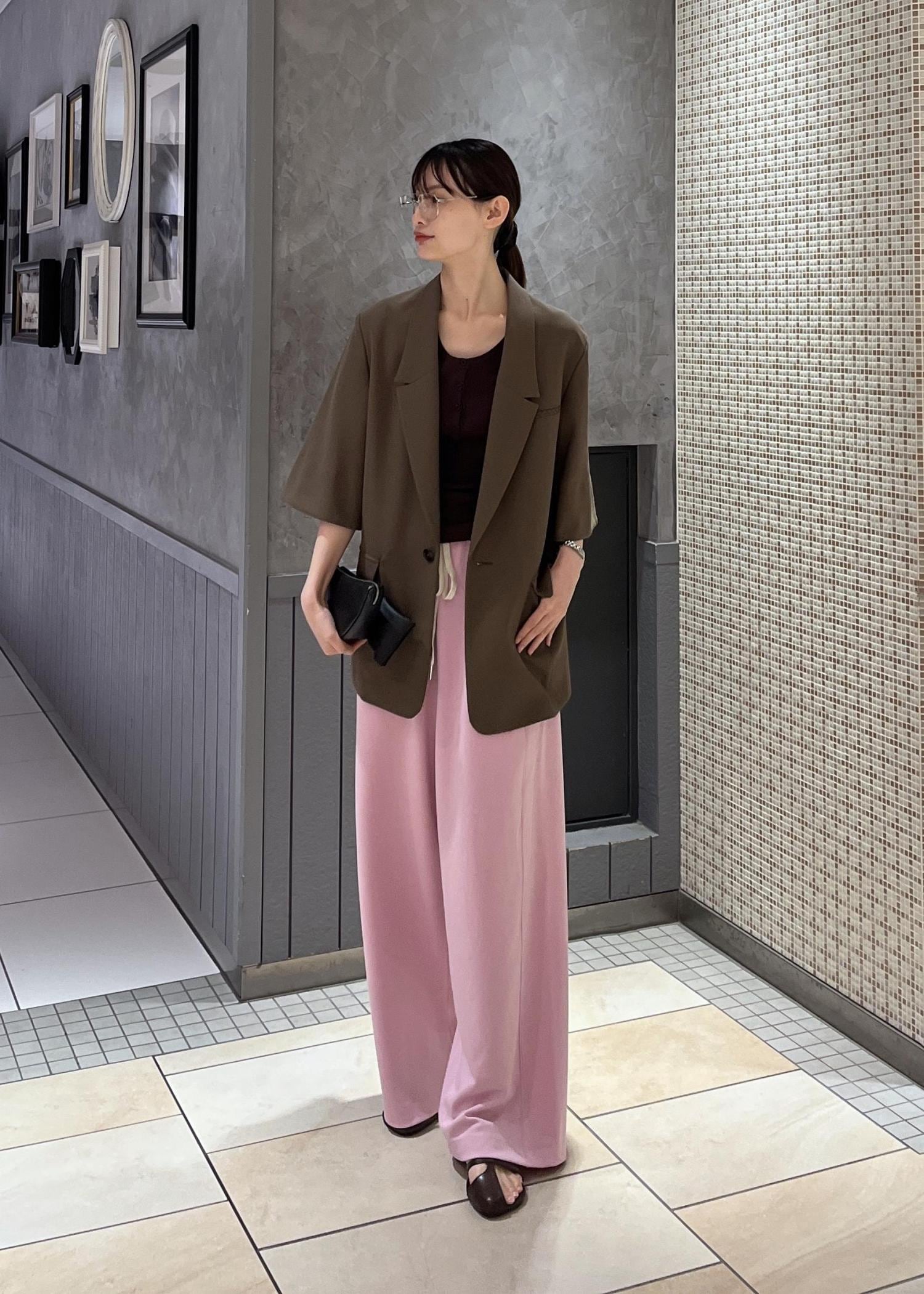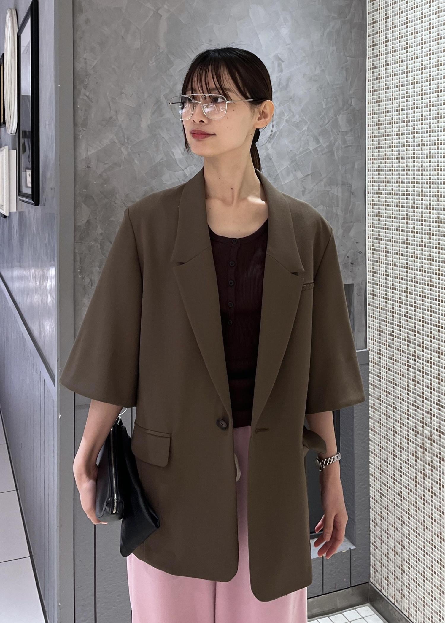 EMOELLE【EMOELLE】ハーフスリーブジャケットブラウン系 / 36¥49,500レビュー肩パッドは取り外し可能です。スリーブが割と長めなので、ハーフスリーブでも大人ぽいモードな雰囲気が出ます。