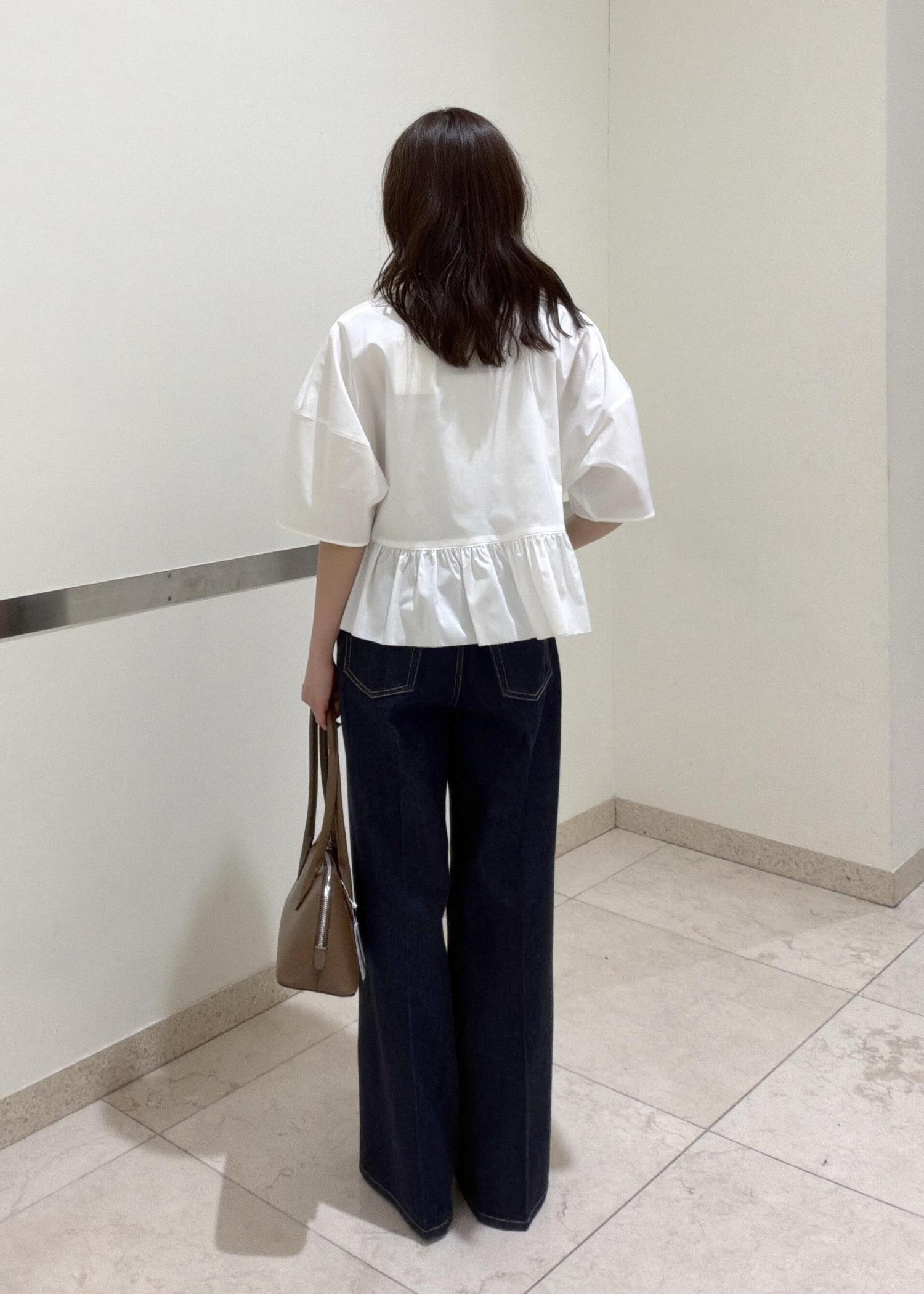 ADAM ET ROPÉ FEMME【サステナブル】・【定番】フリルブラウスホワイト / F¥15,950レビューコンパクトな丈感で色々なボトムスと合わせやすいです♪