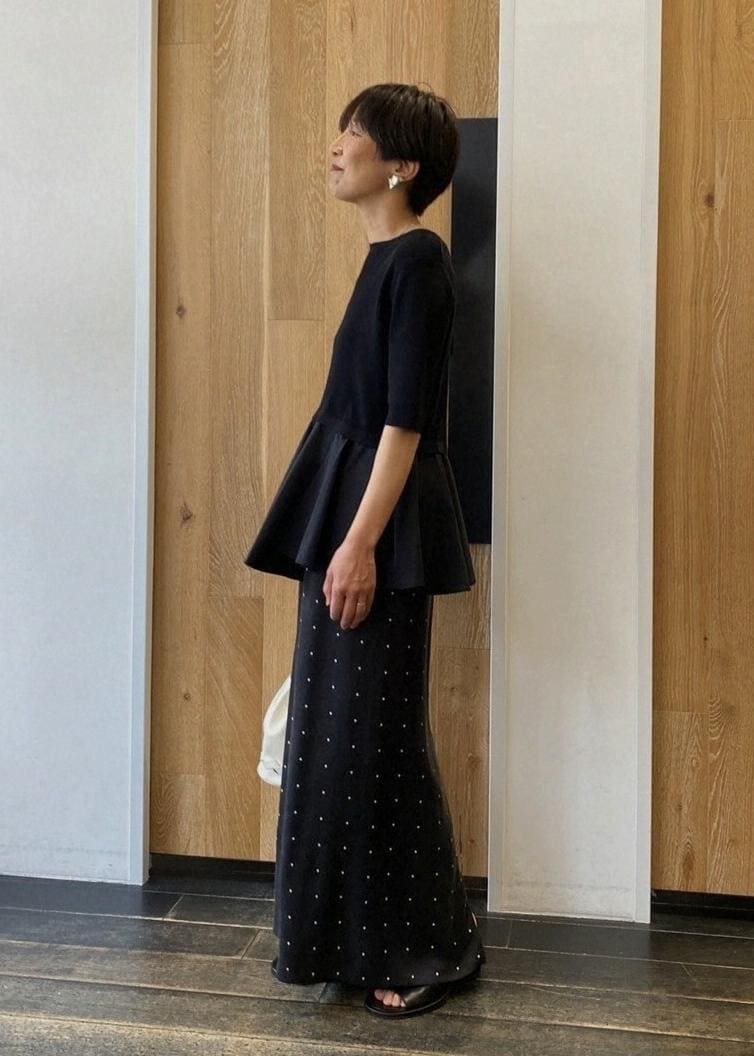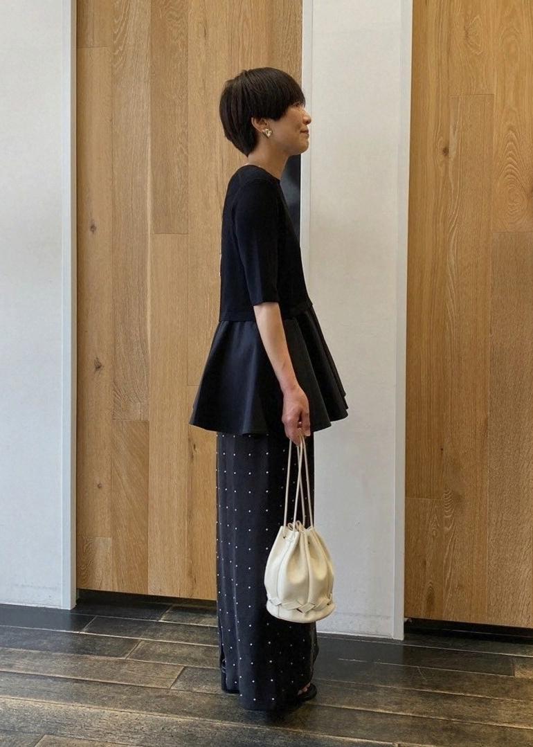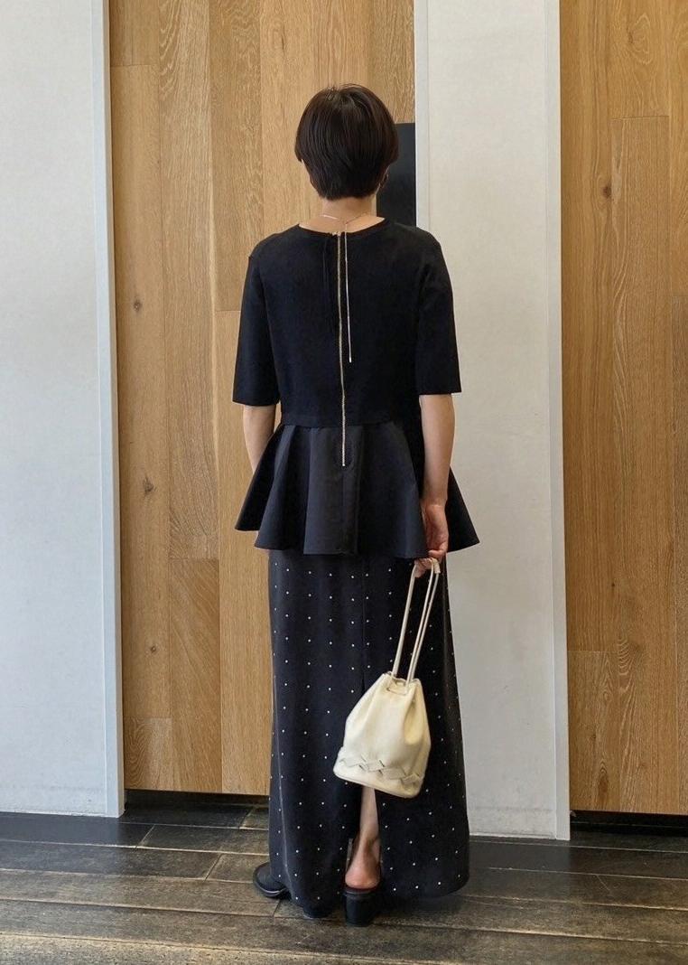 本日は36サイズが作られた定番で人気のペプラムコンビハーフスリーブニットを着てみました。