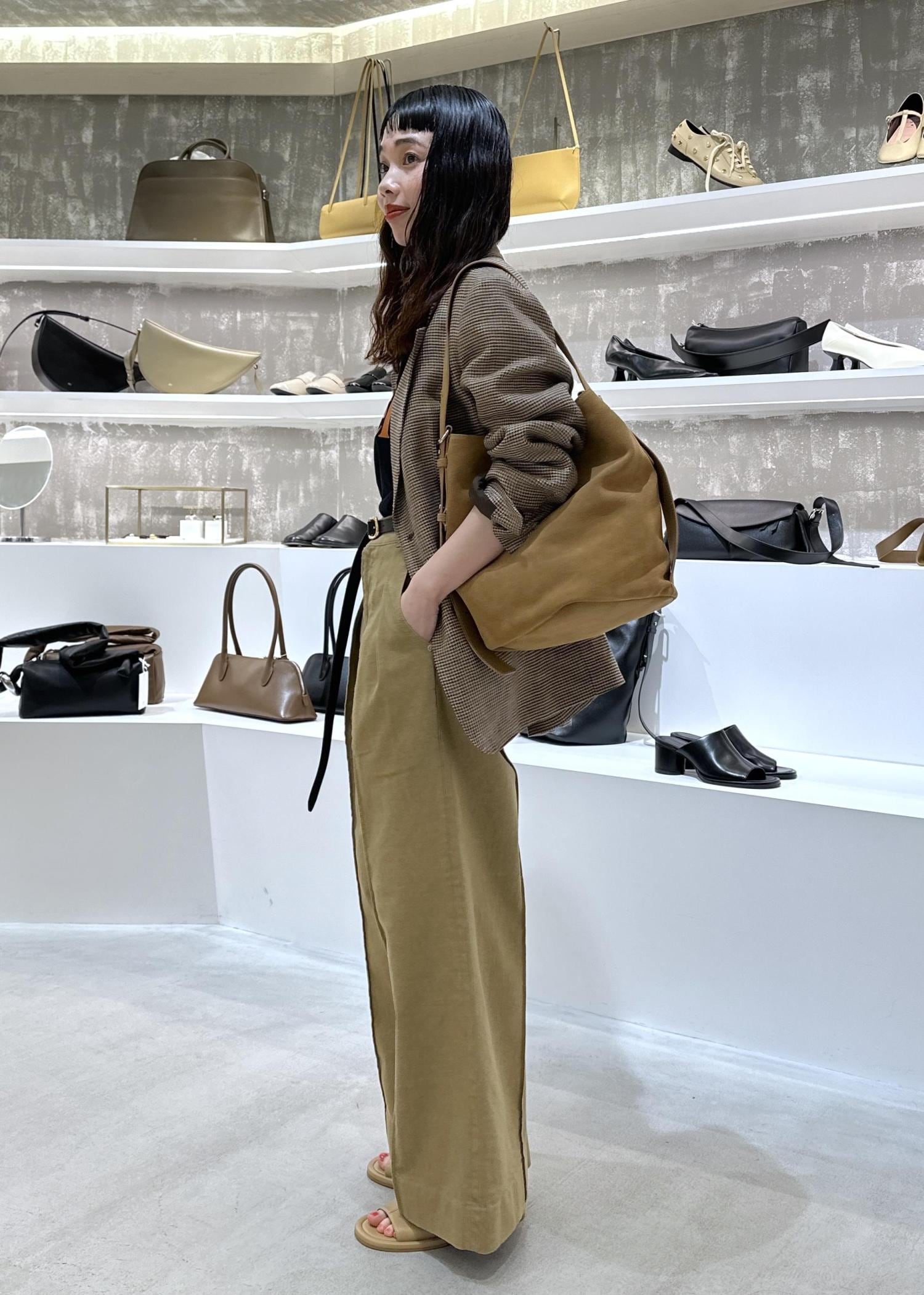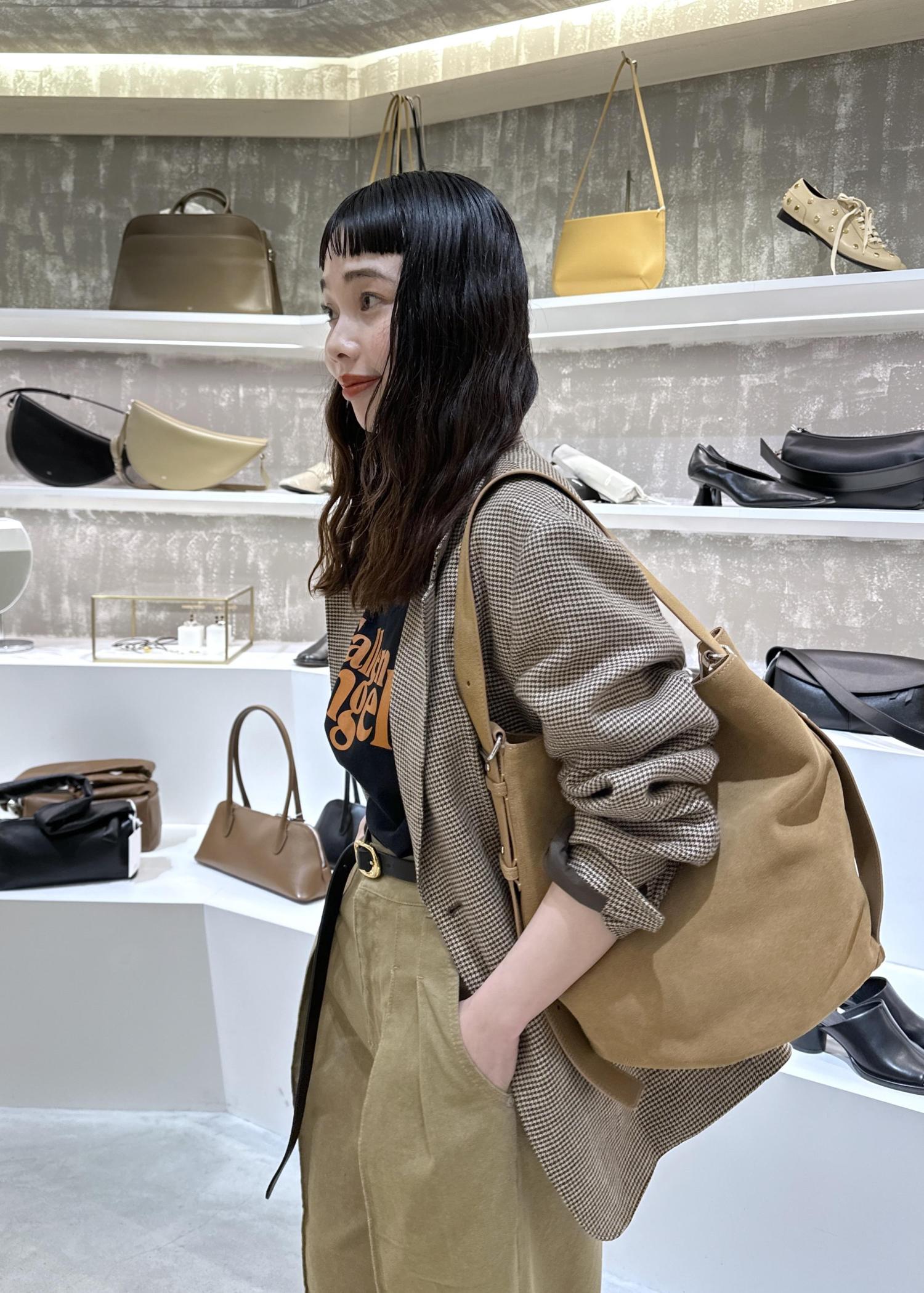 ADAM ET ROPÉ FEMMEスプリットレザーワンショルダー2WAYバッグベージュ / F¥23,100レビューA4サイズもギリギリ入る大きさです。
