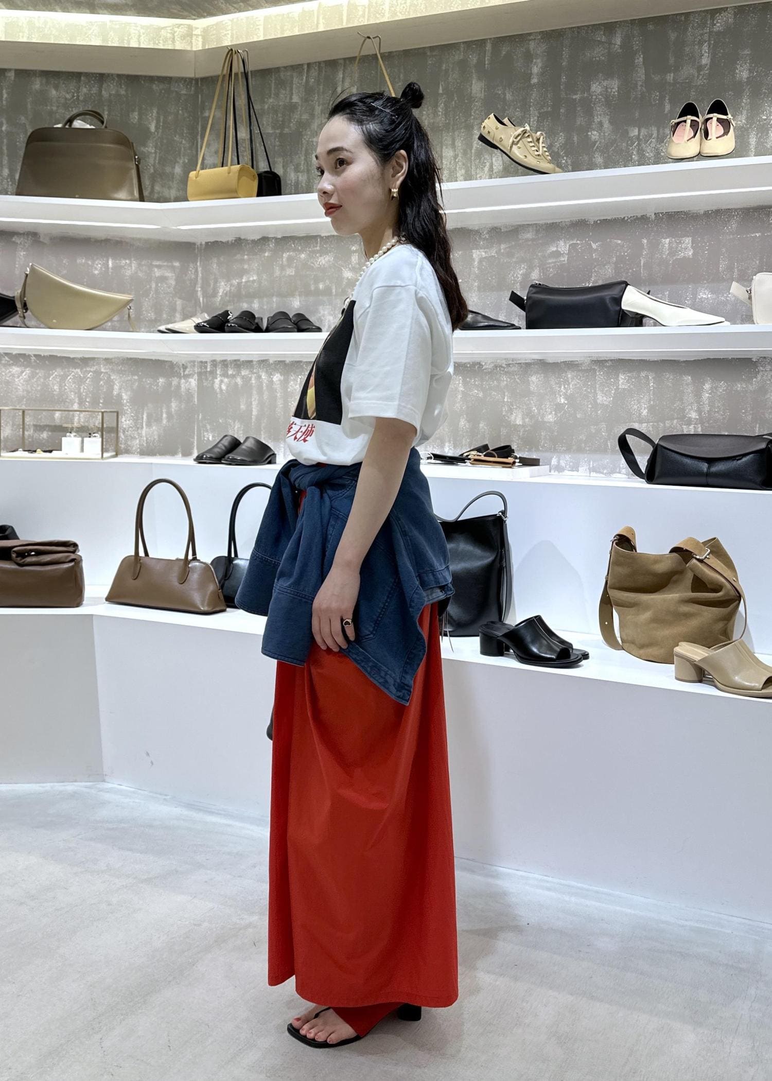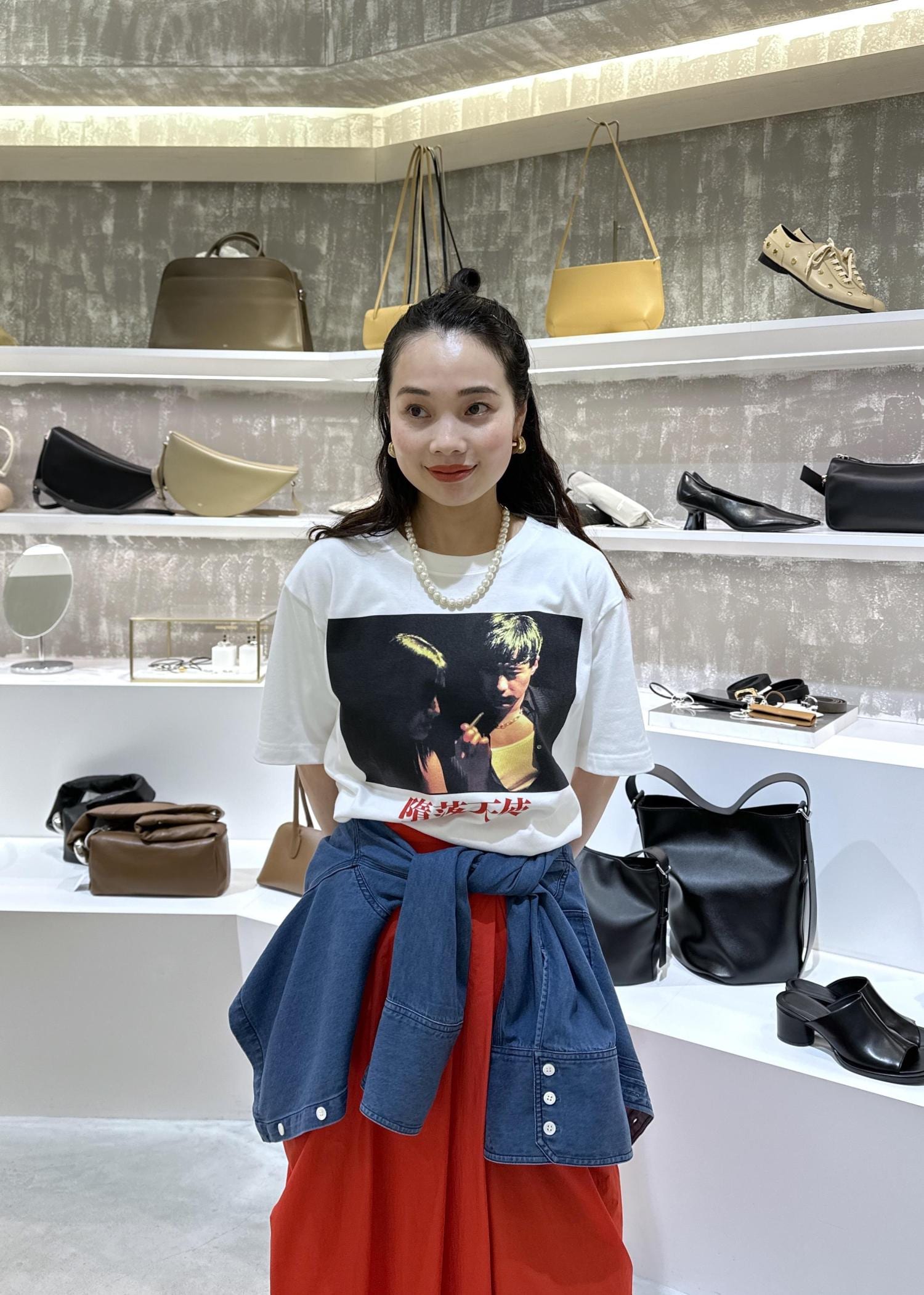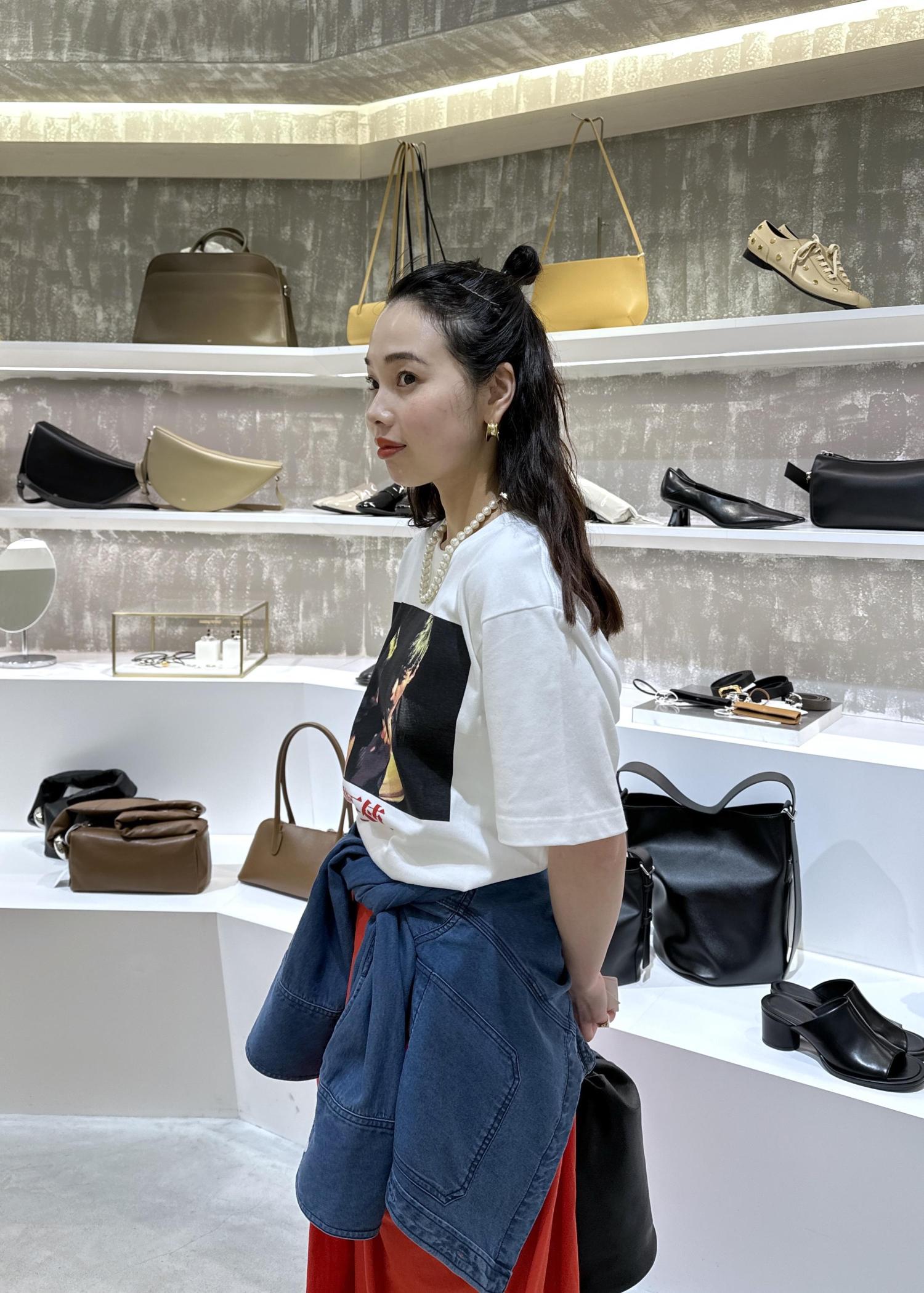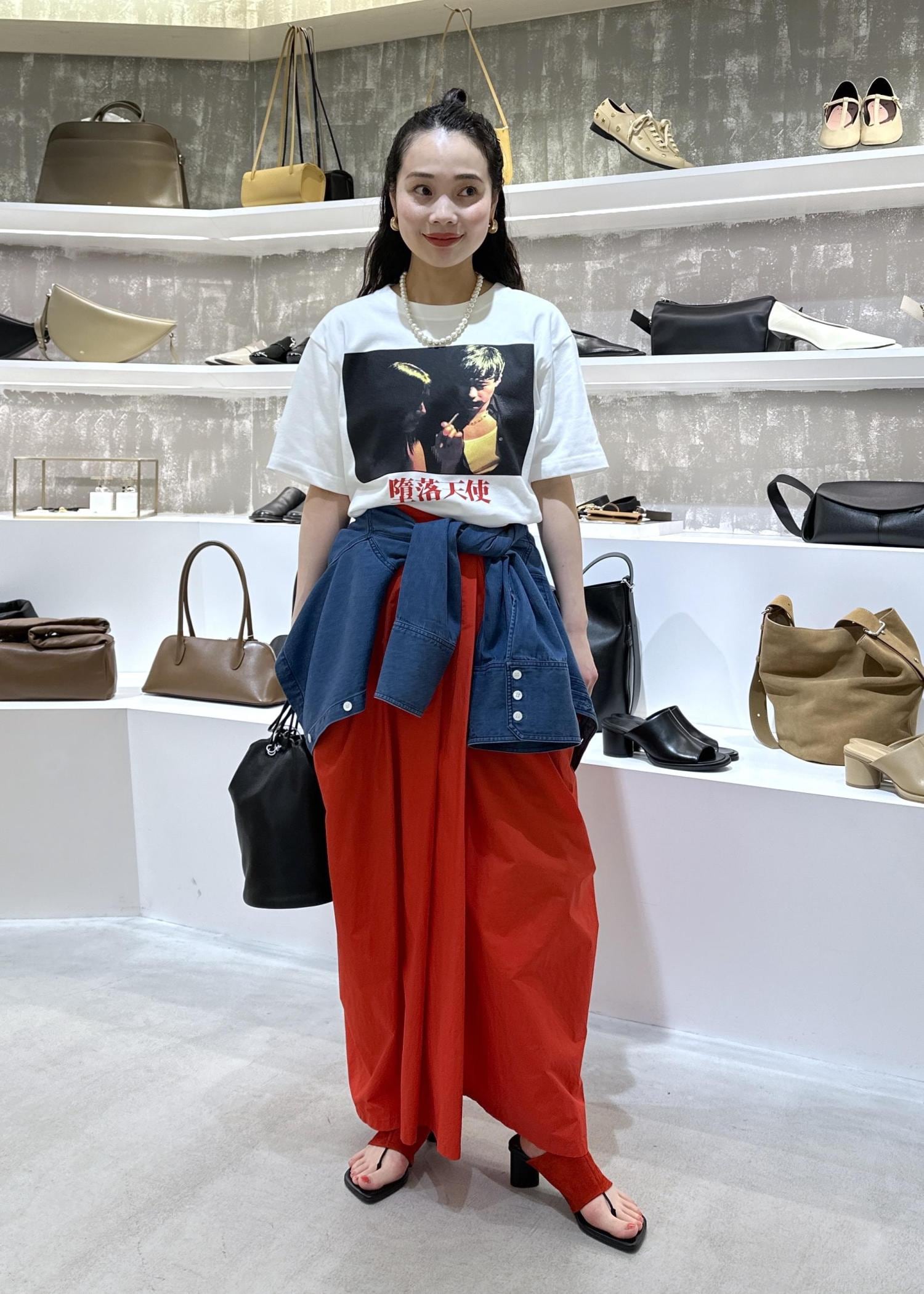 天使の涙tシャツのレッドカラーコーデ