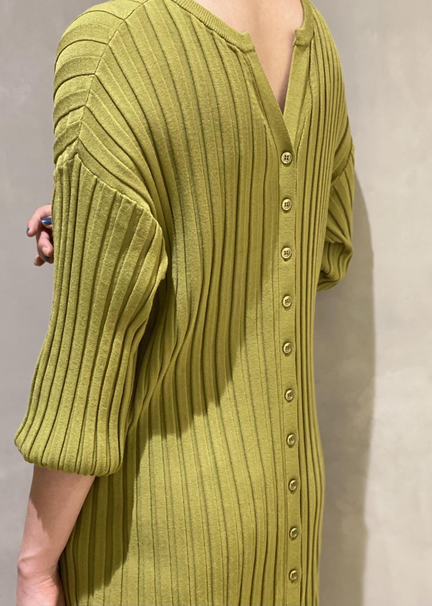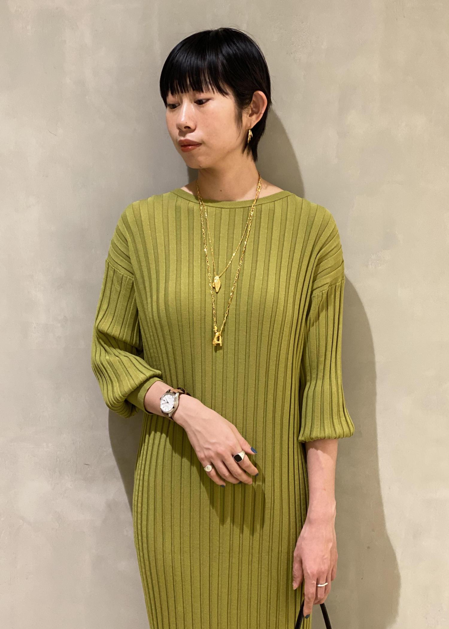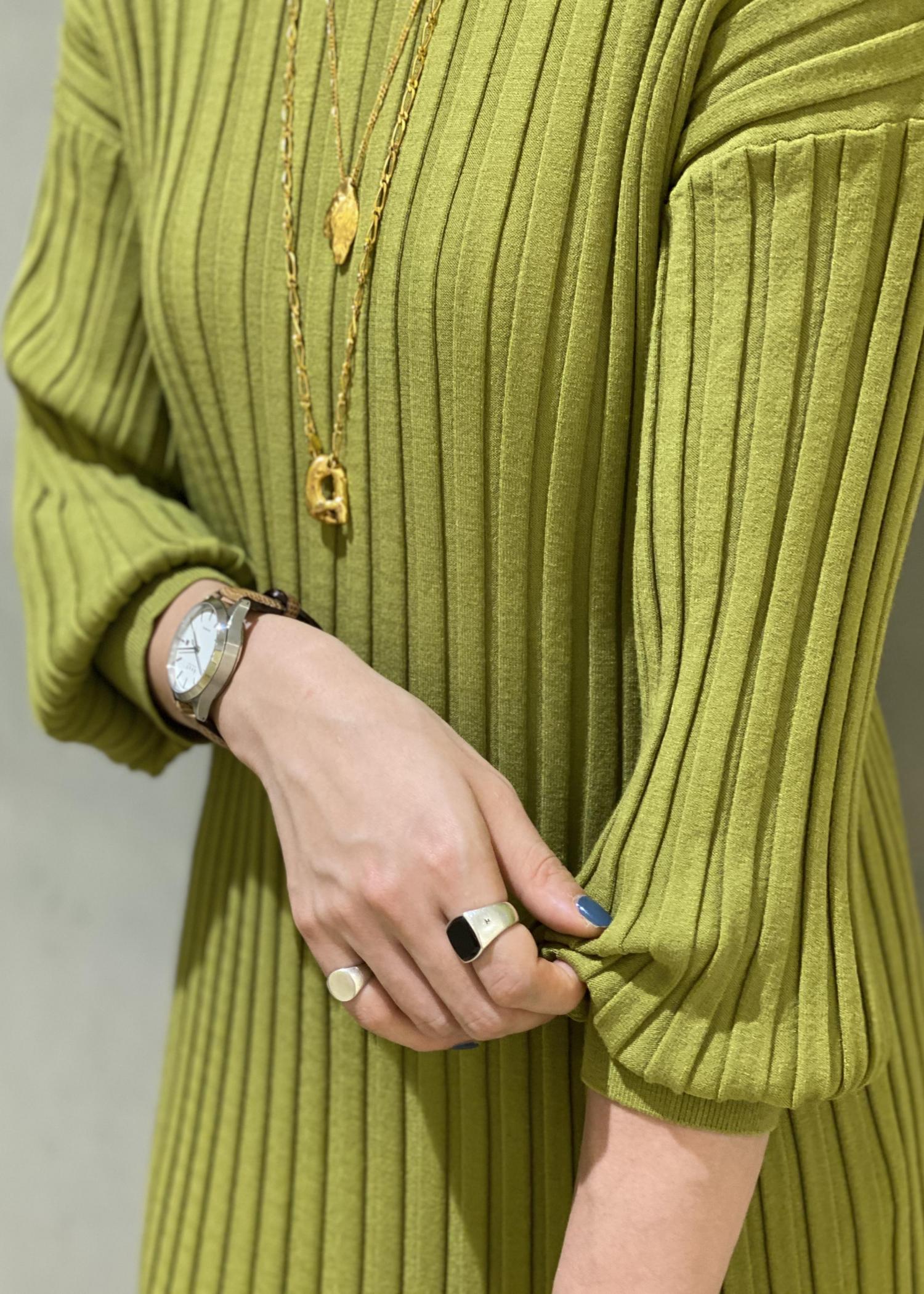 そして、ニットの素材感がとてもやわらかくお家時間にもリモートワークでも楽にお洒落に着て頂けそうです。