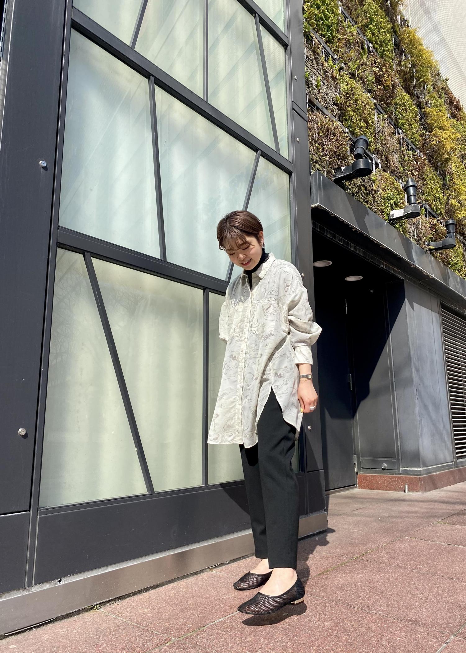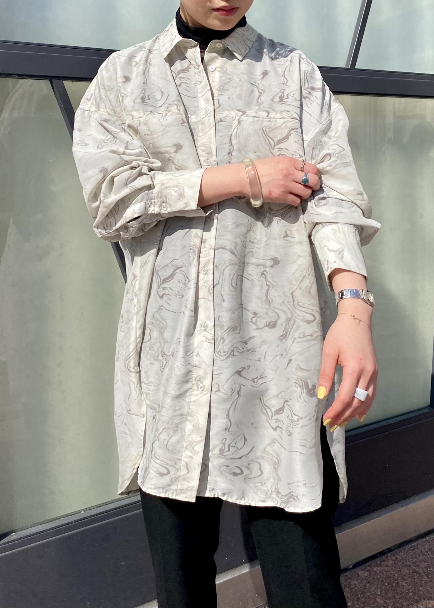 トレンドのビックシャツ♪ マーブル×シアーで春夏にぴったりです! マーブルを活かして モノトーンでまとめた 綺麗目カジュアルコーディネートです⭐︎