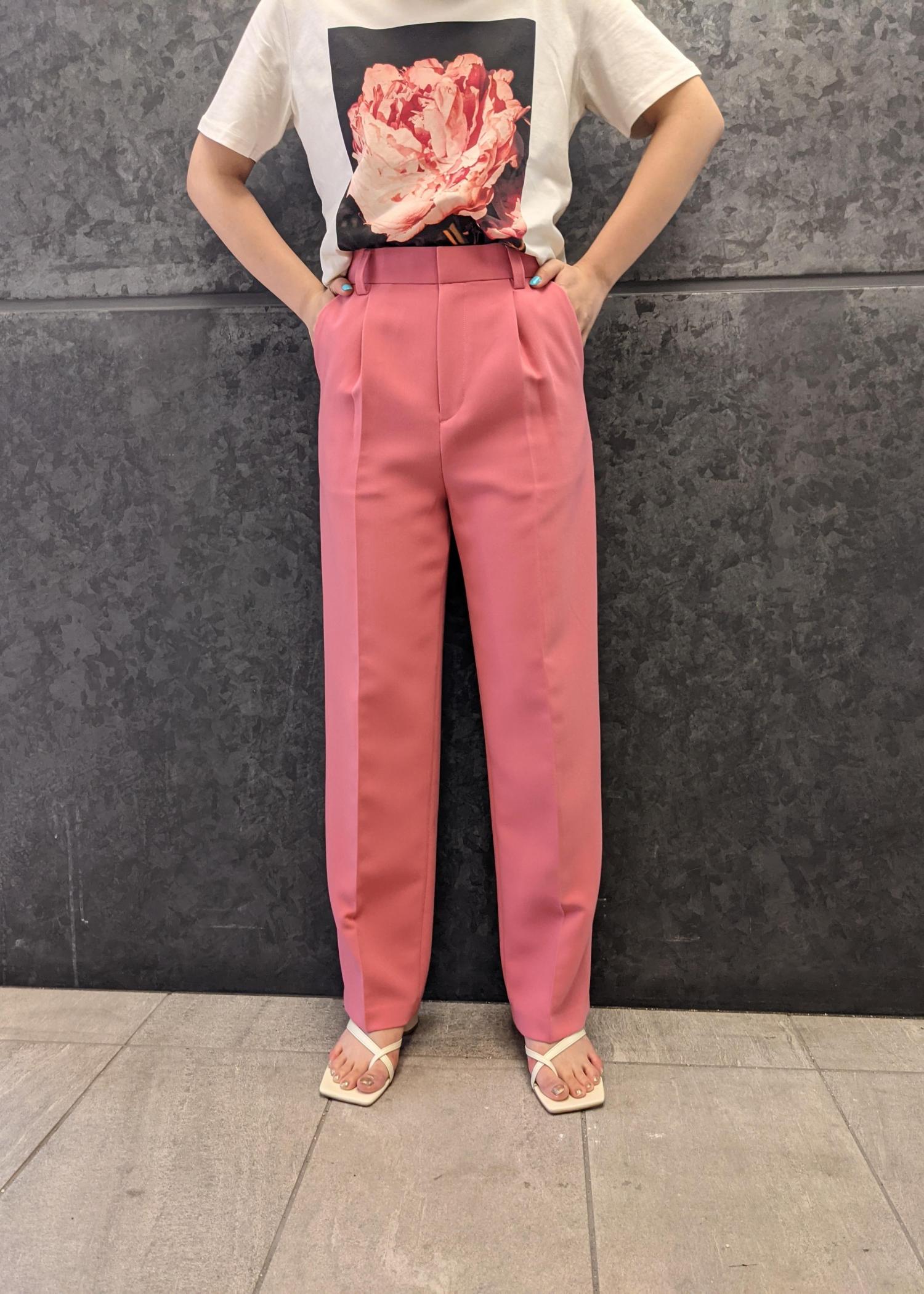 本日はピンクカラーのワントーンでコーディネートを組んでみました。ジャケットを羽織るとピンクカラーでもかっこよく着こなしを楽しんでいただけます。