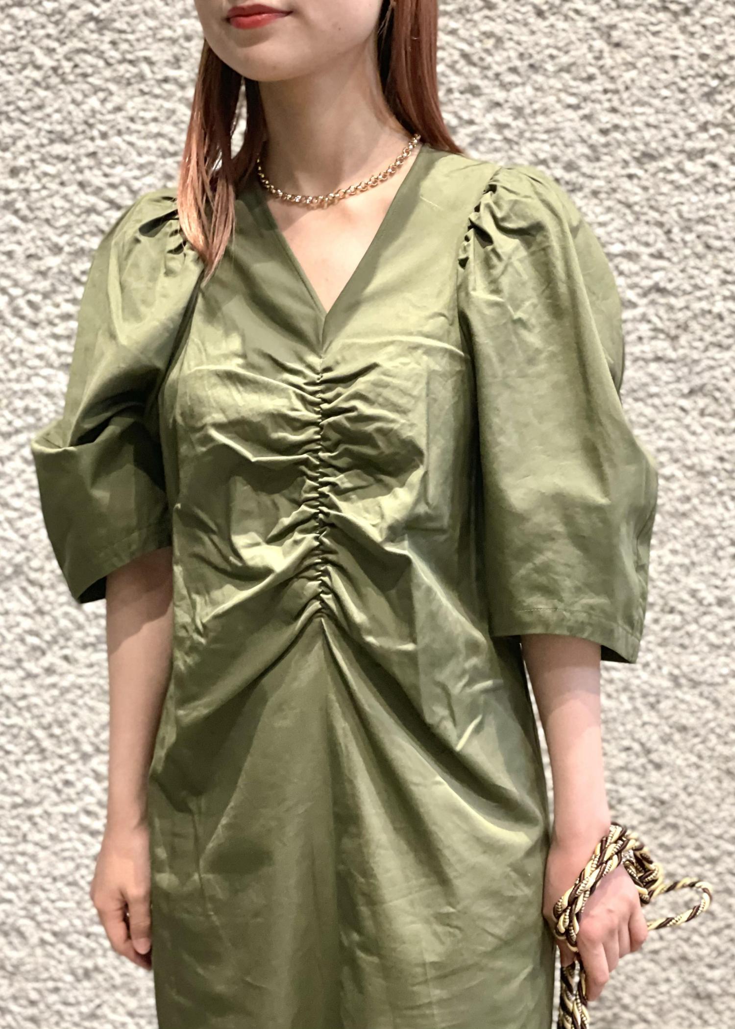 セットインスリーブで華奢に見え、シャープなVネックでお顔周りもスッキリみえます。