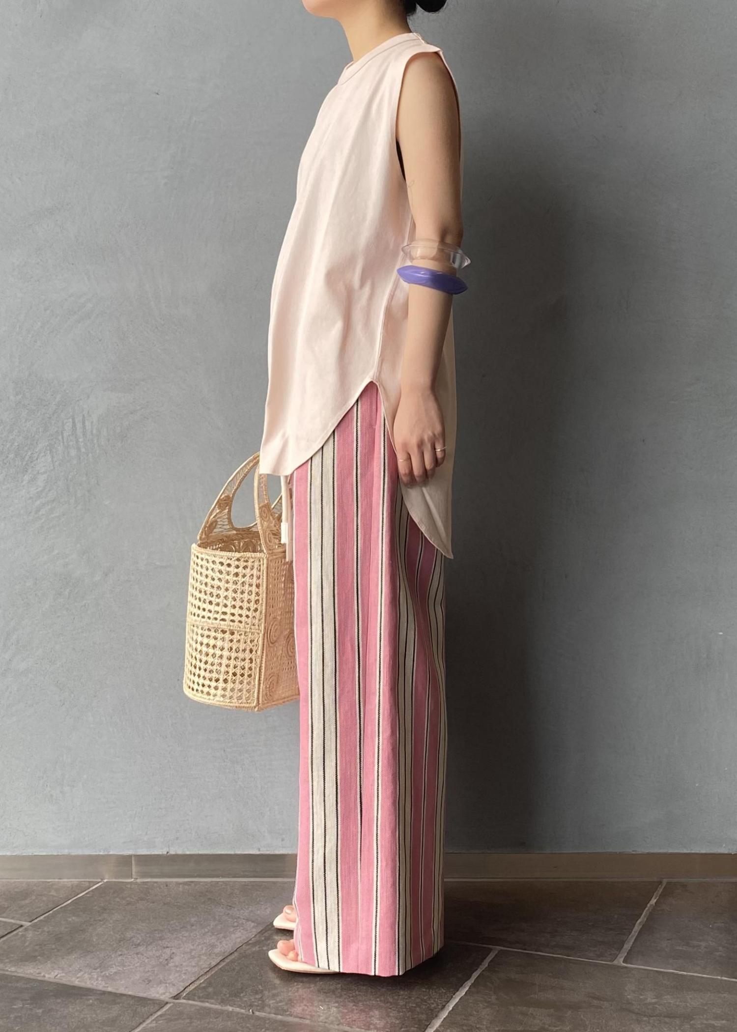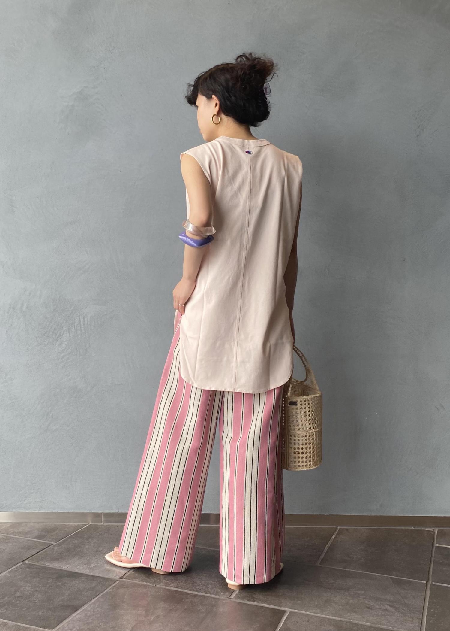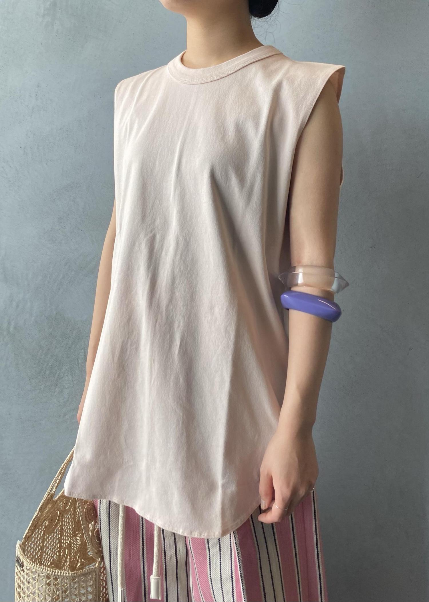 ノースリーブといっても肩が広めにとってあるので、腕を露出しすぎることなく着れるのが嬉しいポイントです。