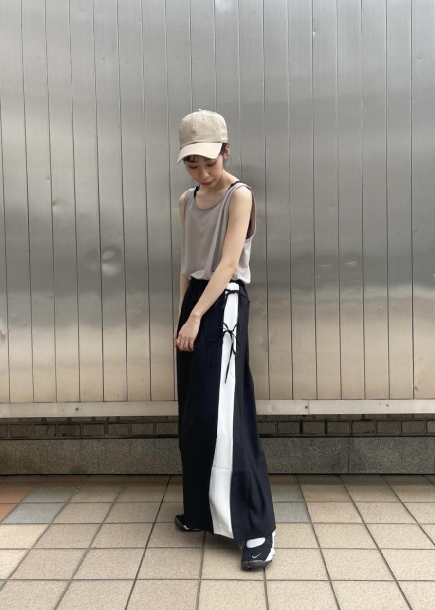 トップスはagnes b.×NERGYのストレッチタンクトップです。通気性の良い素材で汗をかくトレーニングにも