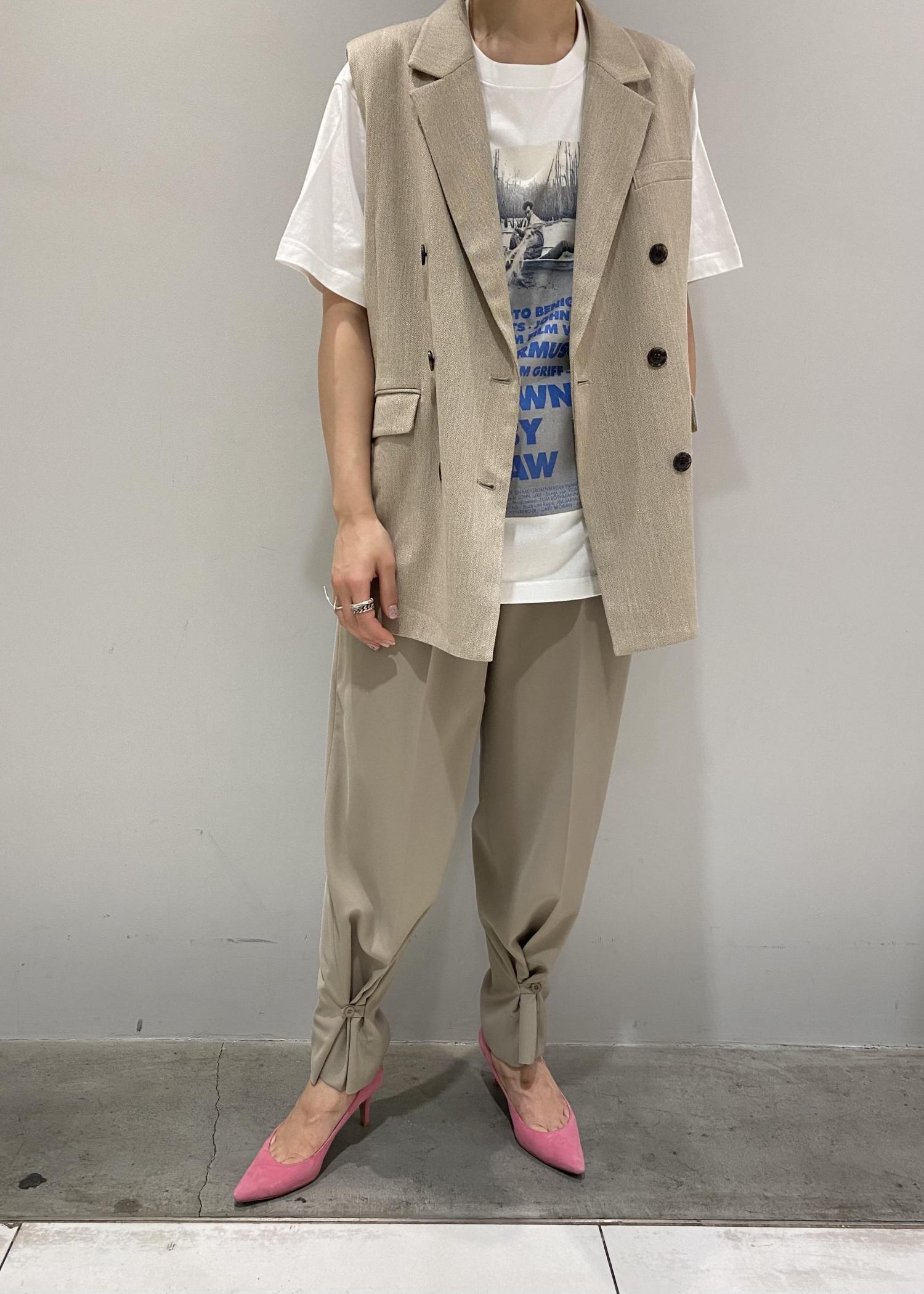 肩には薄手の肩パットが入っている為、肩先にポイントをつくる事で二の腕をスッキリと見せてくれる優れもの◎