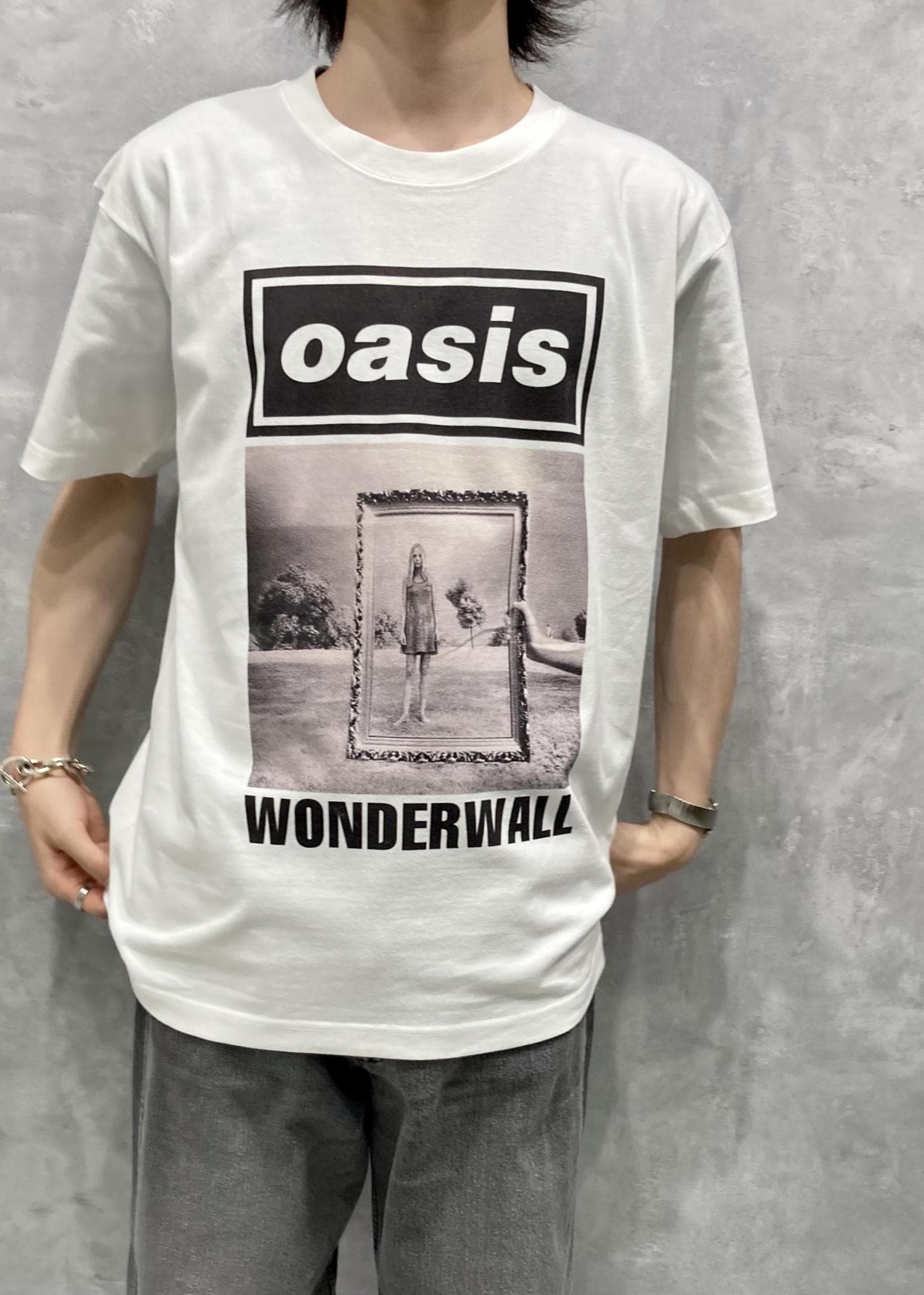 OASISのシングルジャケットのデザインをプリントしたTシャツが3型展開。