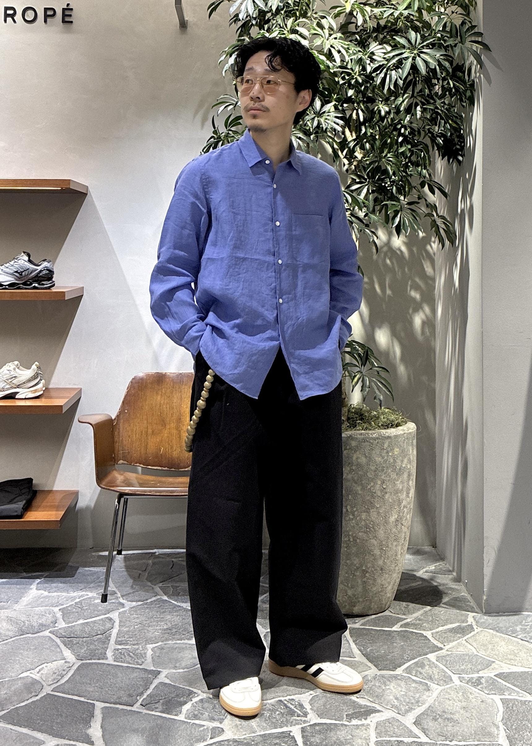 軽やかなリネン素材が織りなす綺麗な落ち感が魅力の一着。