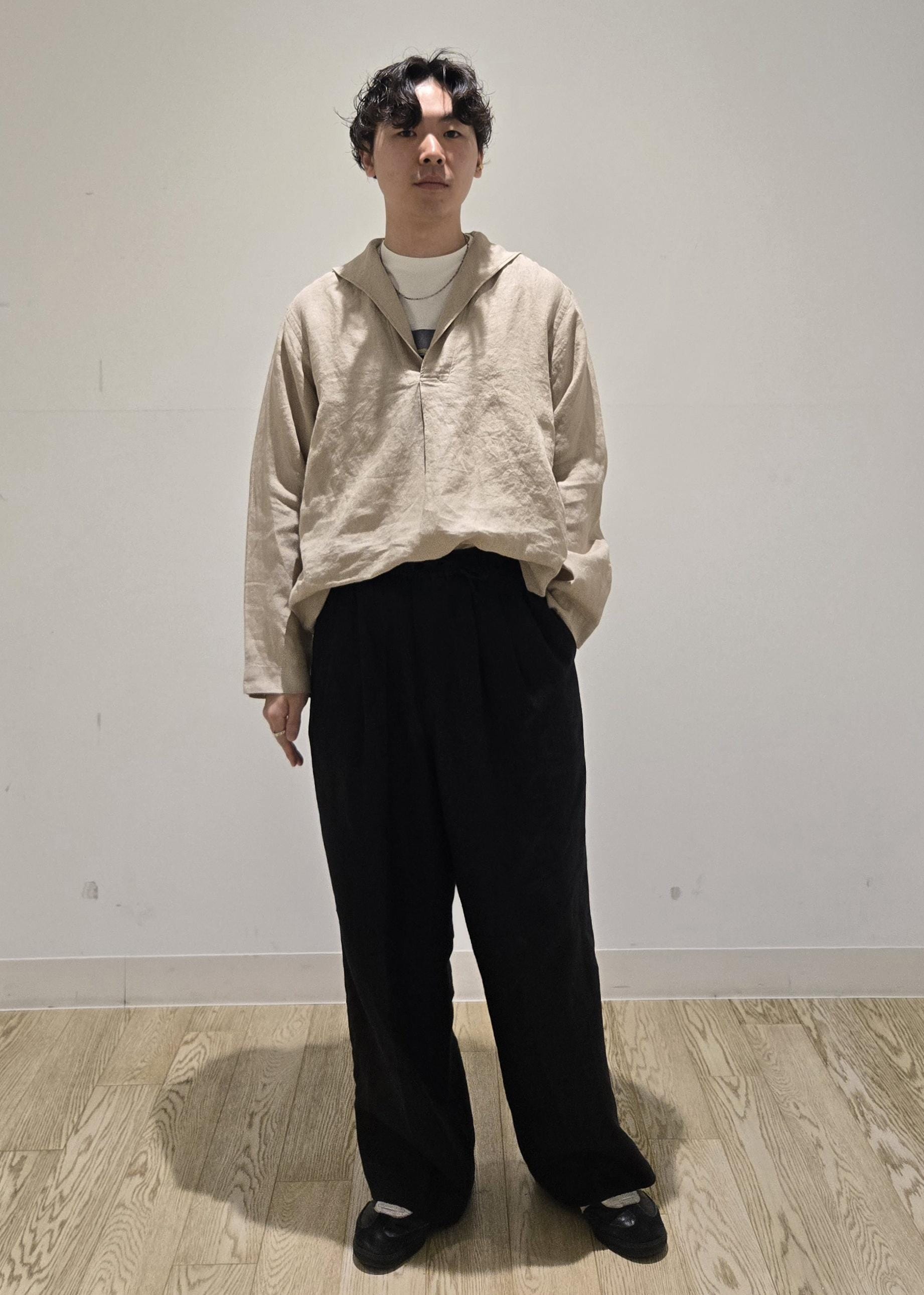 軽やかなリネン素材が織りなす綺麗な落ち感が魅力の一着。