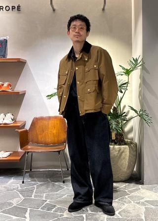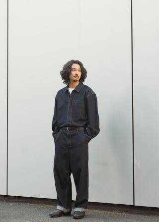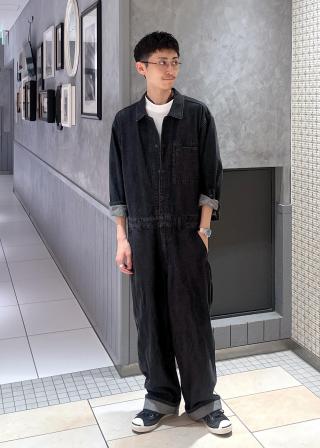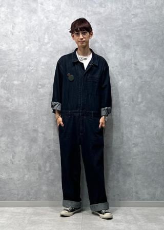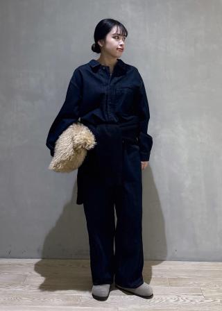 ・ボトムはワイドストレートシルエット、ヒップにはパッチポケット付き