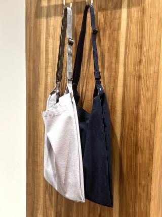 シワになりにくくて軽量、ソフトに見えながらも耐久性にも優れており、お手入れのしやすい素材です。薄手で折り畳みもできるため、サブバッグとしてバッグや車に忍ばせておくのにも便利。また、この素材ならではの手触りと発色の良さが魅力です。ショルダーの長さを調節してアレンジが効くため、肩から掛けるのはもちろん、手に絡めて持つのも◎