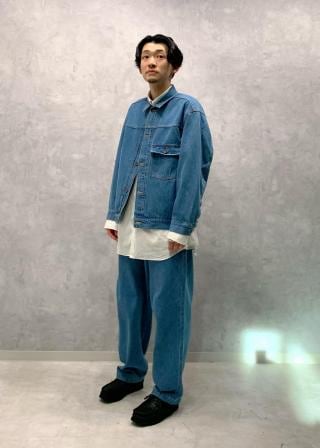 デニムジャケットなのに柔らかく着用にストレスが無い。これが本当に嬉しいです。見た目は好きだけどあの特有の着にくさはな…と日々思われている方にぜひ着て欲しいです。Mサイズ着用でほんのりオーバーサイズになりますので、夏場に買ったビッグシルエットなTシャツなどの上着としても抜群です。寒い季節が訪れた時はアウターのインナーに持ってきてお洒落なのも柔らかいデニムジャケットだからこそです。ぜひ沢山のシーズンをともにしてみてください。