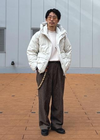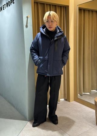 ミニマルなデザインに落とし込まれたダウンジャケット。700FPと非常に暖かくかつ軽やかに着用できるアイテムです。程よいボリュームと洗練されたデザインがカッコよく様々なパンツとマッチします。Mサイズ着用でジャストなサイズ感です。