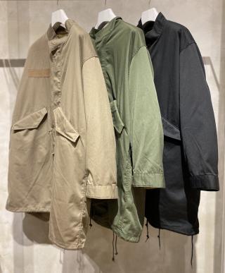 M65フィッシュテールパーカー(通称モッズコート)をモードアイテムとも相性良く、トレンドのオーバーサイズにまとめた1着です。M65を基調にしつつも、オーセンティックなミリタリーの野暮ったさが出過ぎないように、各部パーツの変更やバランス感を現代的に見直しています。シルエットは衿の前下がりを少し強調しており、衿元の抜け感とインナーとのコーデが楽しめる仕様にしています。裾のフィッシュテールは角度を緩く設定しており、モッズコートのデザインコードを活かしつつも合わせるパンツを選ばないバランスに仕上げています。ライナーは配色にしていますので、フロントを開けて着用した時のちょっとしたアクセントになっており、ライナーだけで着用した時も気分を変えてご使用頂けます。ミリタリーネームをモディファイしながら、今期のテーマを組み込んだ、『我々の提案がお客様一人一人の自己表現や生活の彩りの手助けとなって、世の中を明るくしていきたい』というメッセージを入れています。