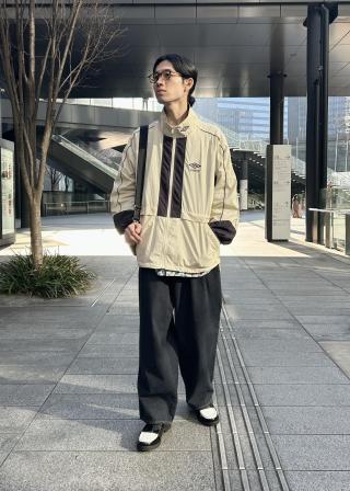 ヴィンテージのトラックジャケットのような雰囲気と、旧ロゴを使用したロゴ刺繍がポイントです。