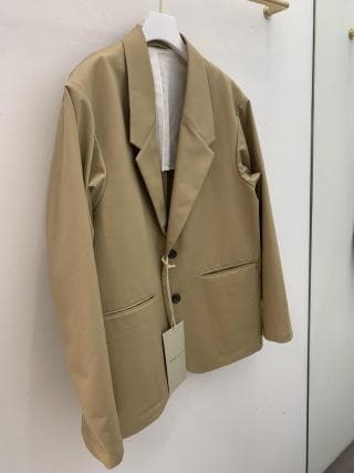 テーラードジャケットだとシルエットは西洋的にデザインするのが一般的ですが、このジャケットは和服の平面的で直線的に設計しておりボックスシルエットが特徴的です。